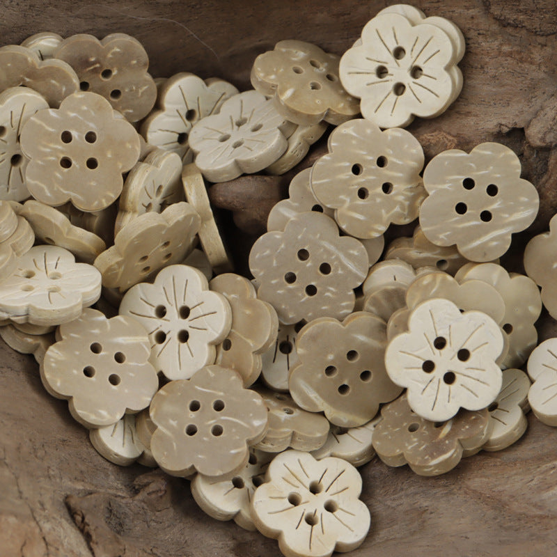 Cute beige small flowers natural coconut shell children's clothing decorative buttons baby sweater cardigan handmade buttons