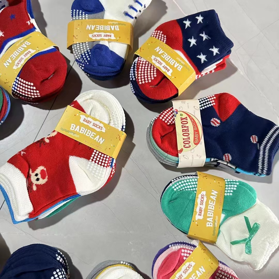 Daily single dispensing baby socks one card 3 pairs toddler non-slip toddler socks baby combed cotton socks newborn socks