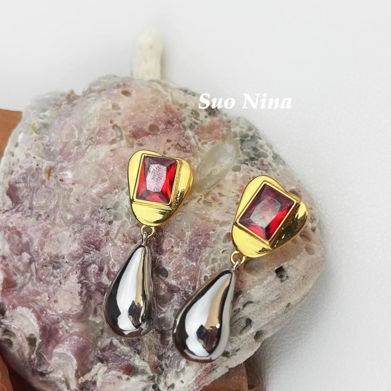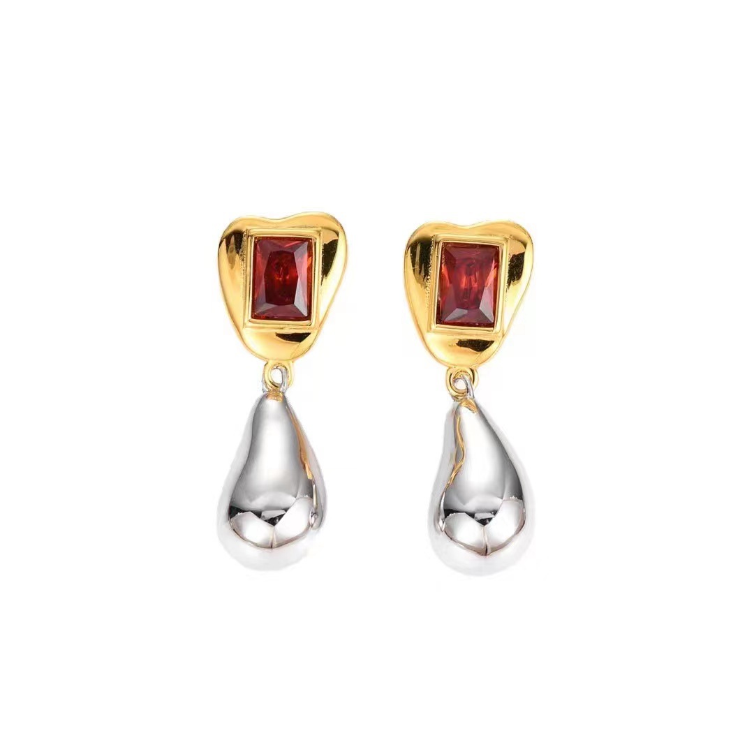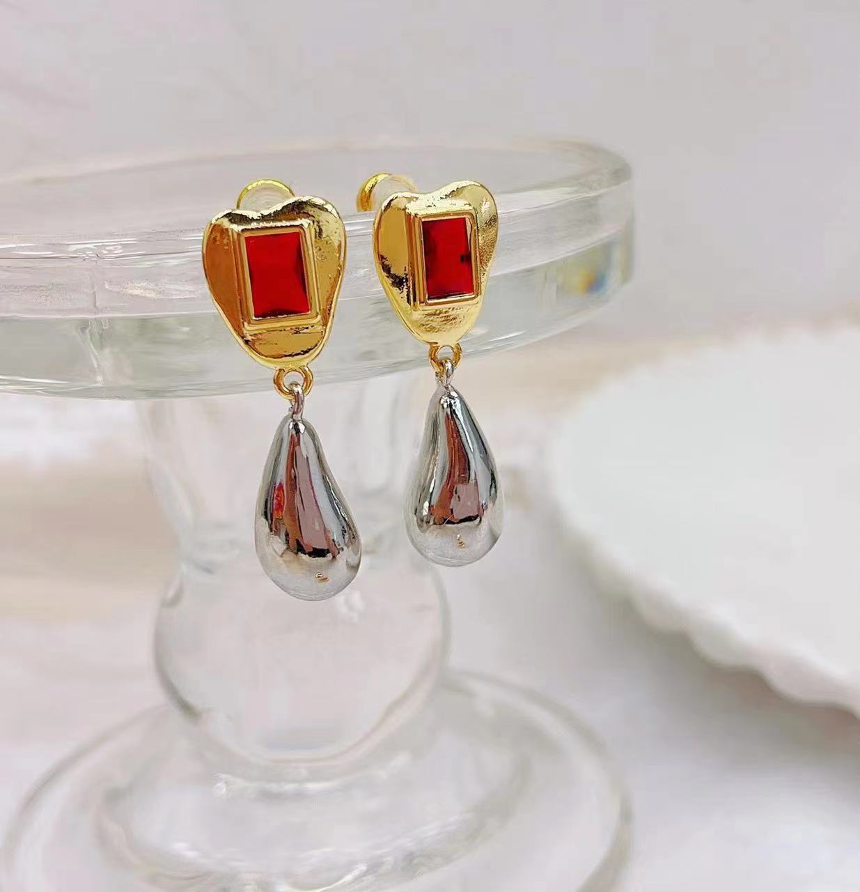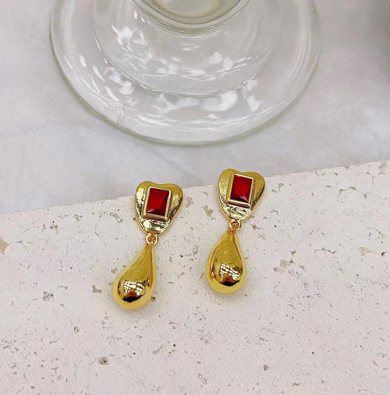 European and American Retro Red Baby Inlaid Water Drop Tears Drop Earrings Niche Design Simple Versatile Personality French Women