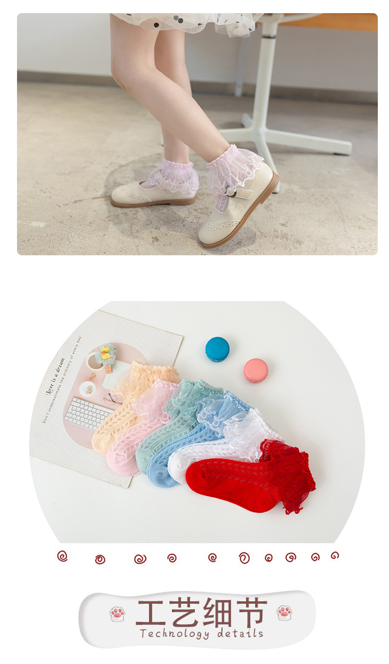 Factory custom children's lace socks spring and autumn thin section short tube lace dance socks summer girls baby socks