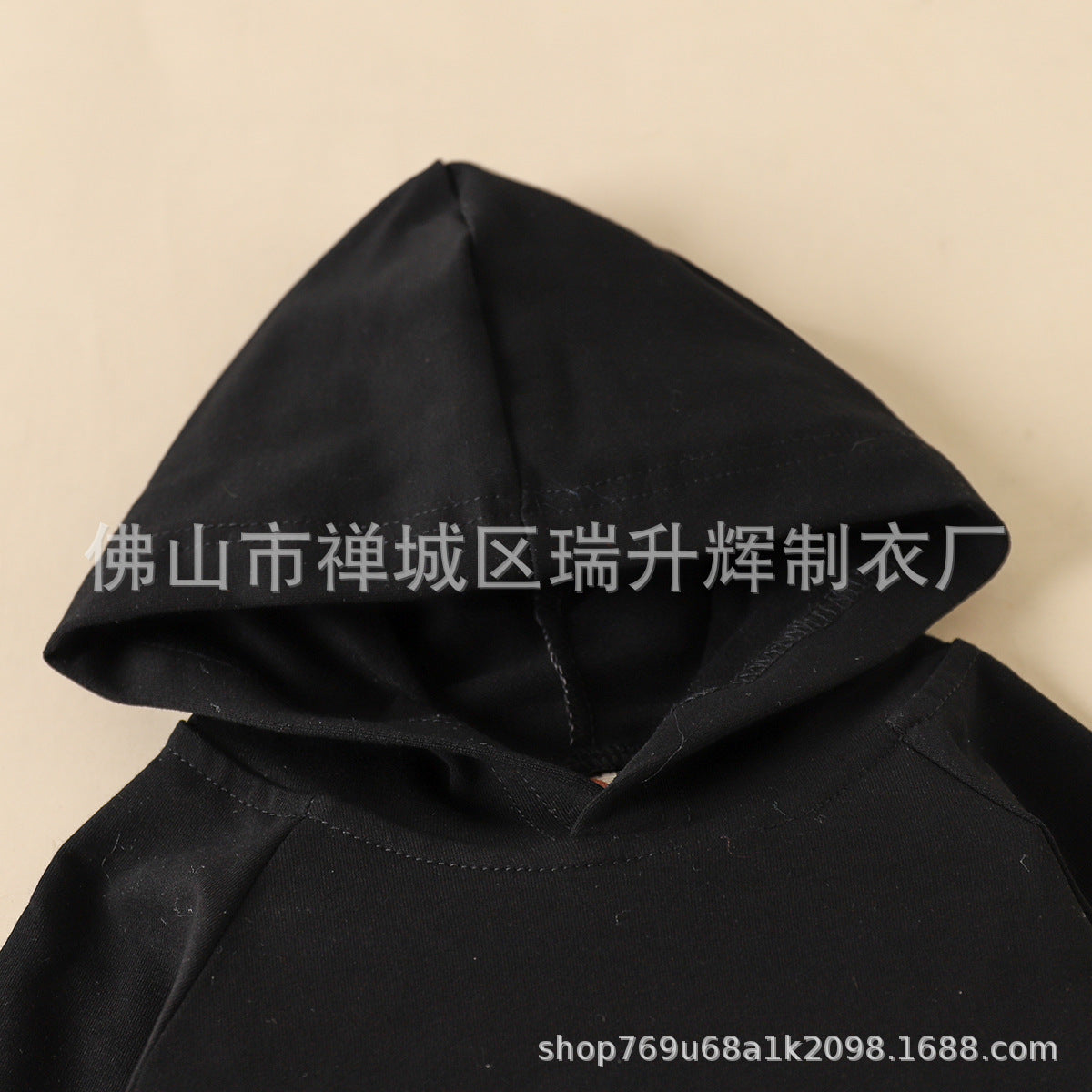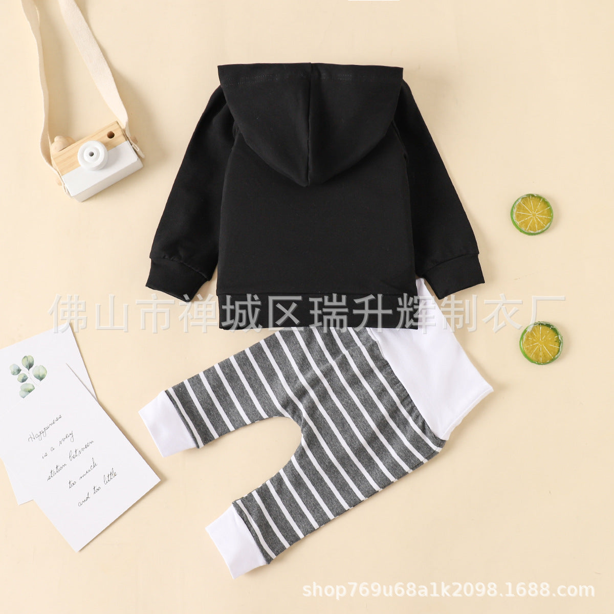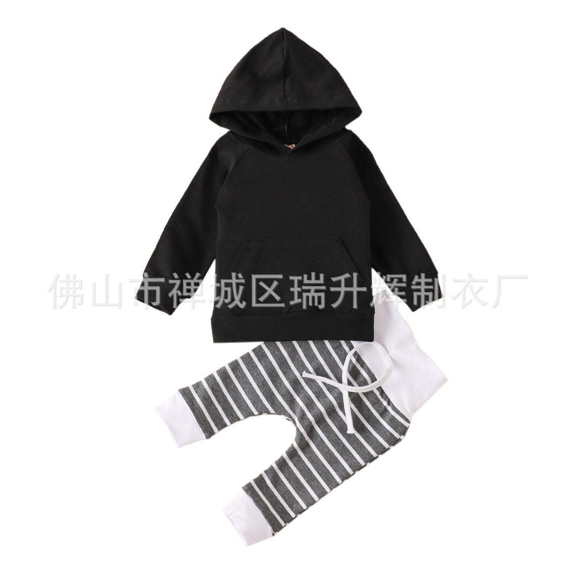 Foreign trade best-selling male baby suit autumn and winter fashionable European and American pure cotton black hooded sweater striped trousers two-piece set
