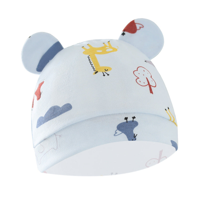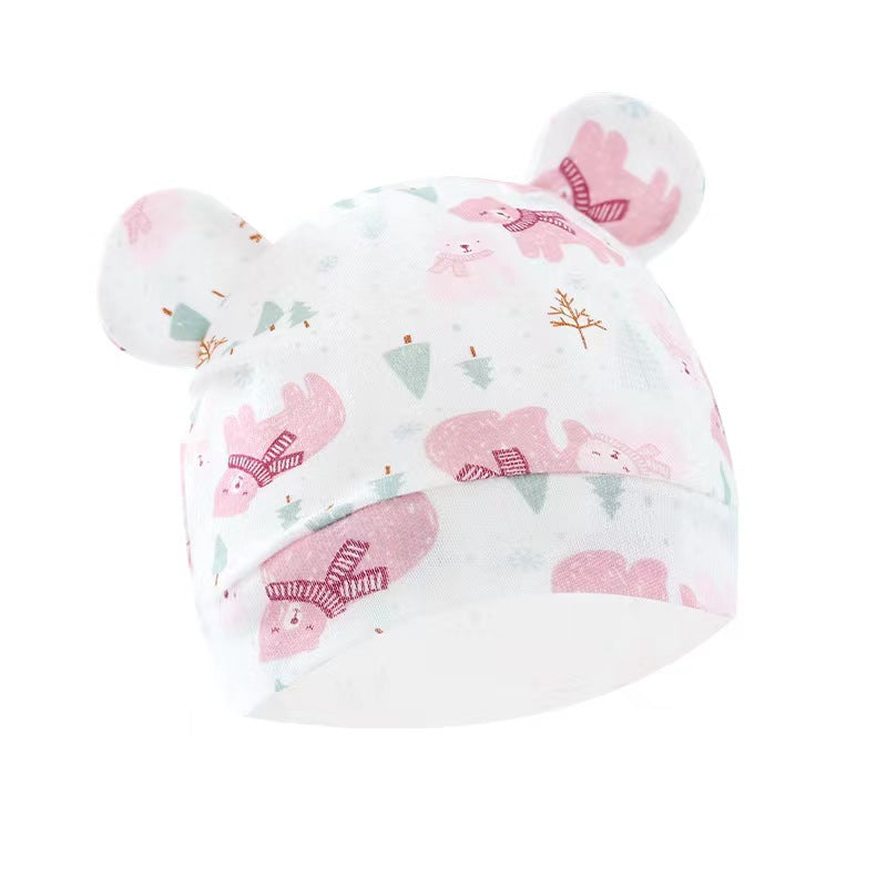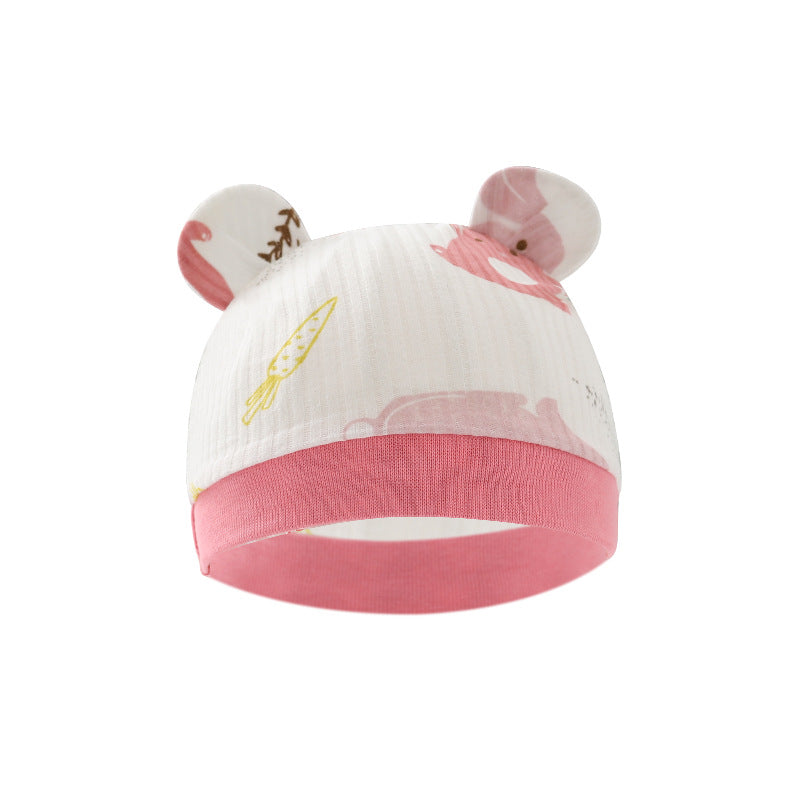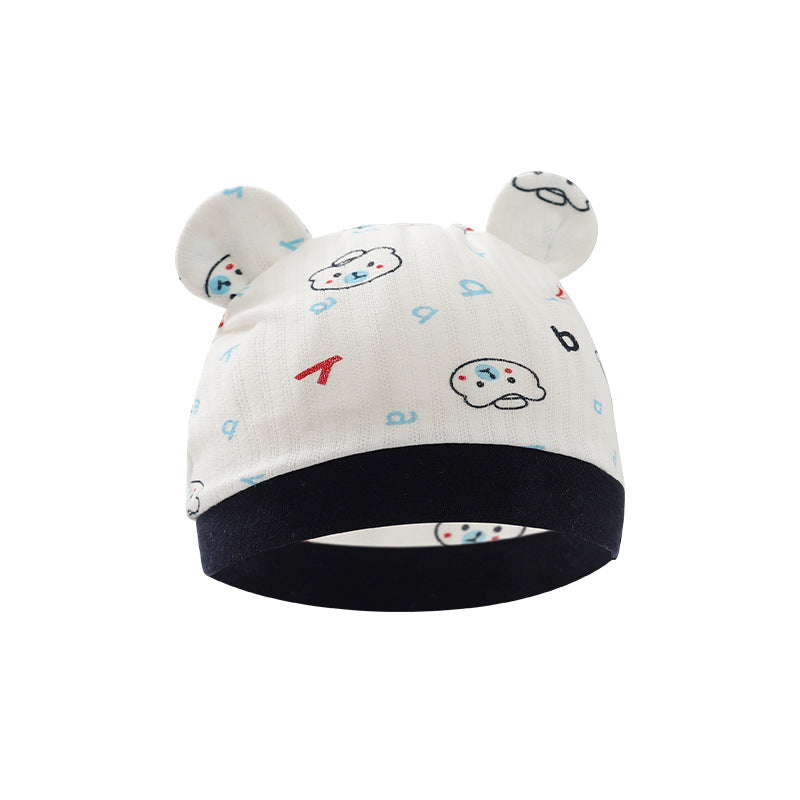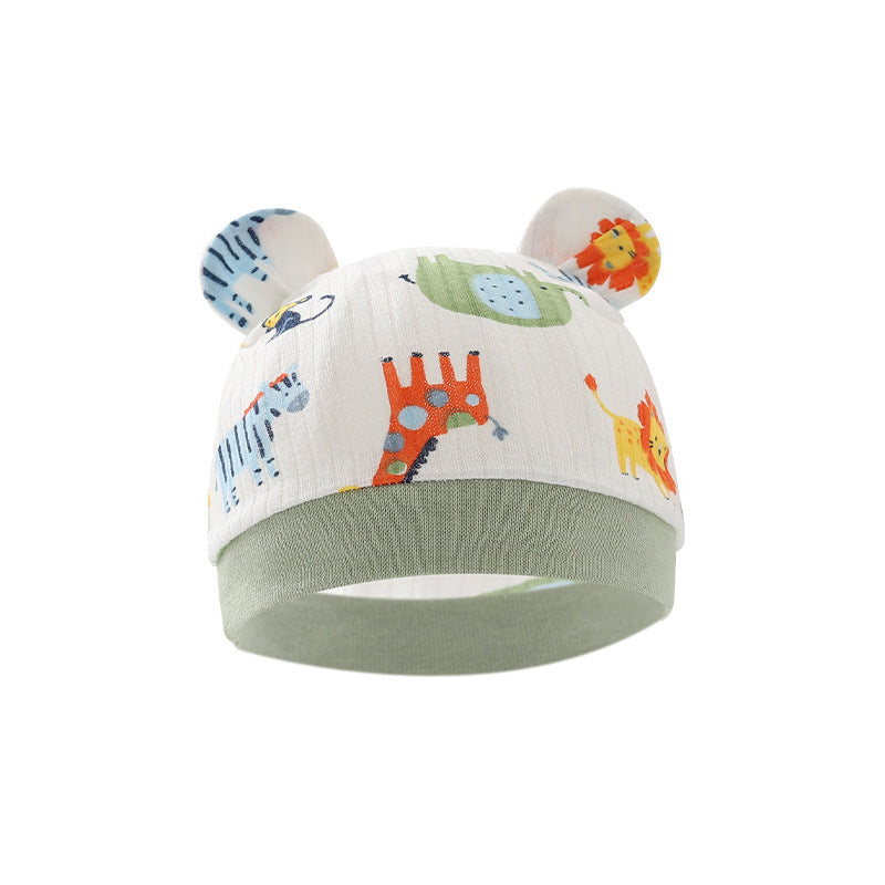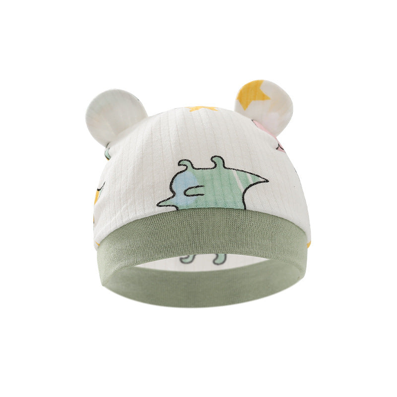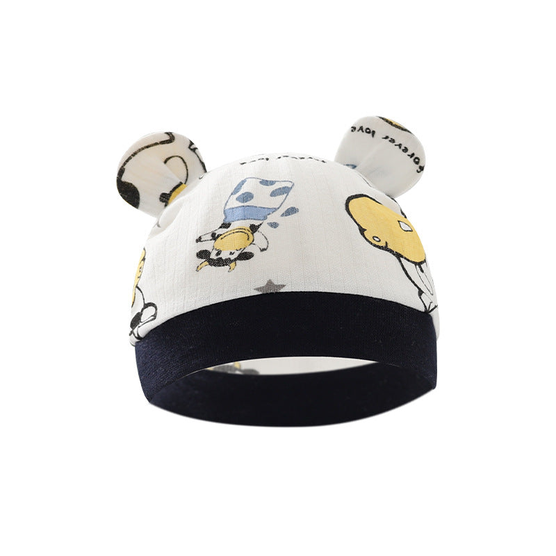 Foreign trade European and American newborn baby hat cartoon printing double ear baby hat 0-3 months baby hat 8320