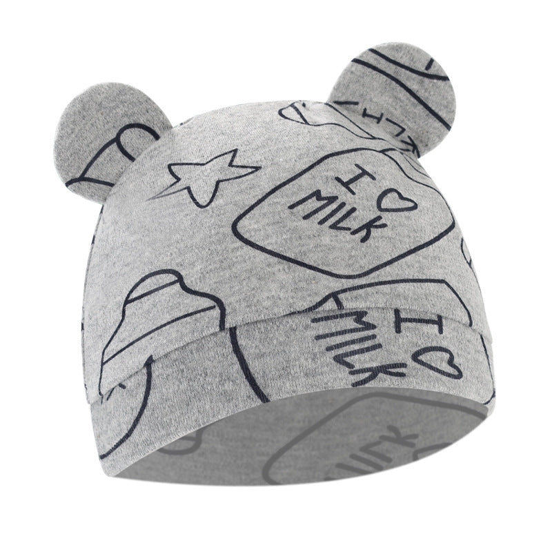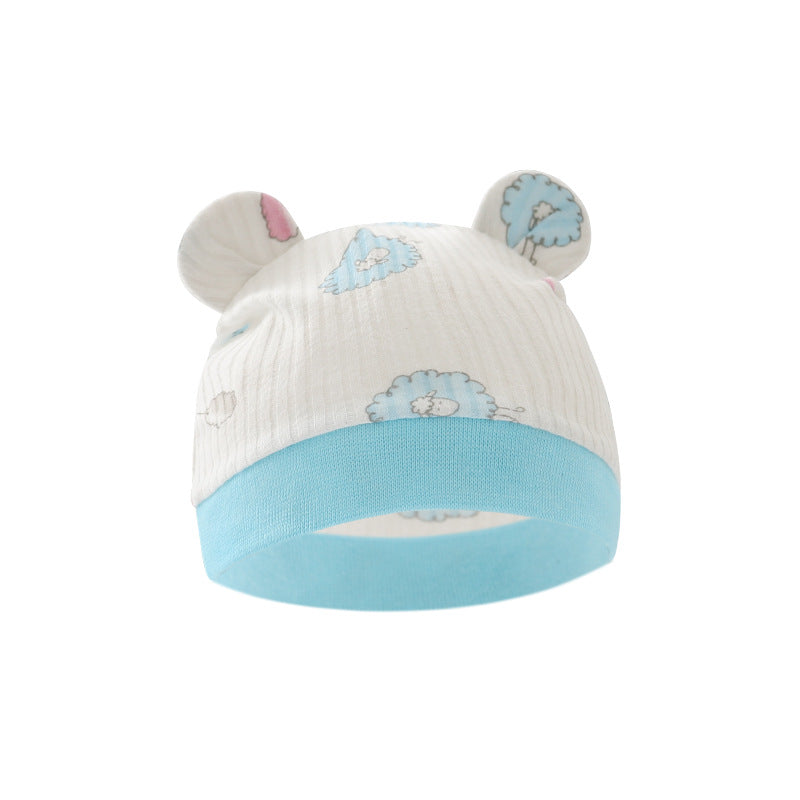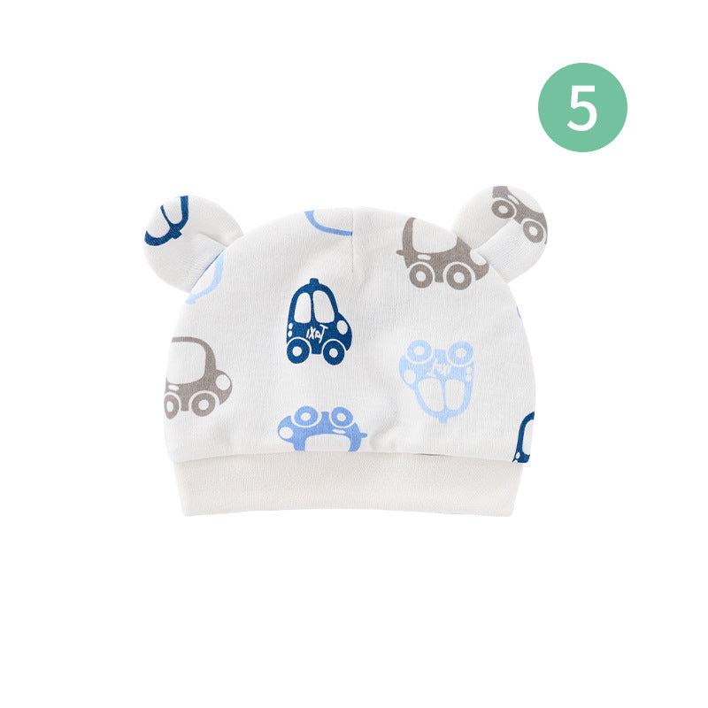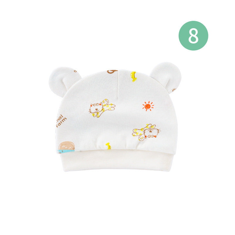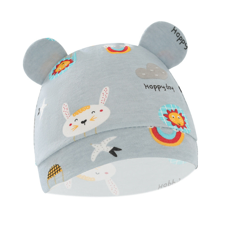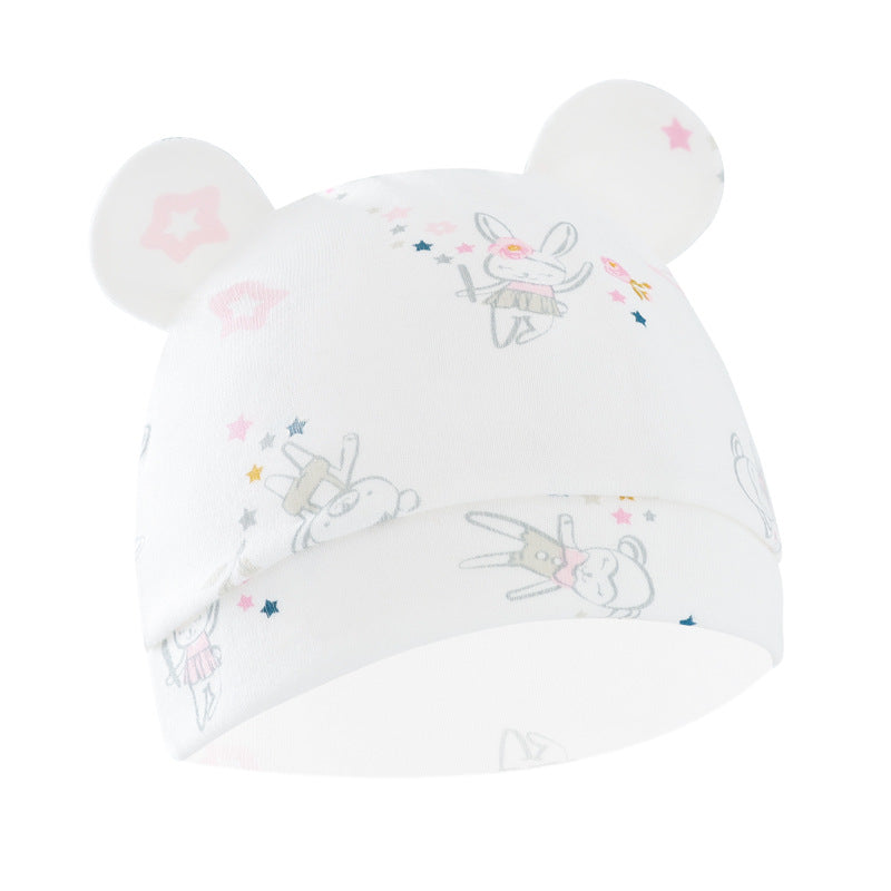 Foreign trade European and American newborn baby hat cartoon printing double ear baby hat 0-3 months baby hat 8320