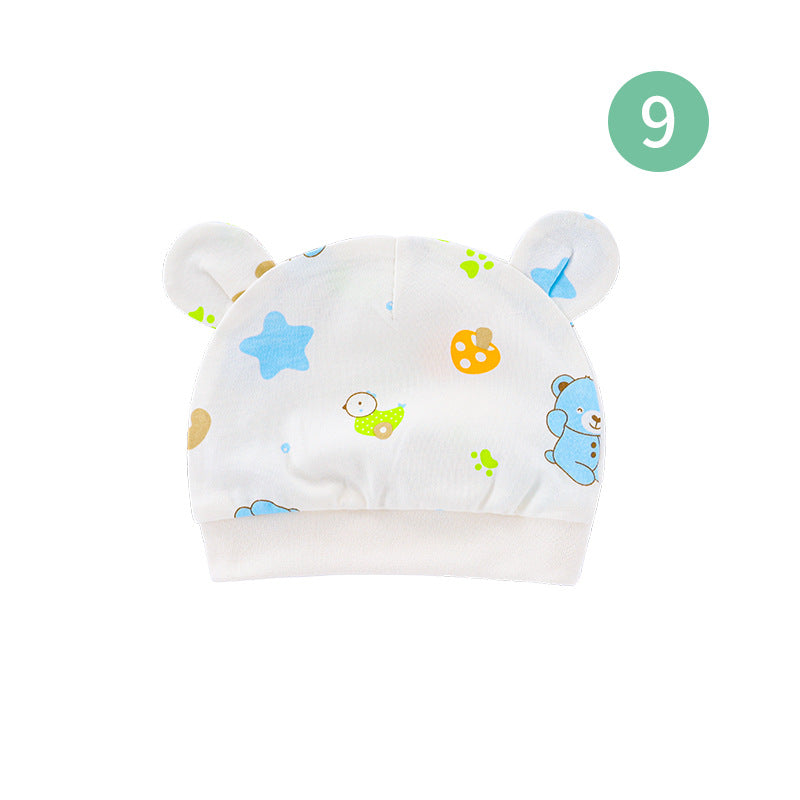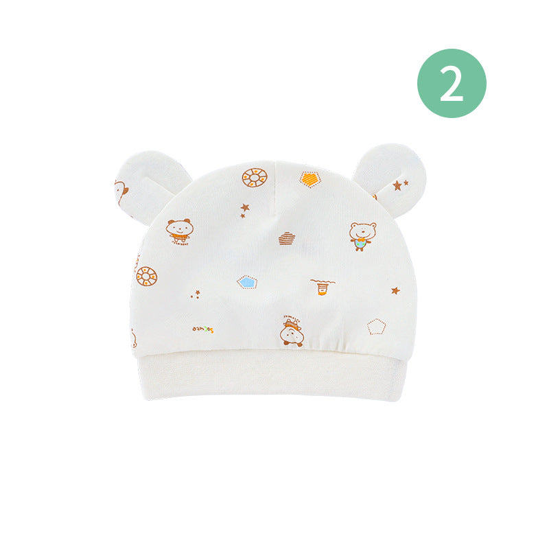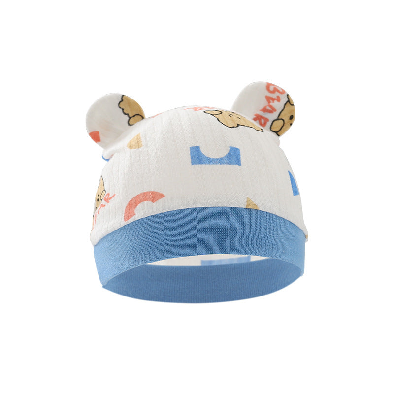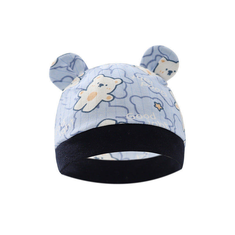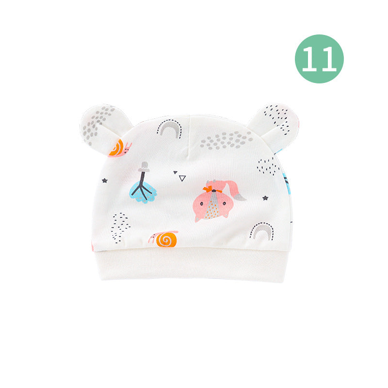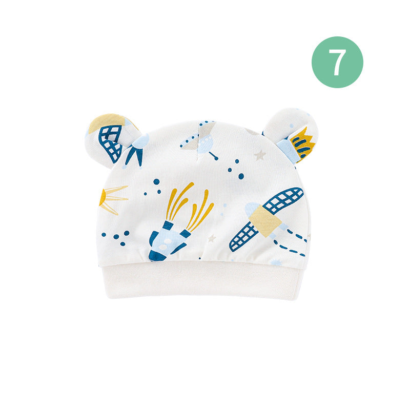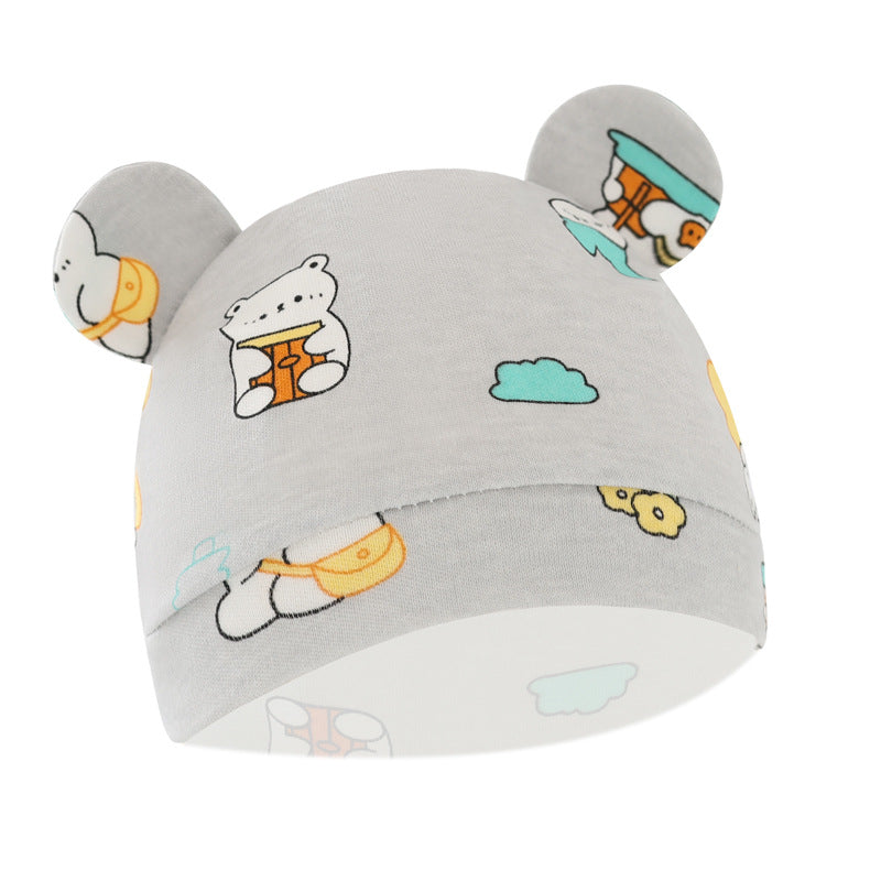 Foreign trade European and American newborn baby hat cartoon printing double ear baby hat 0-3 months baby hat 8320