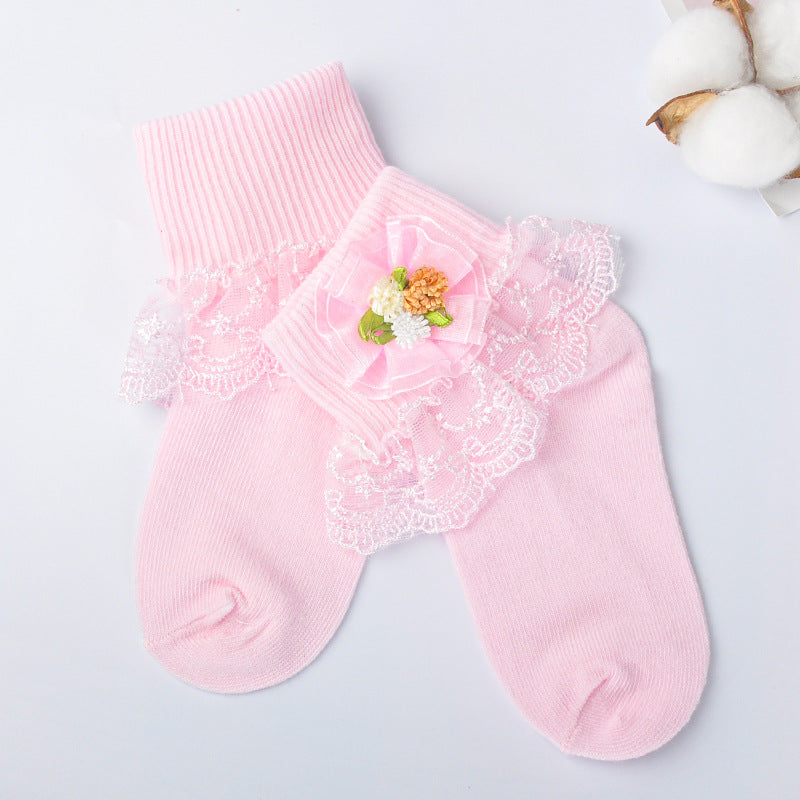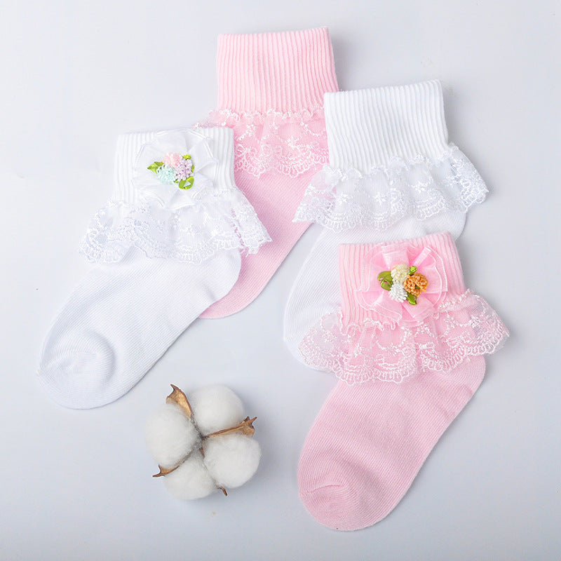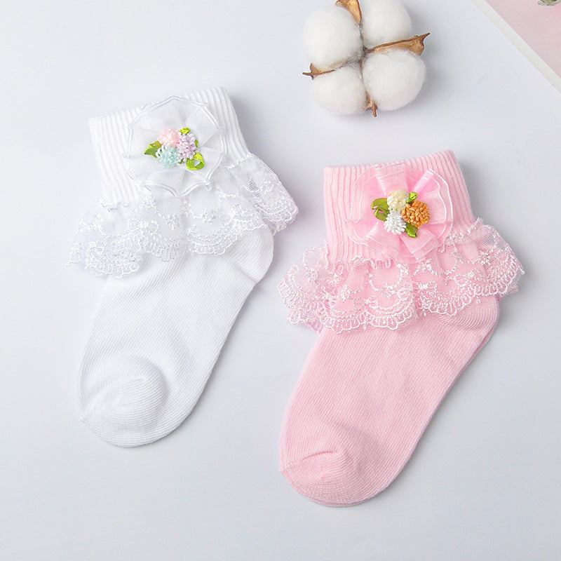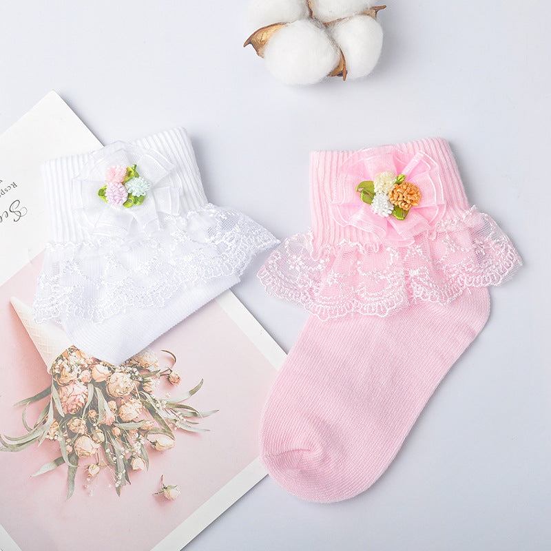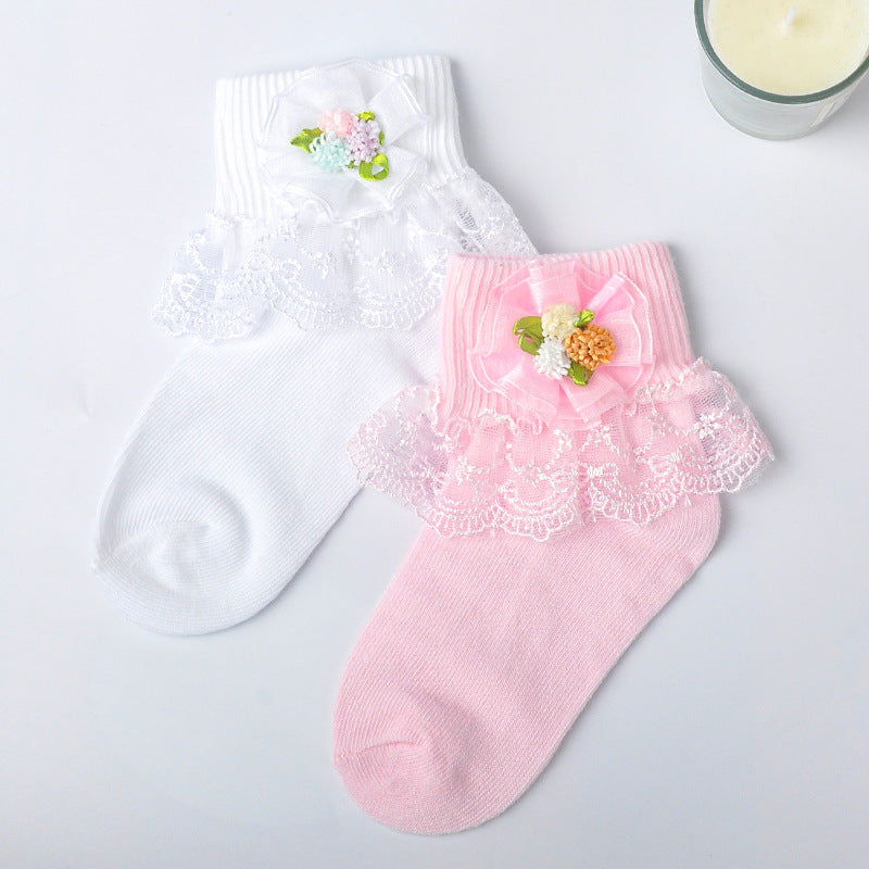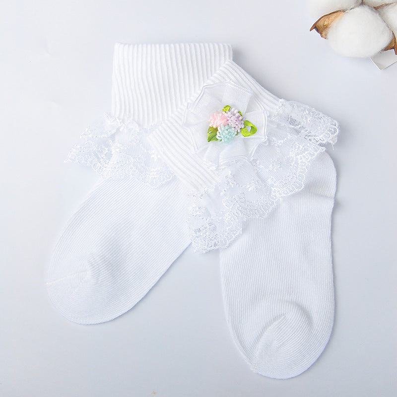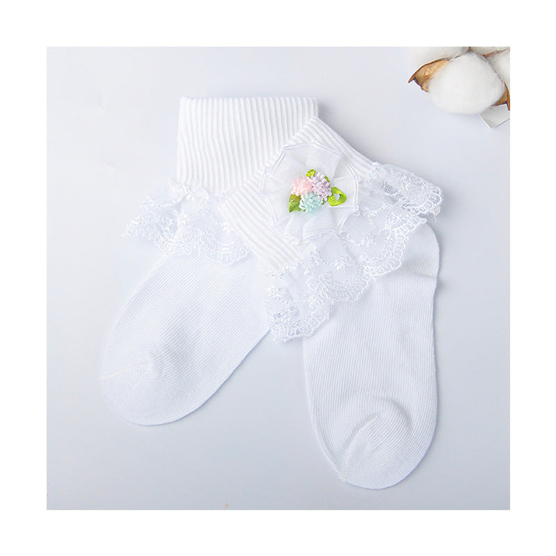Girls cotton socks colorful flower leaves short tube girls socks lace mesh embroidery lace socks baby socks