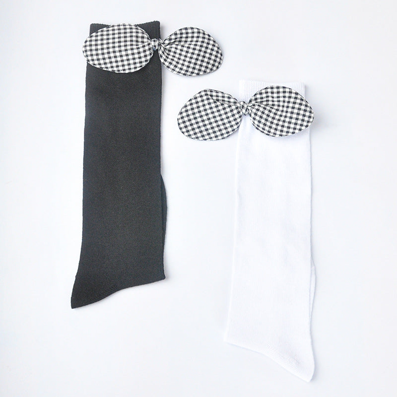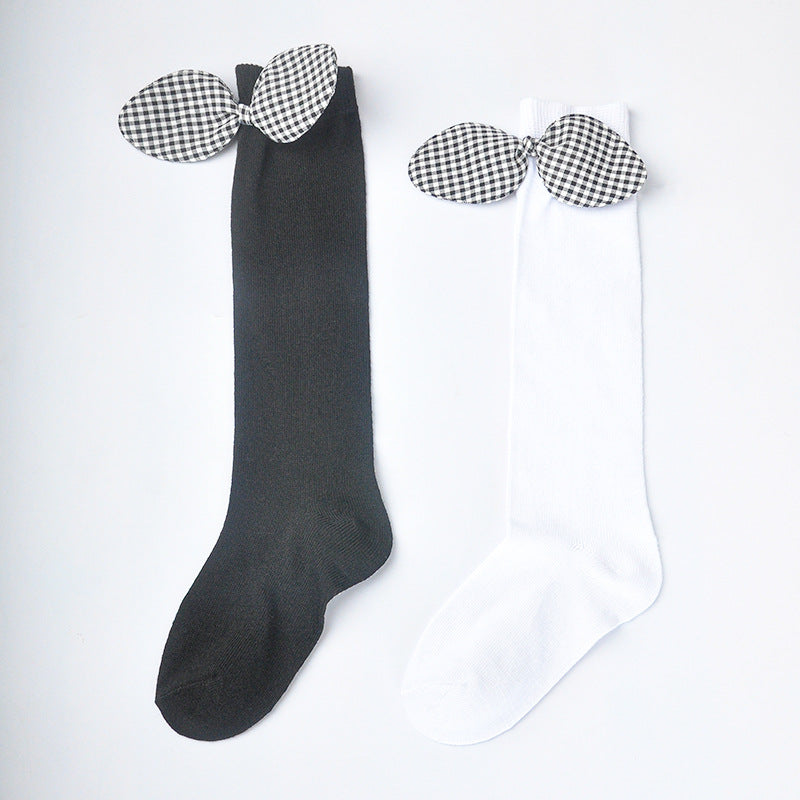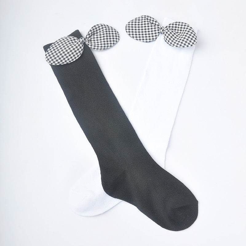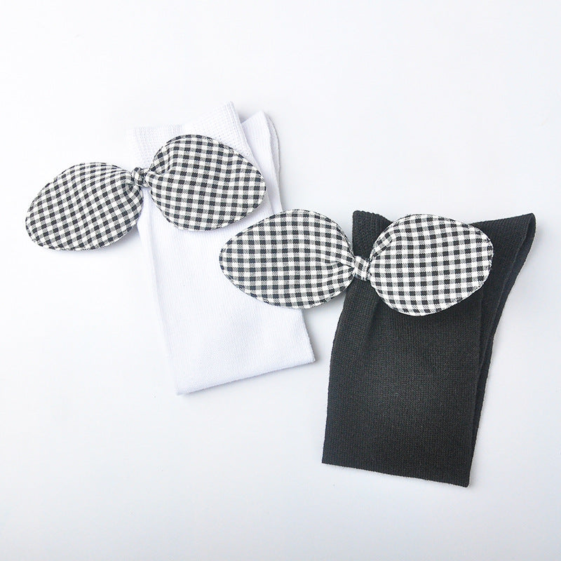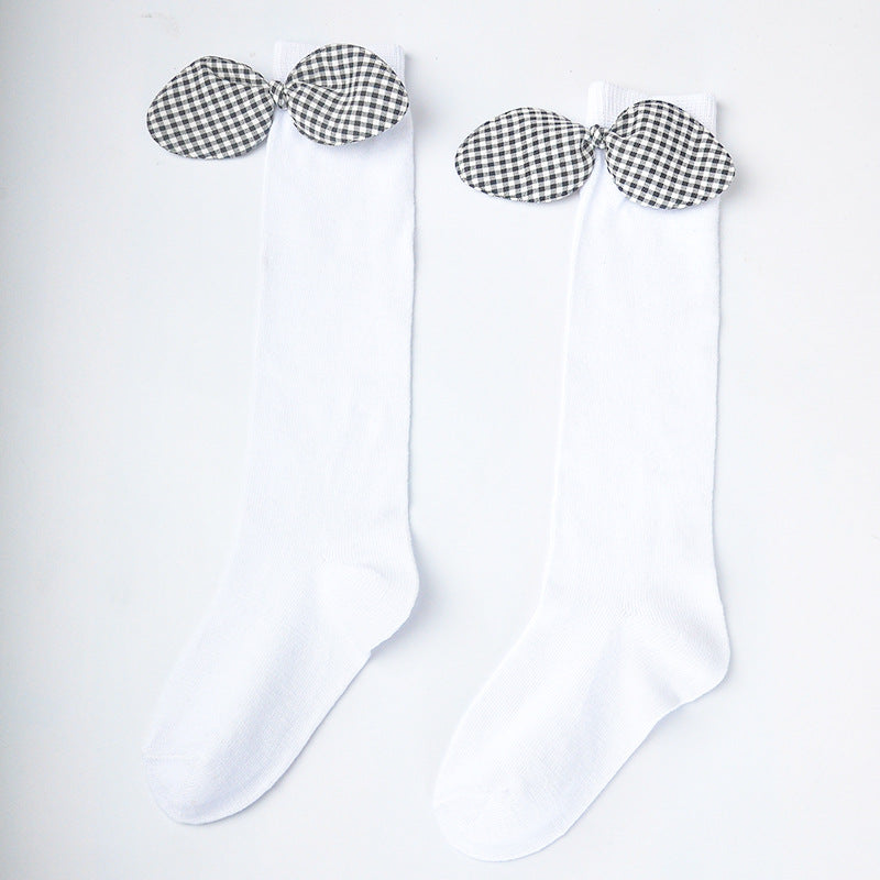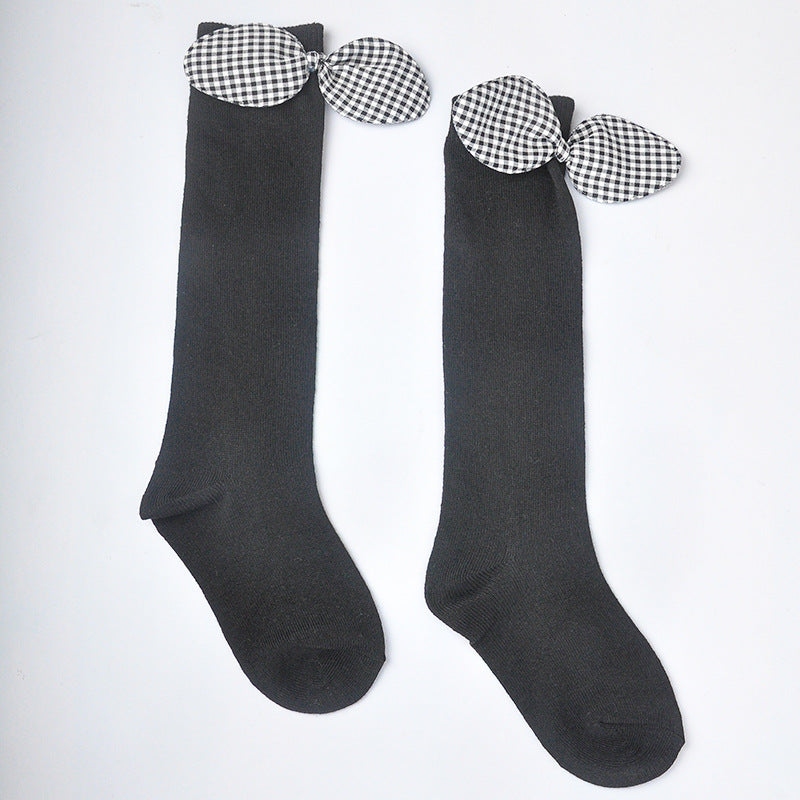 Girls socks black and white checkerboard bow decoration children socks baby cotton socks princess children socks wholesale