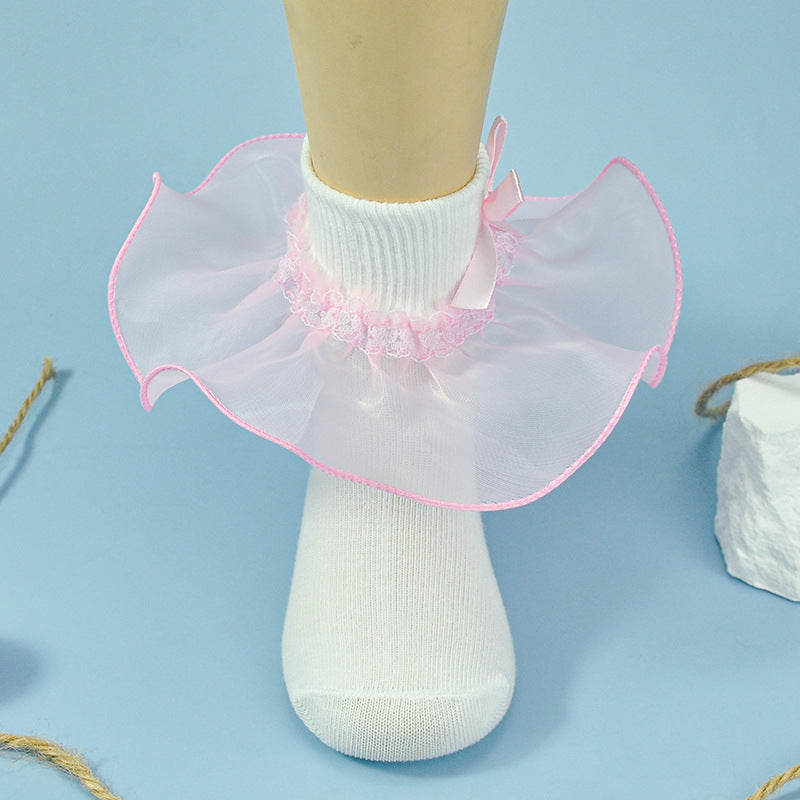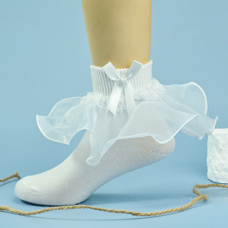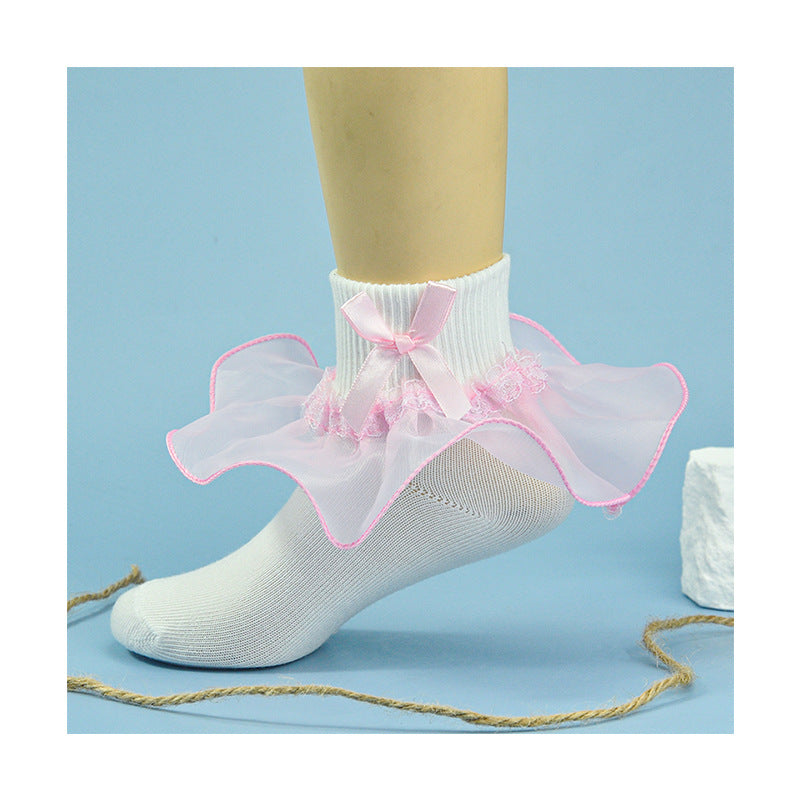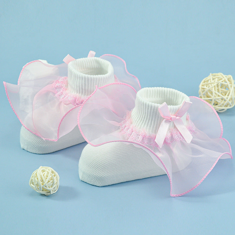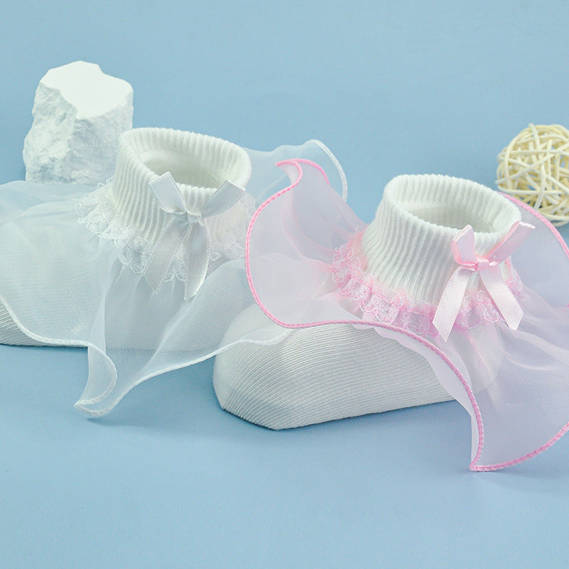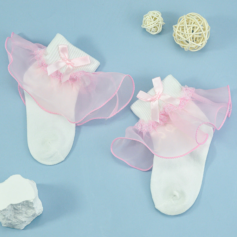 Girls socks bowknot lace socks two-color socks breathable soft baby cotton socks children's socks
