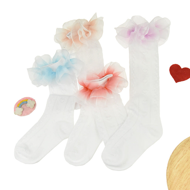 Girls socks spring and summer princess lace socks baby cotton socks children's stockings piles of socks big children's stockings