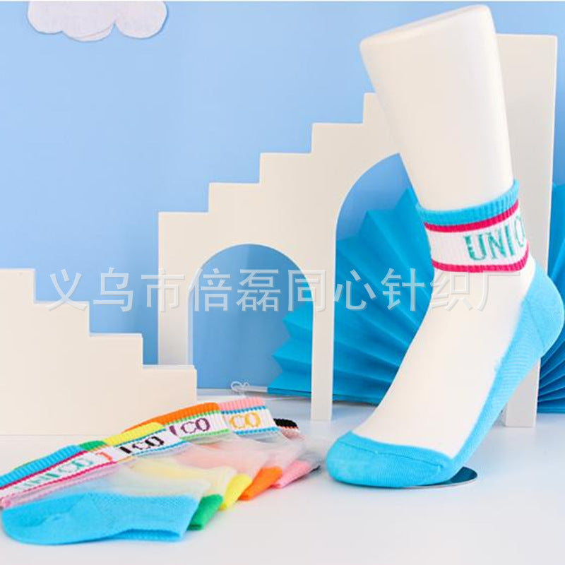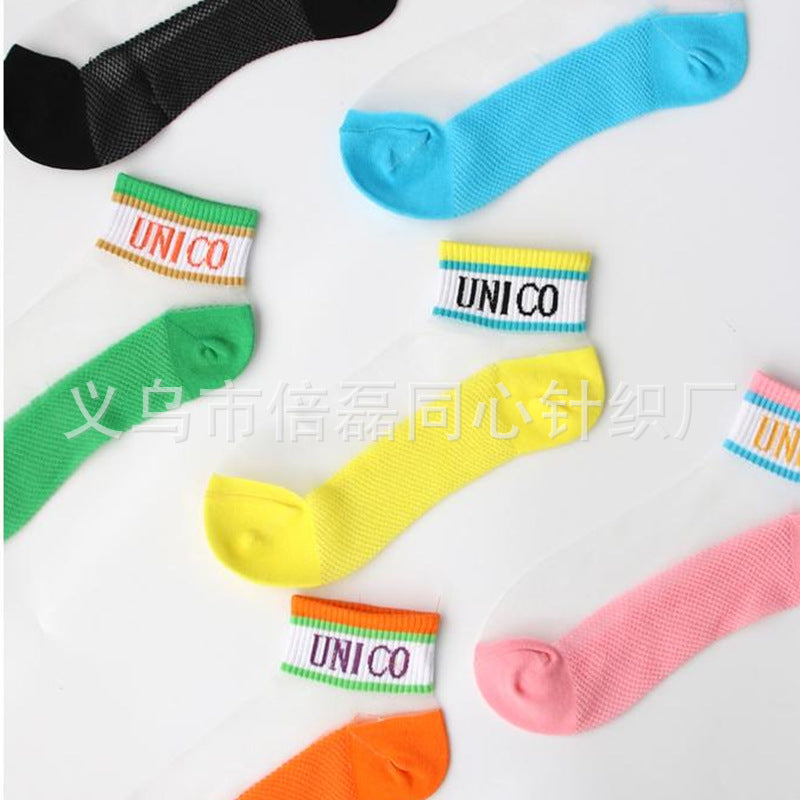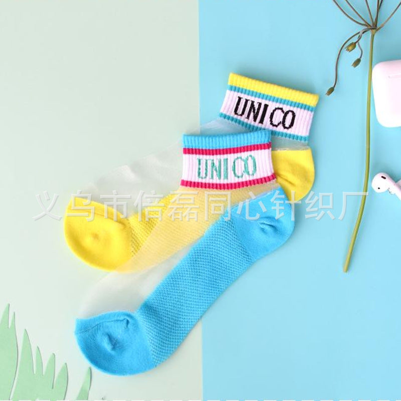 Girls socks summer thin section shallow mouth socks crystal glass stockings net red cute ins girl baby boat socks