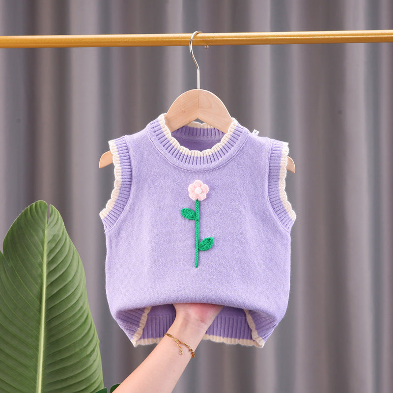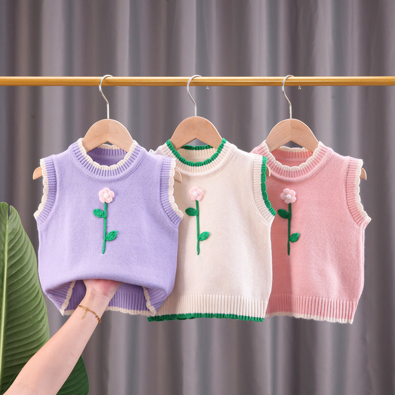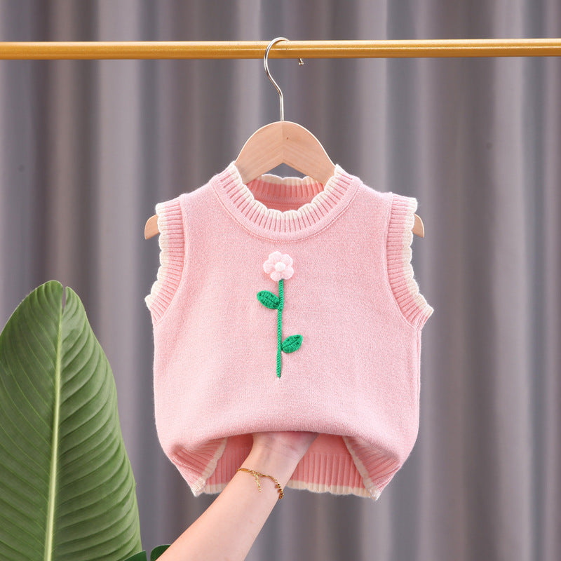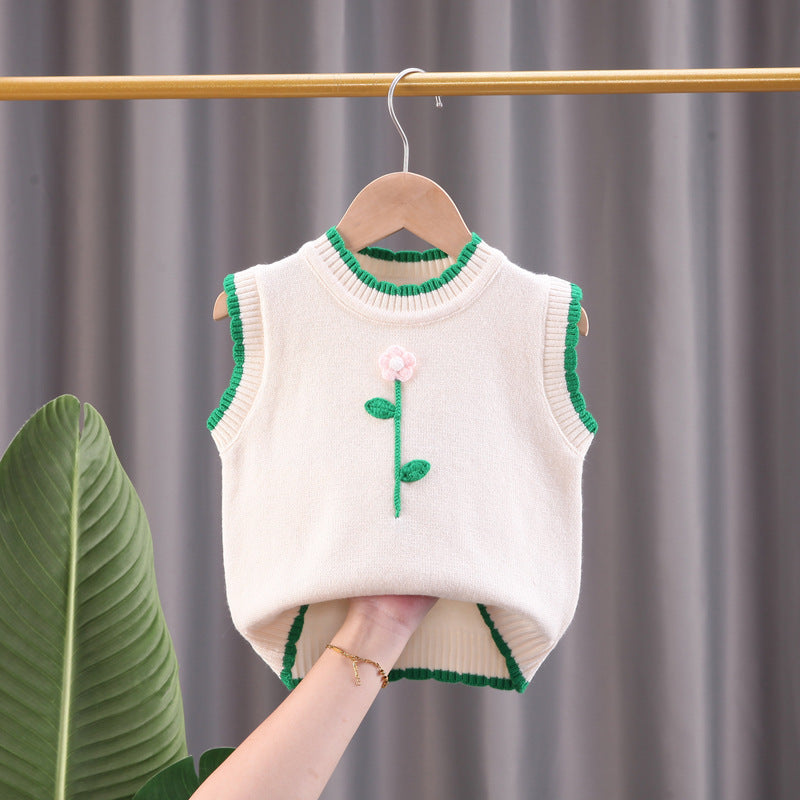 Girls vest sweater small children round neck pullover spring and autumn children's knitted sweater girl baby thin vest