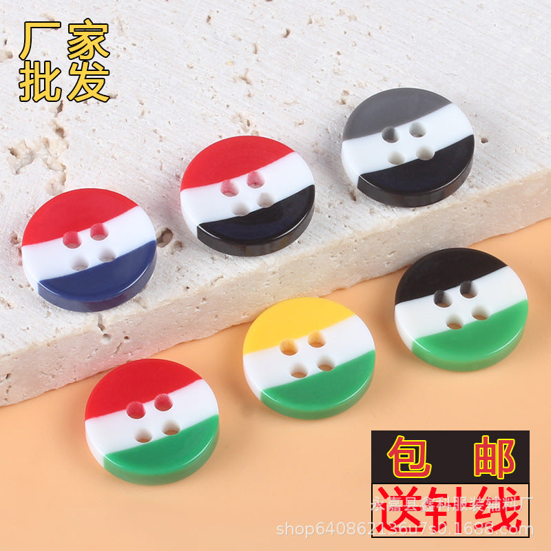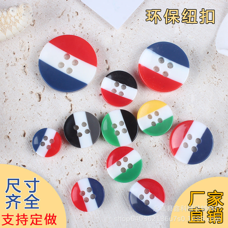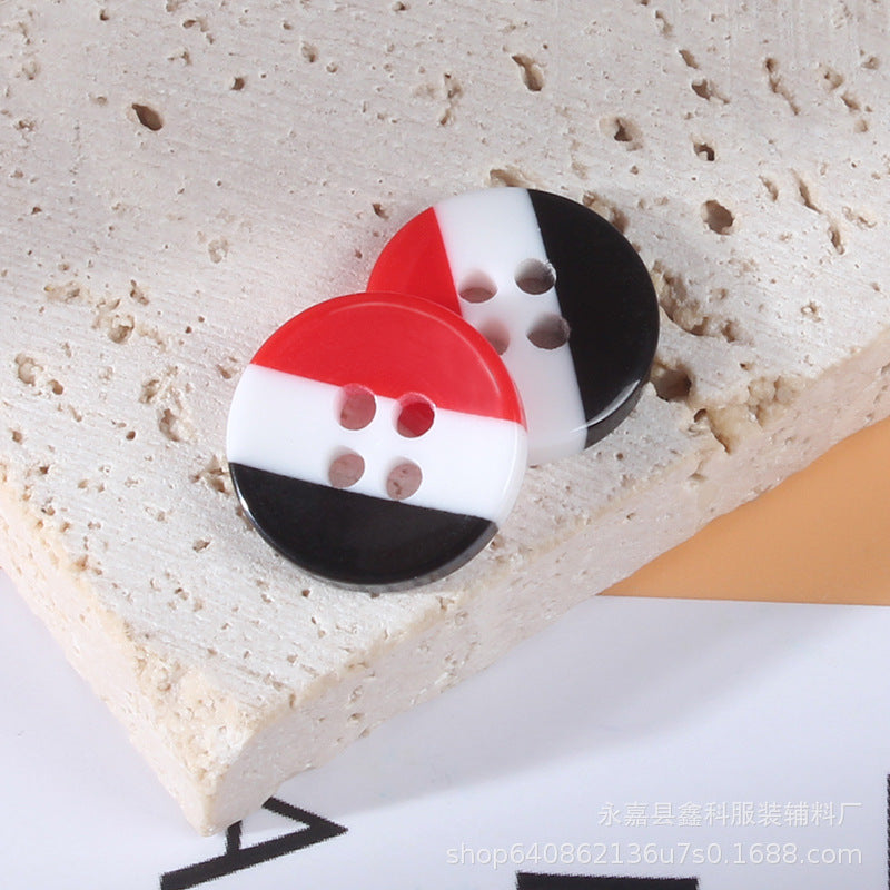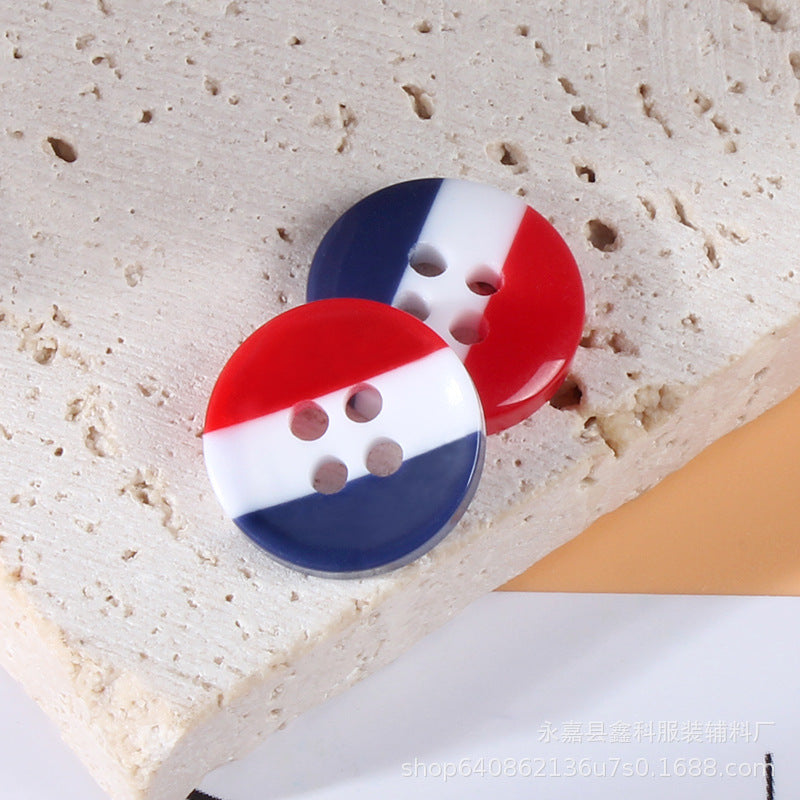 High-end resin button color striped shirt button baby baby children sweater school uniform red white blue round button