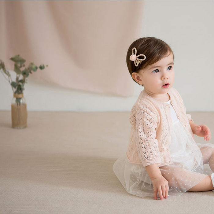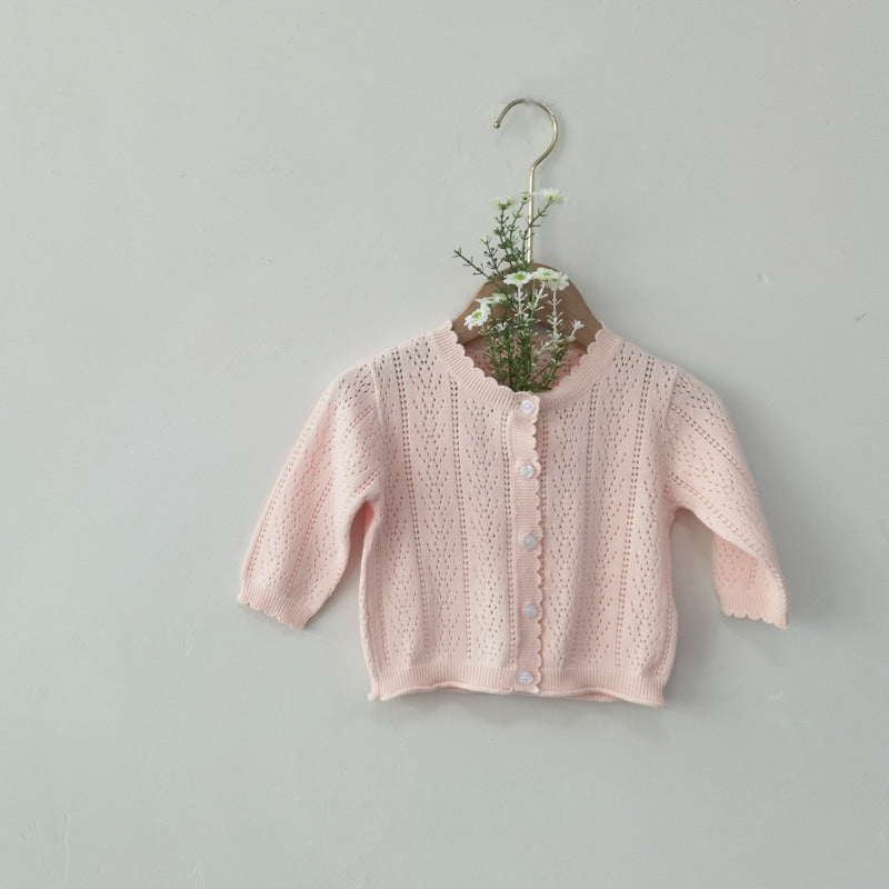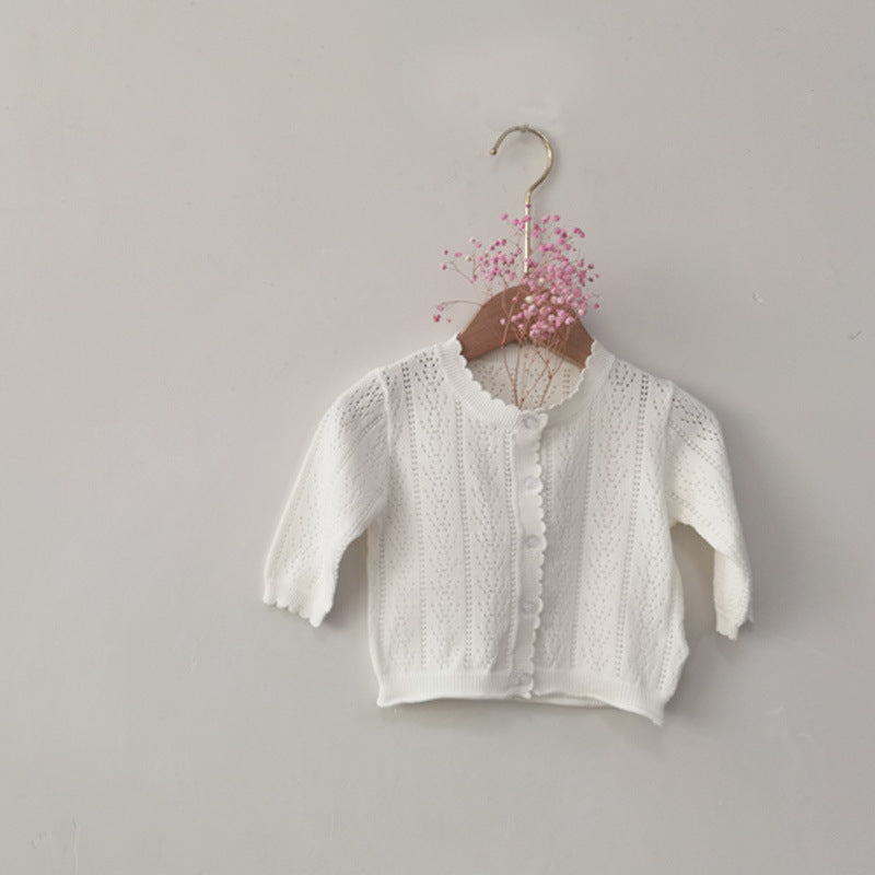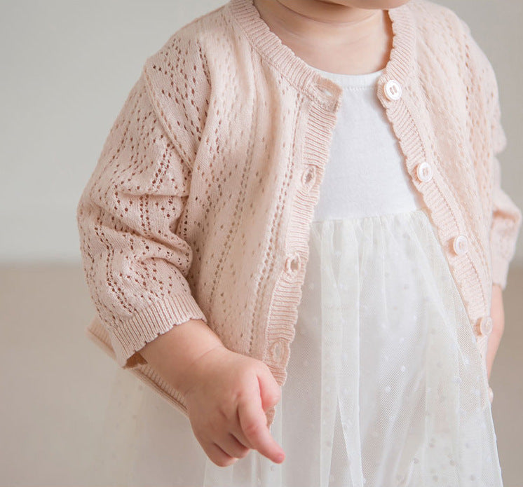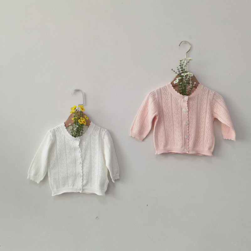 Ins baby cardigan thin coat Korean female baby princess hollow knit sweater sunscreen air-conditioning shirt spring and summer children