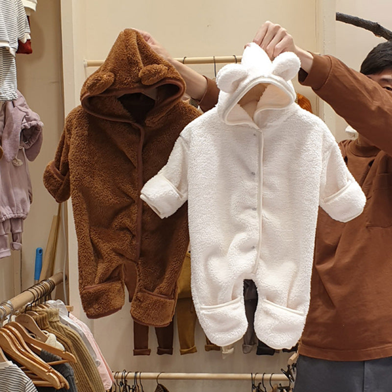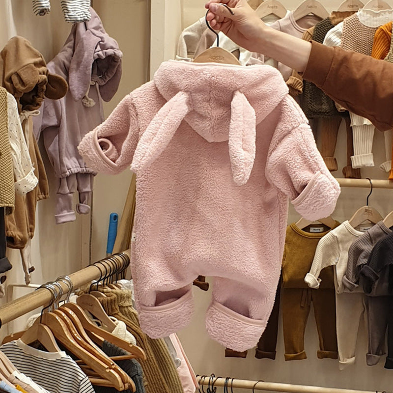 Ins baby plush one-piece bear clothing autumn and winter clothing male and female baby rabbit ears warm cute romper long climbing clothing