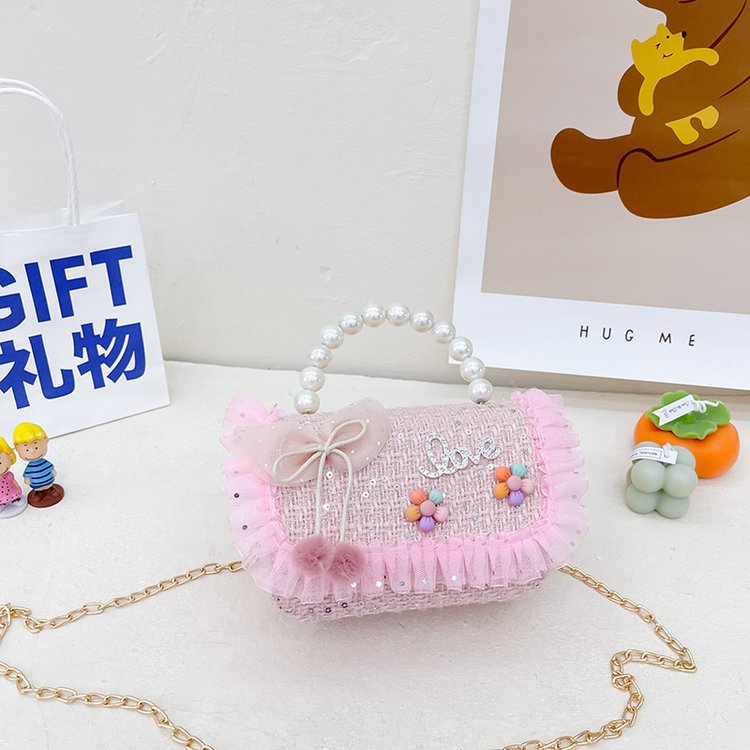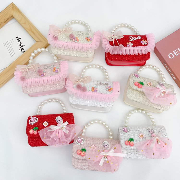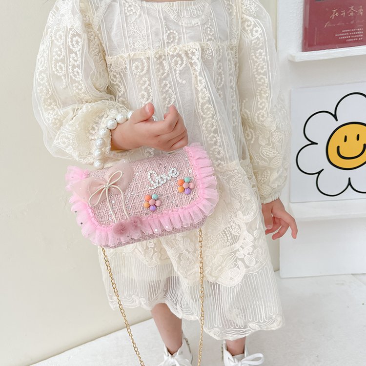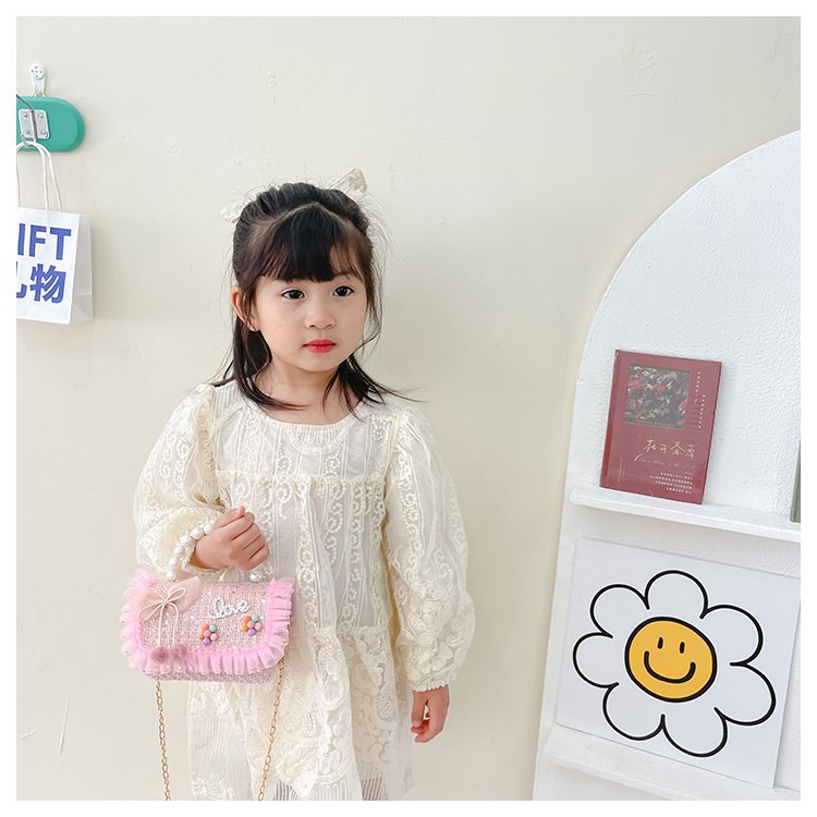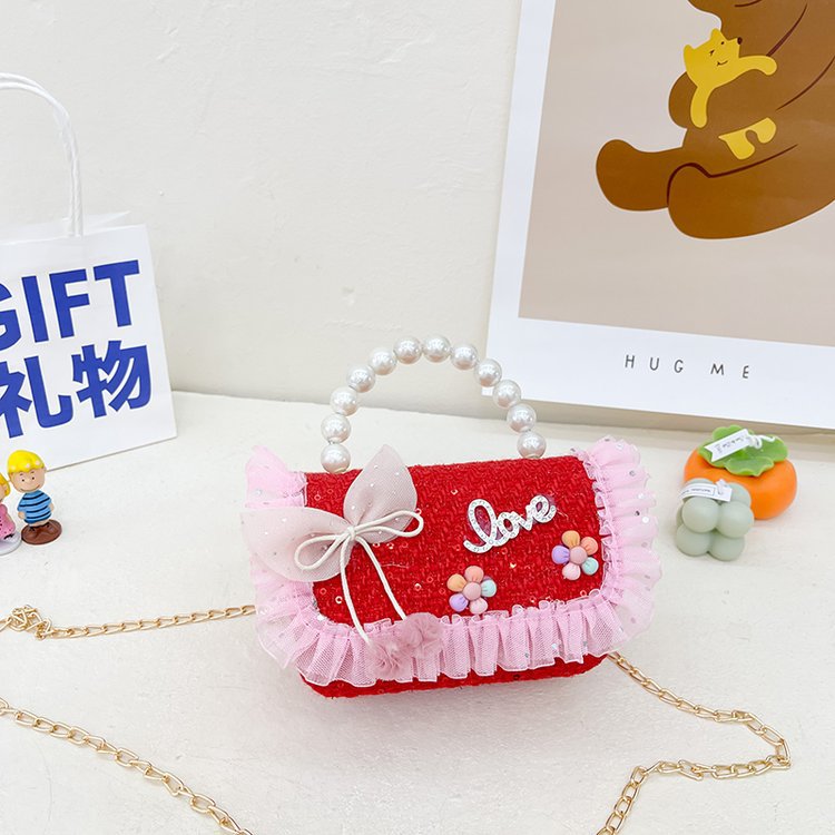 ins new Chinese red children's bag girl princess shoulder Messenger bag baby handbag chain small square bag