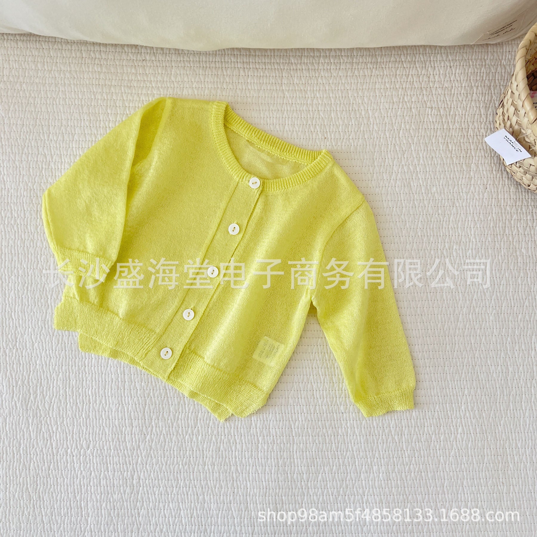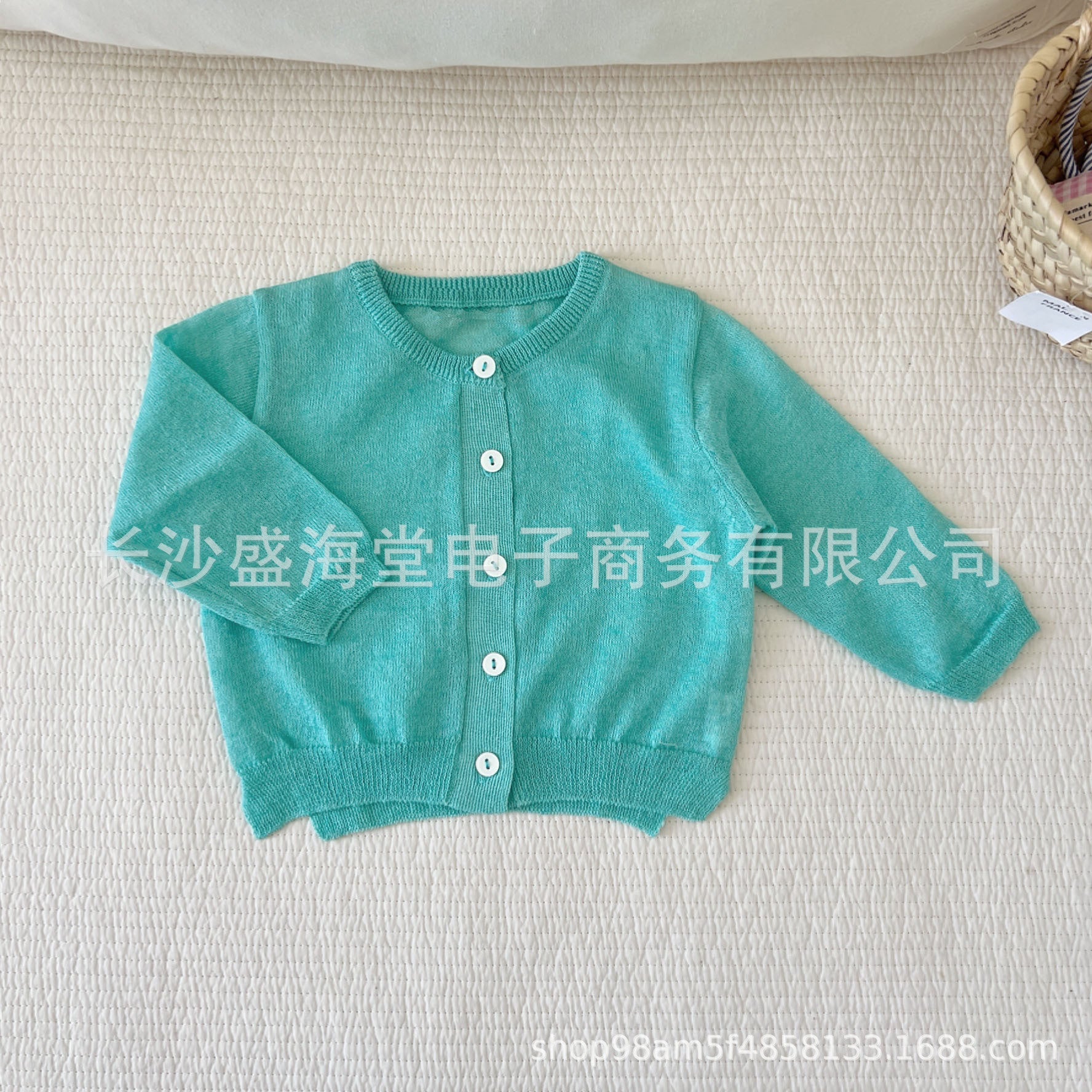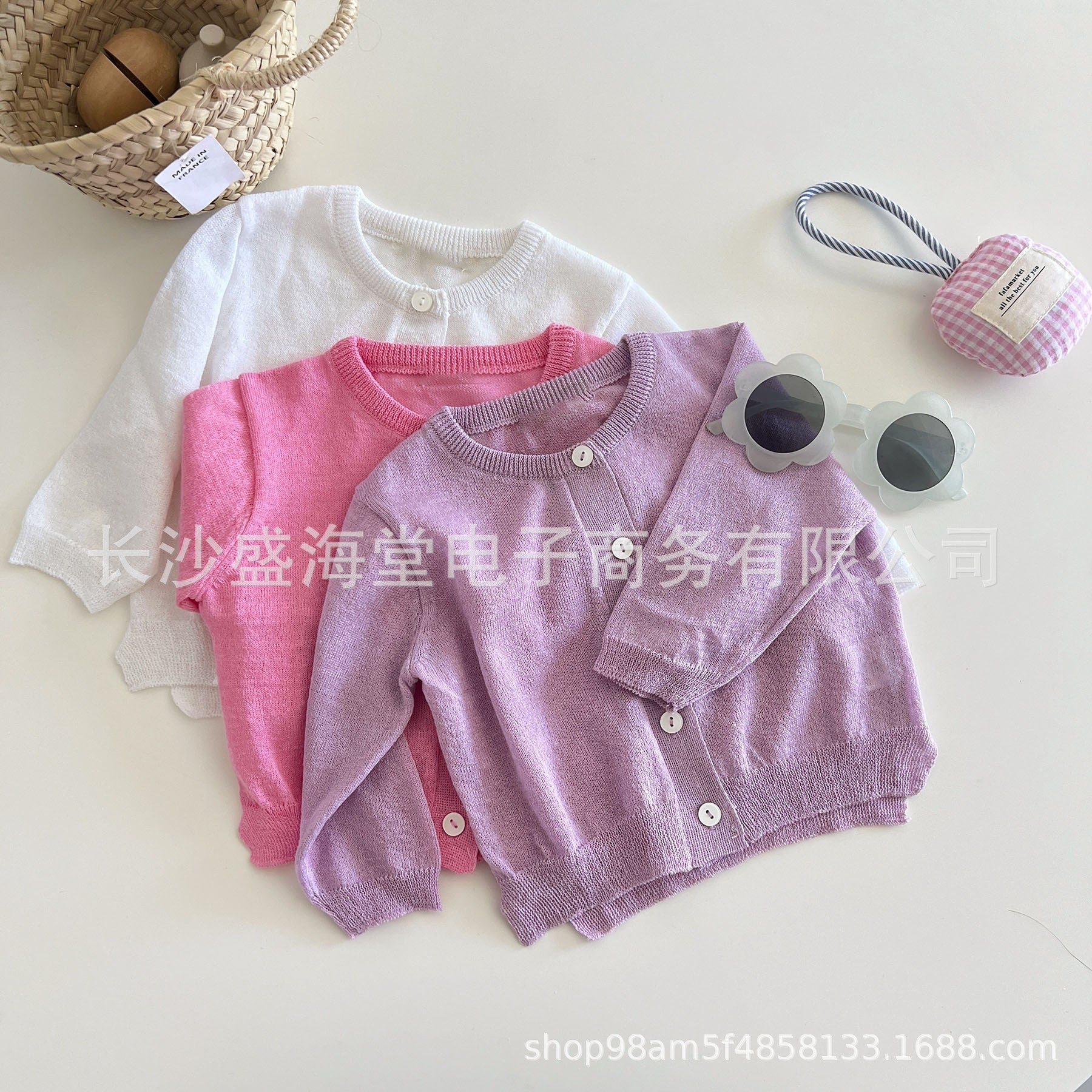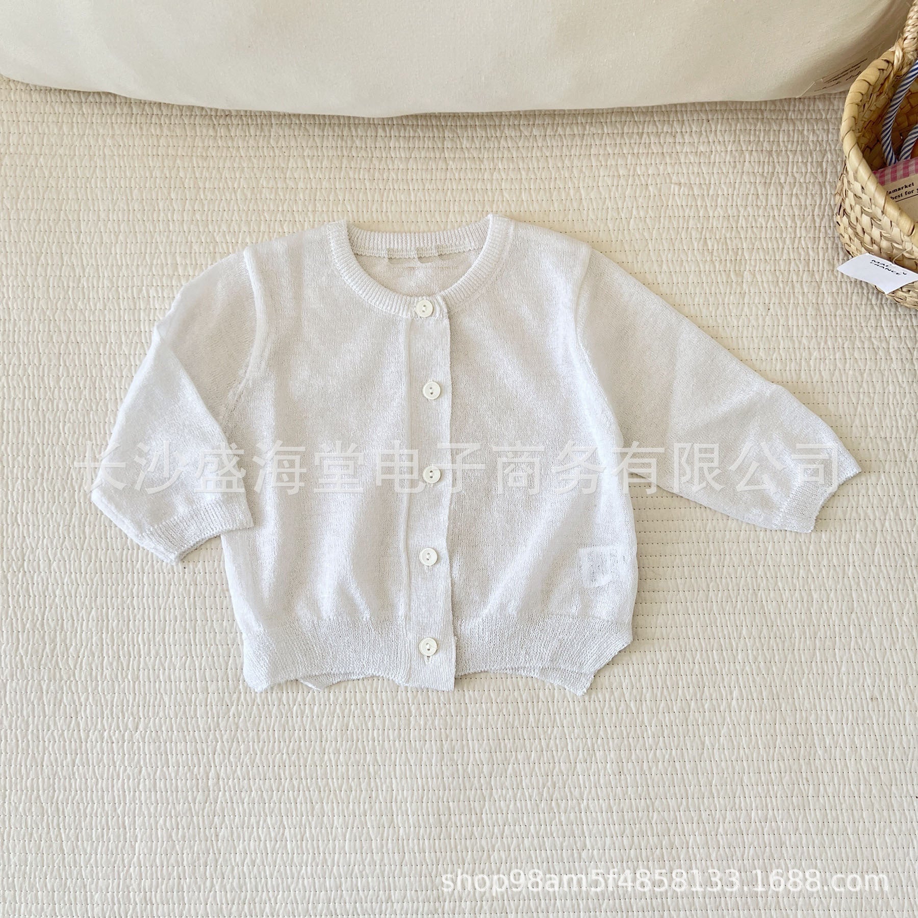 Kindergarten baby all-match cotton thin knitwear children summer hollow long-sleeved air-conditioning shirt sunscreen jacket