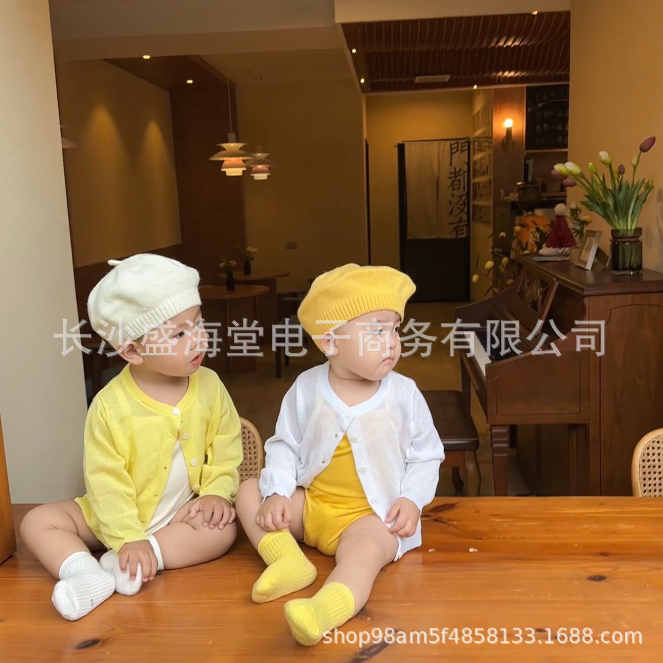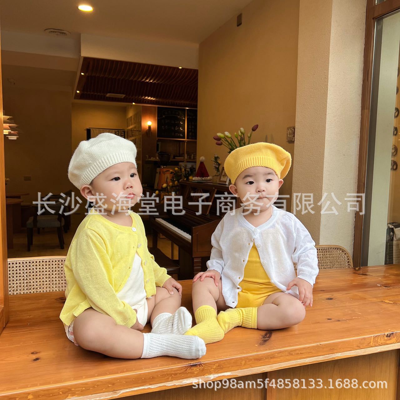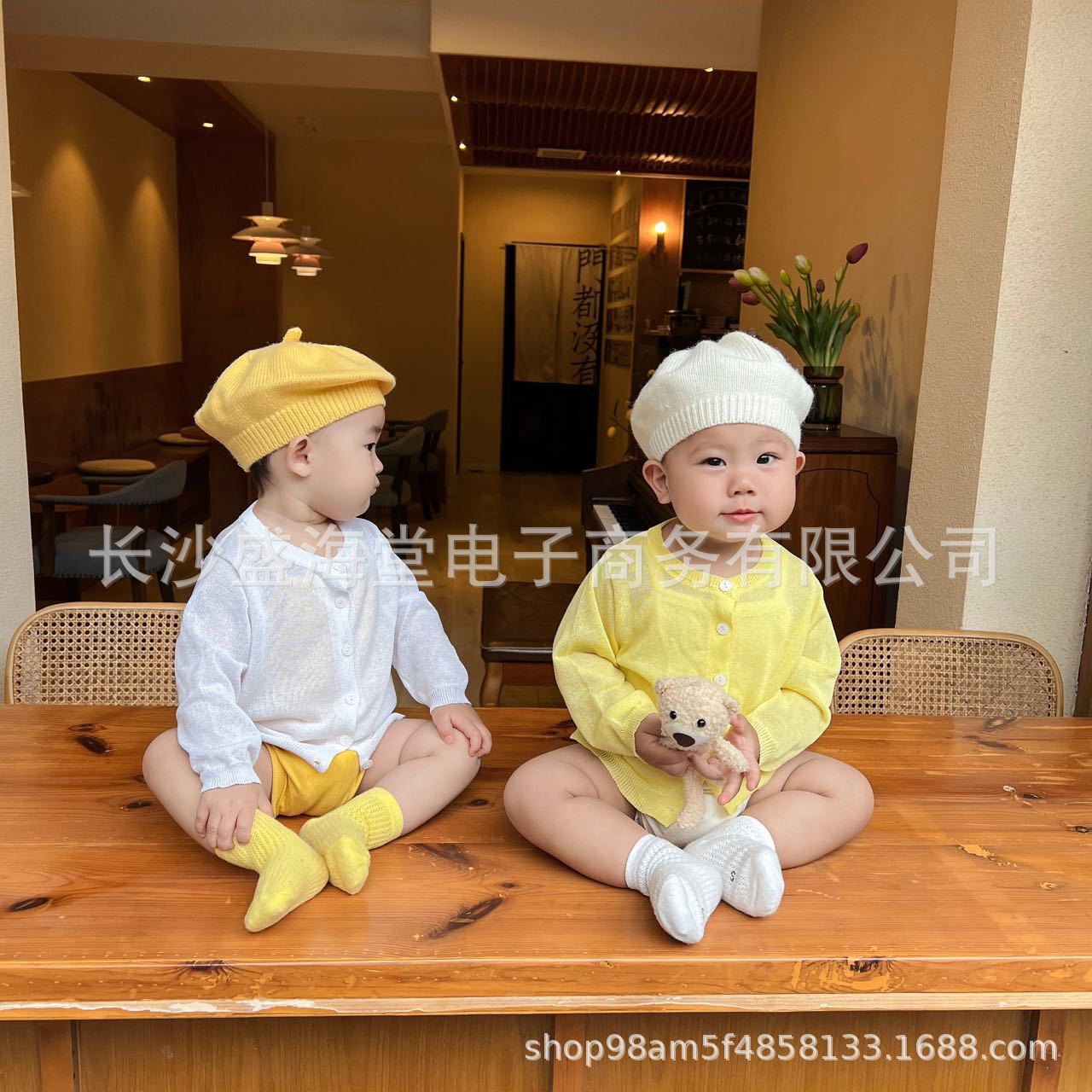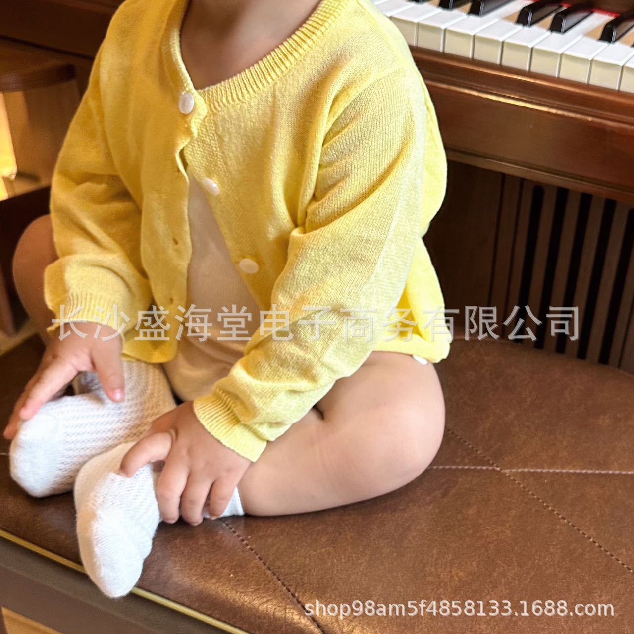 Kindergarten baby all-match cotton thin knitwear children summer hollow long-sleeved air-conditioning shirt sunscreen jacket