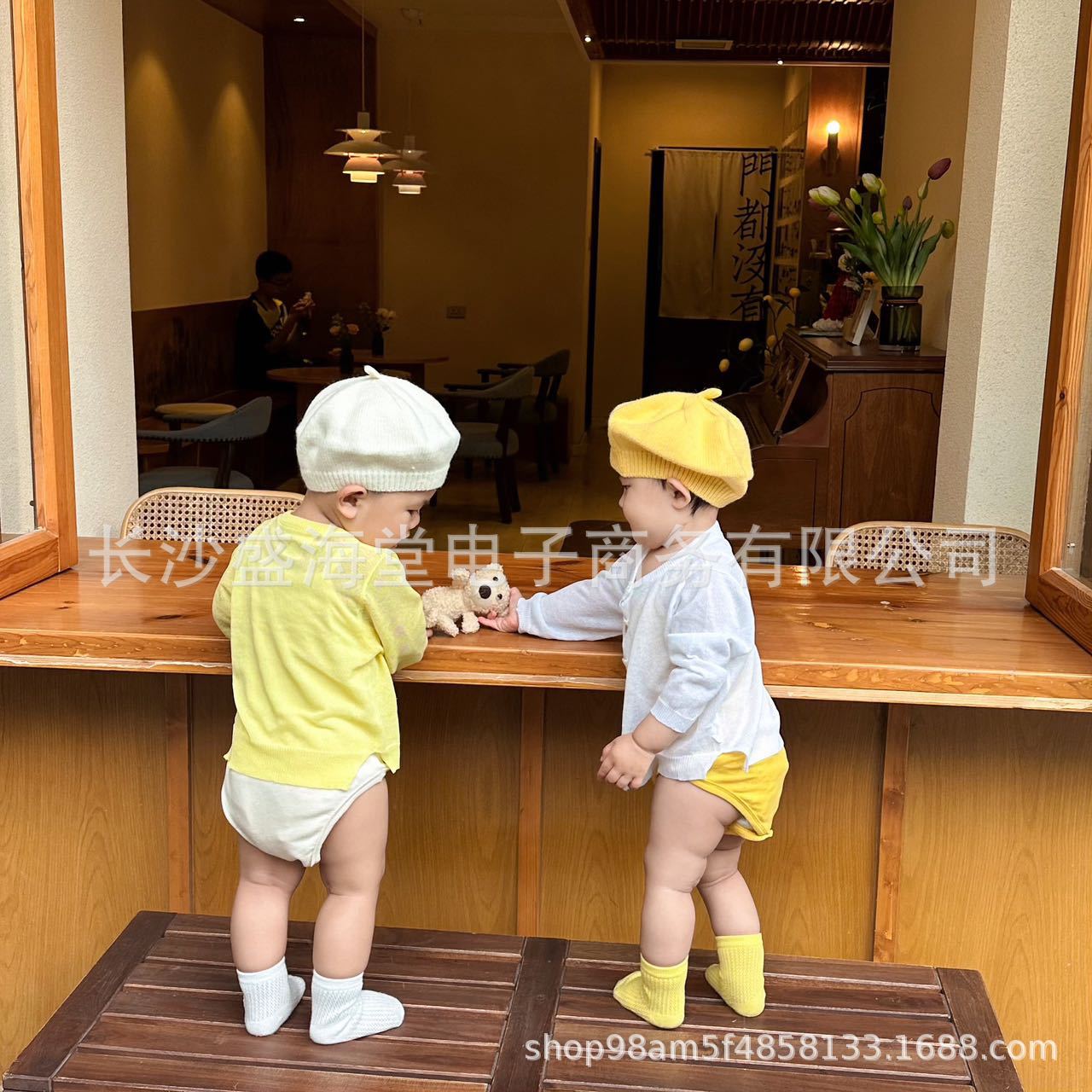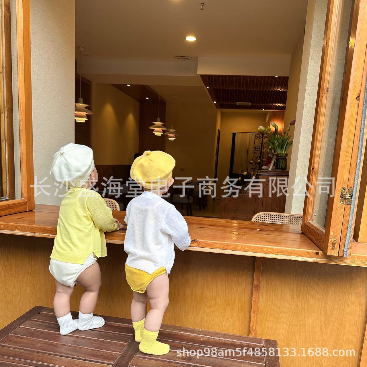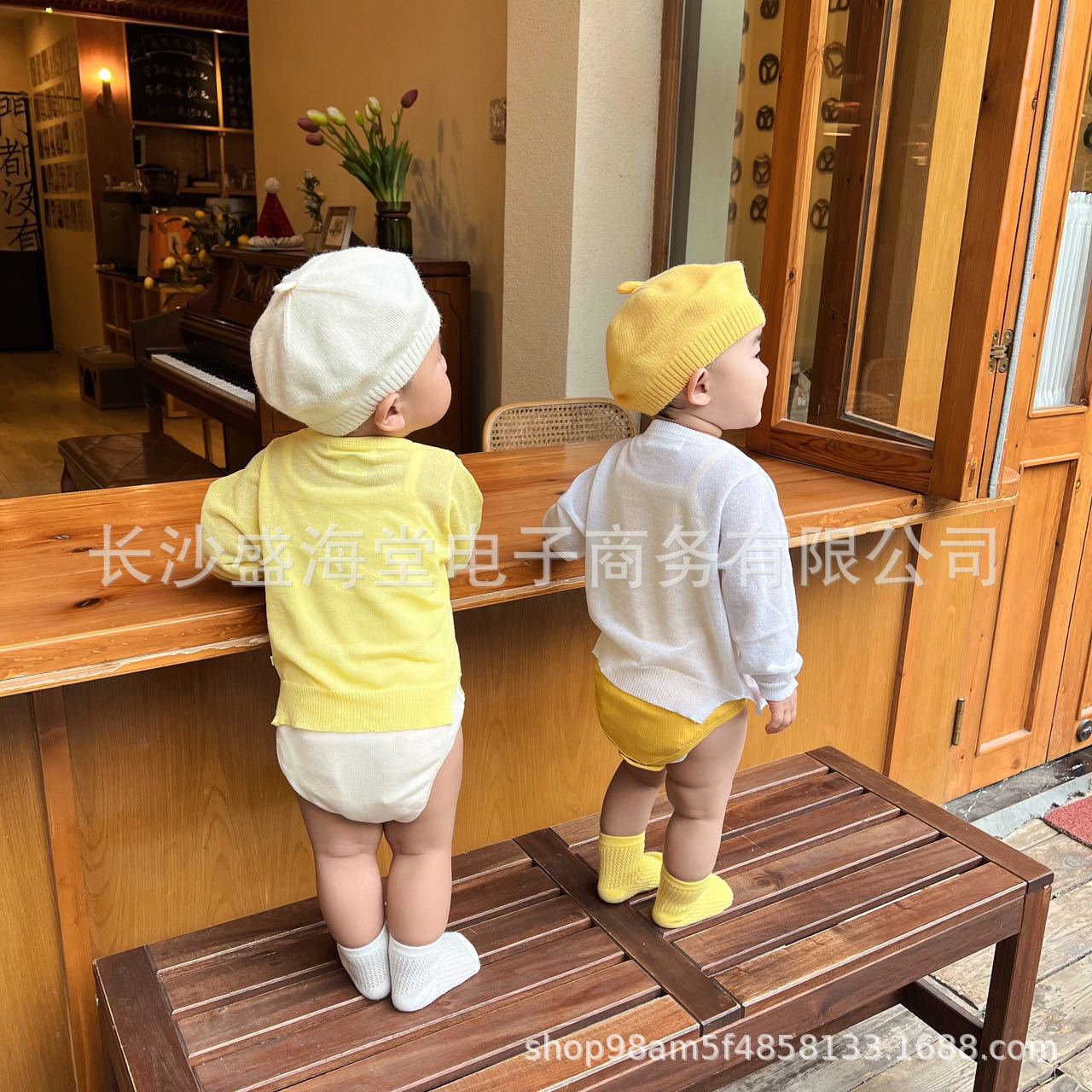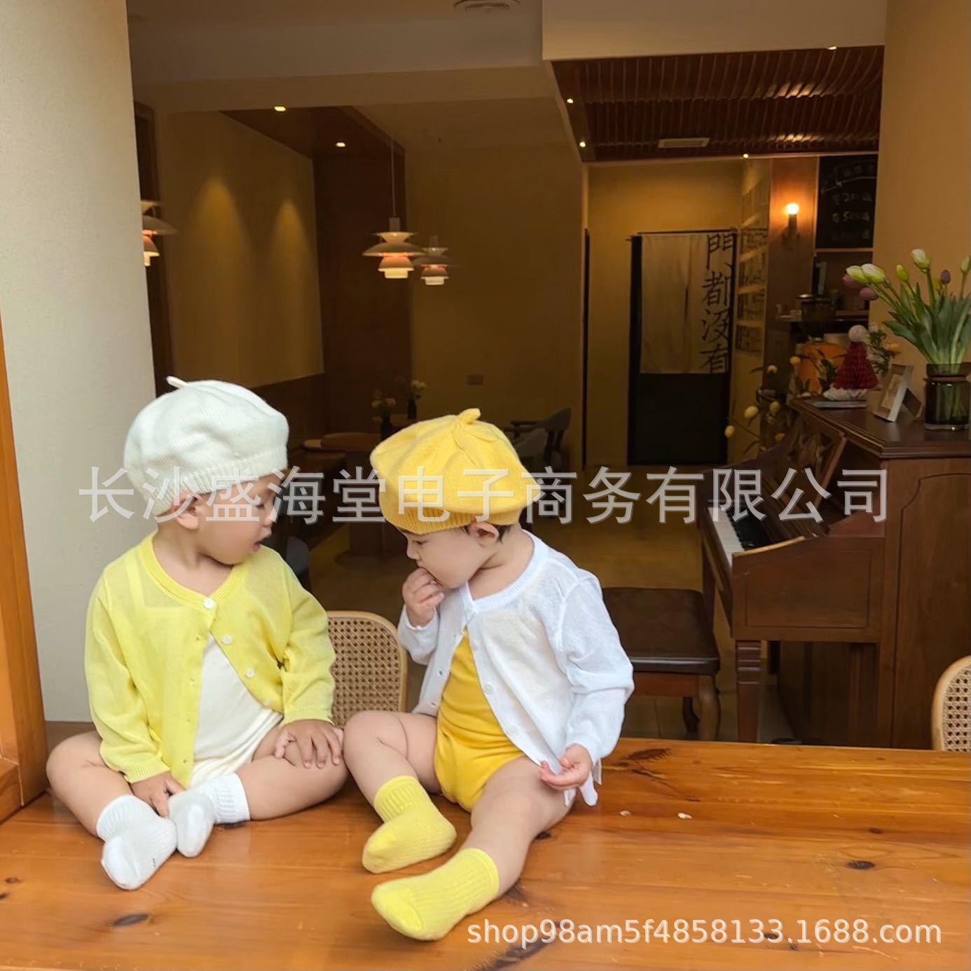 Kindergarten baby all-match cotton thin knitwear children summer hollow long-sleeved air-conditioning shirt sunscreen jacket