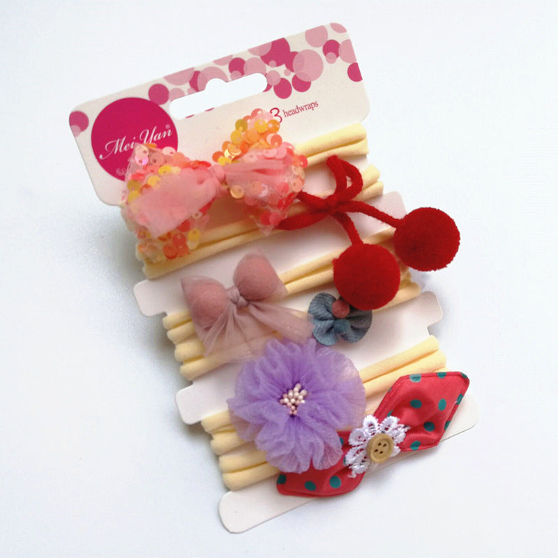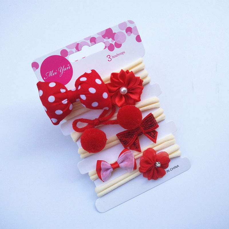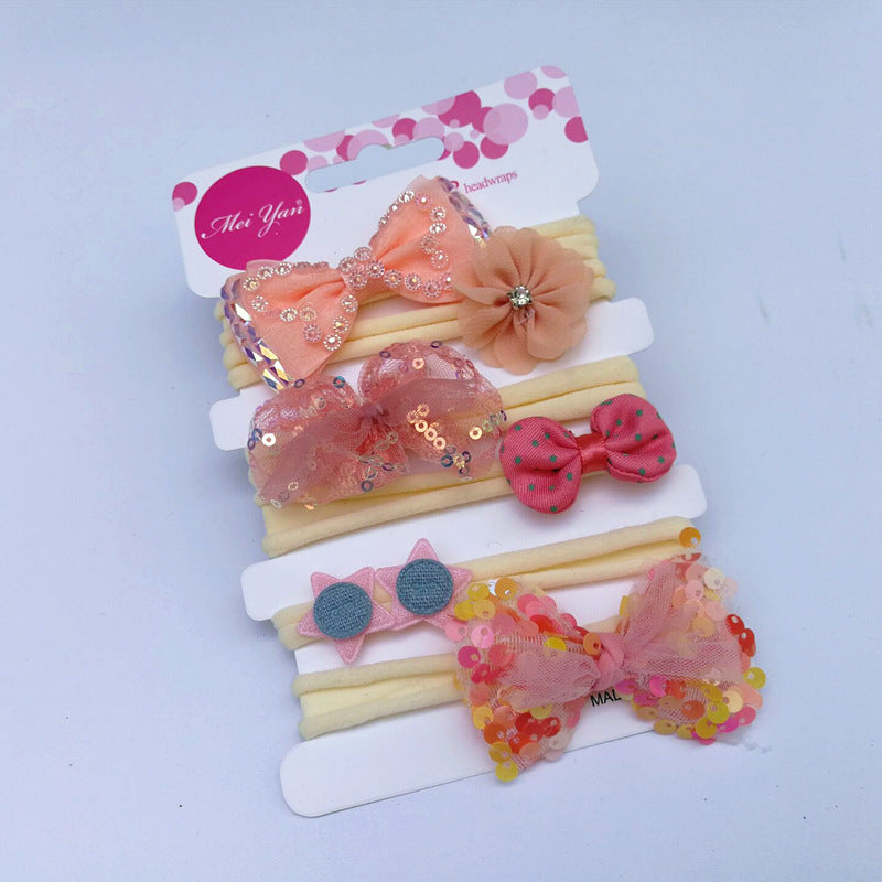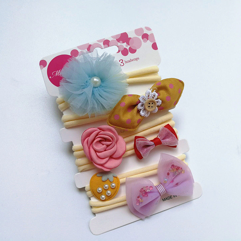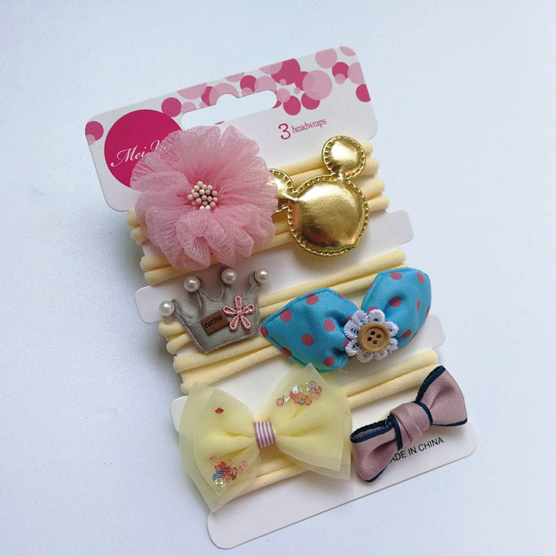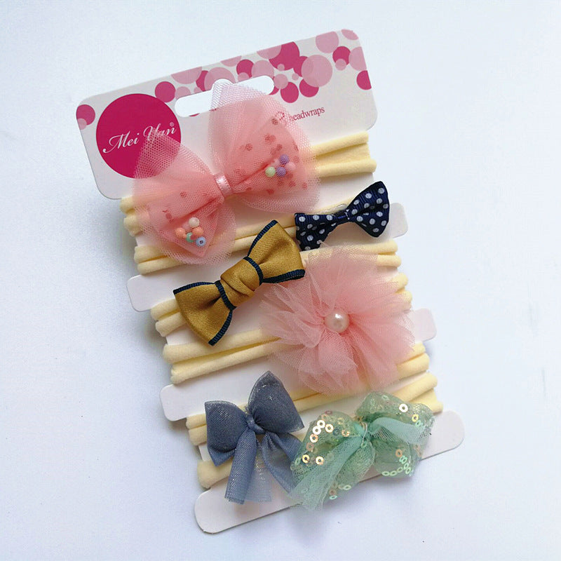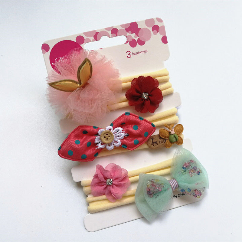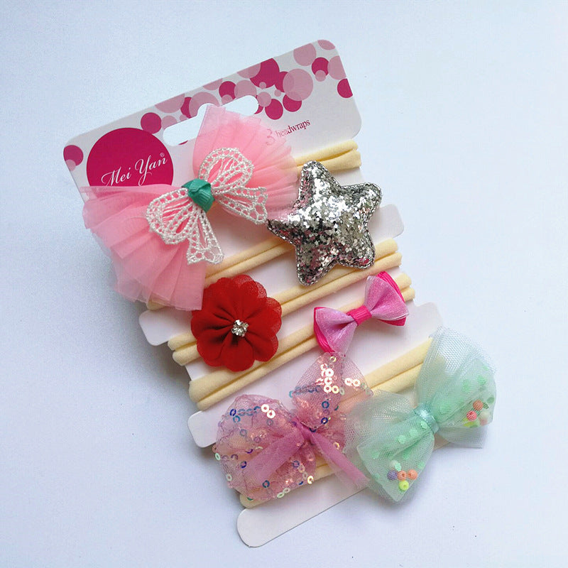 Korean creative handmade hair accessories fabric bow headdress elastic thin hair band six-piece set seamless baby hair ring