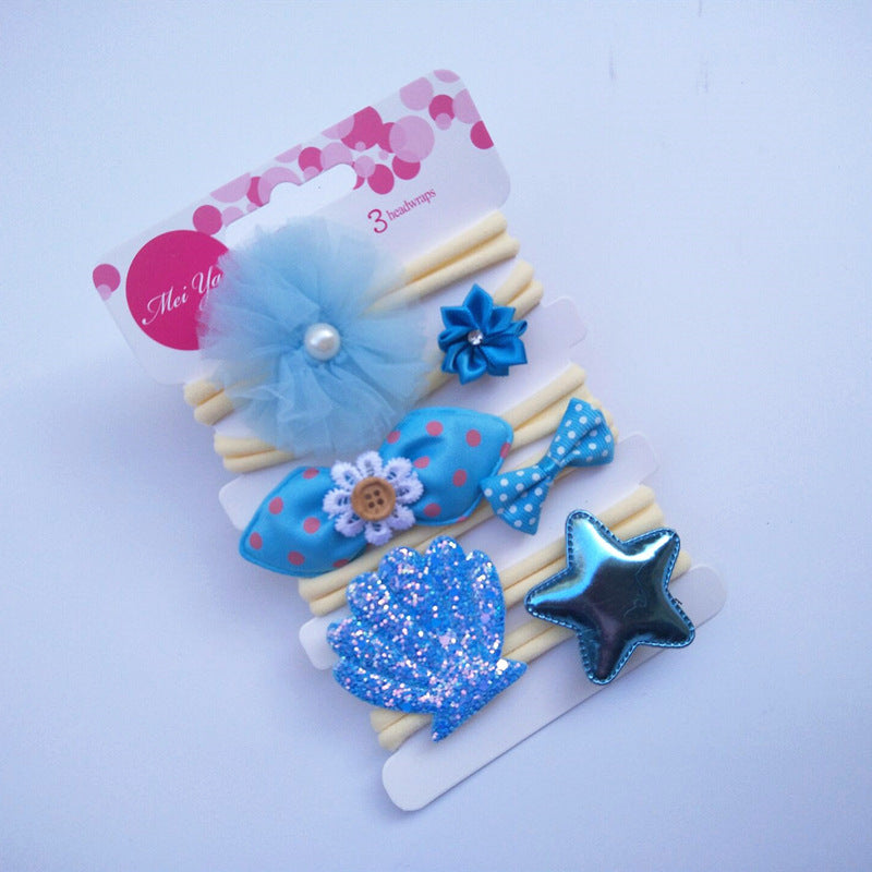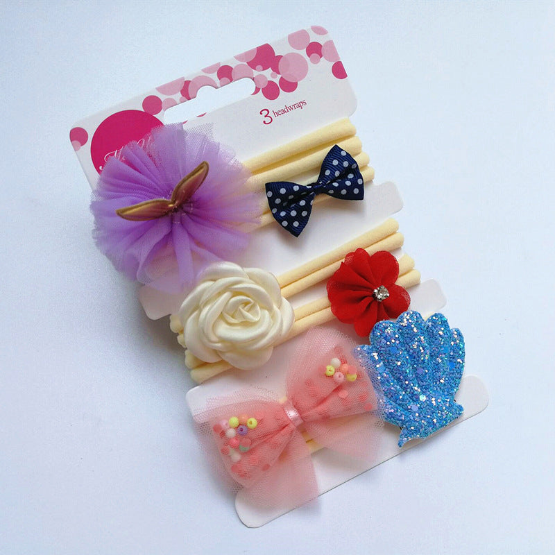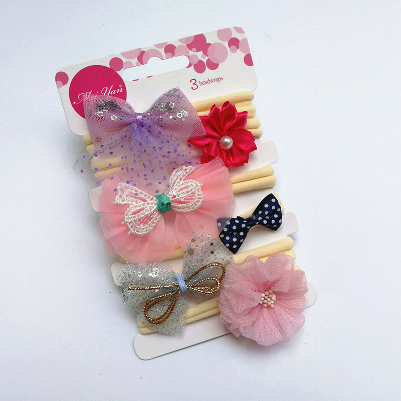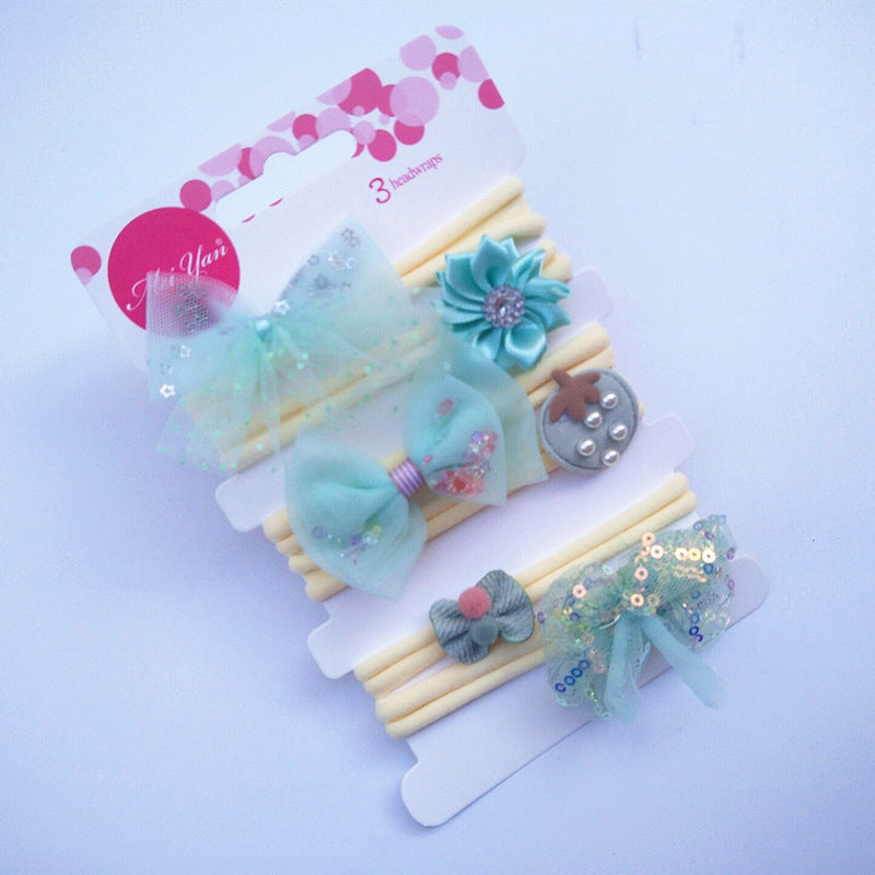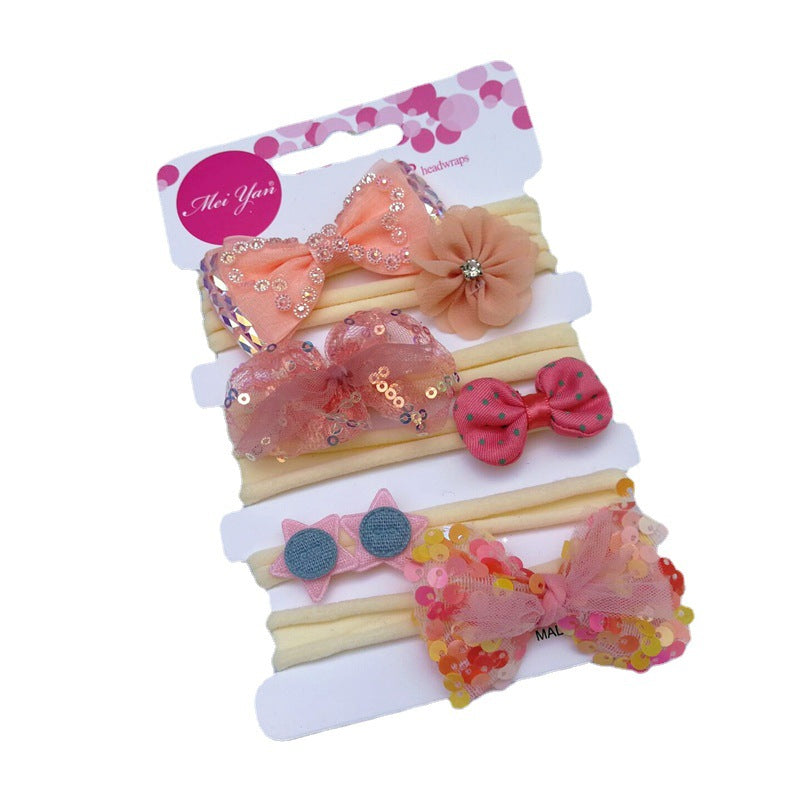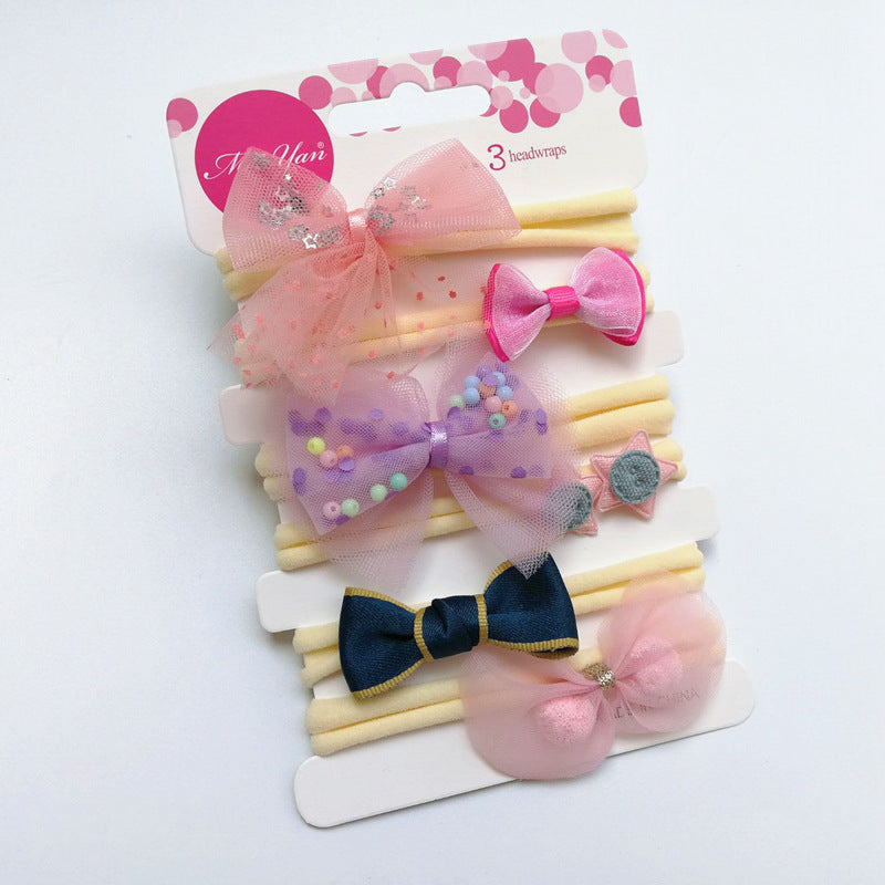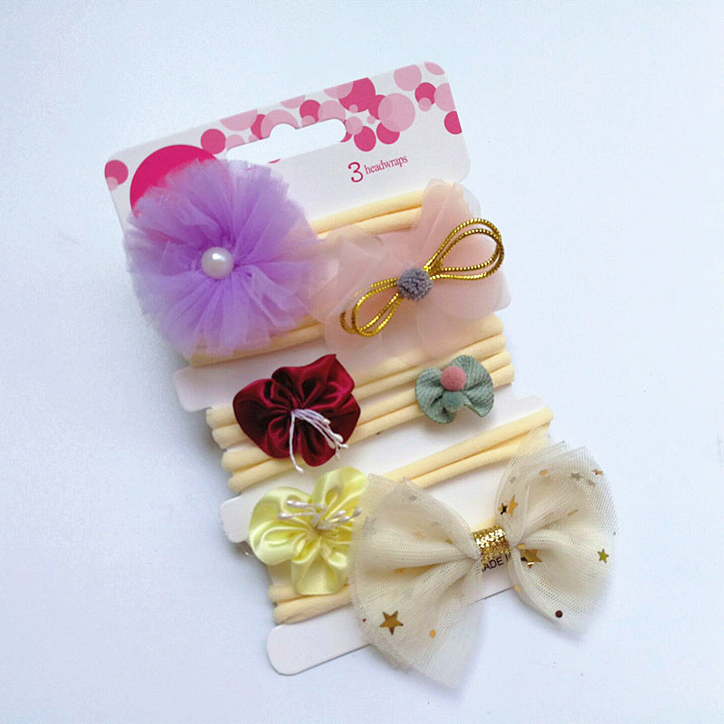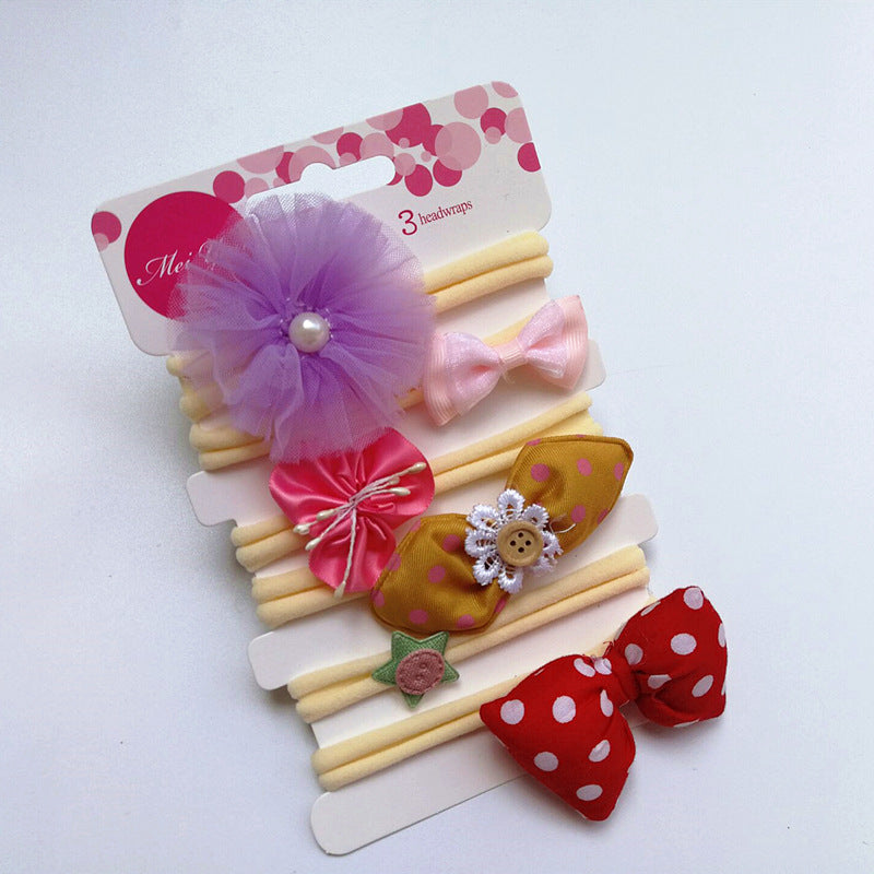 Korean creative handmade hair accessories fabric bow headdress elastic thin hair band six-piece set seamless baby hair ring
