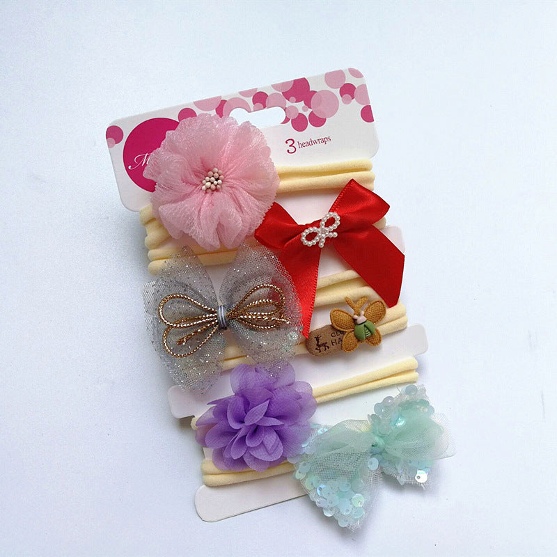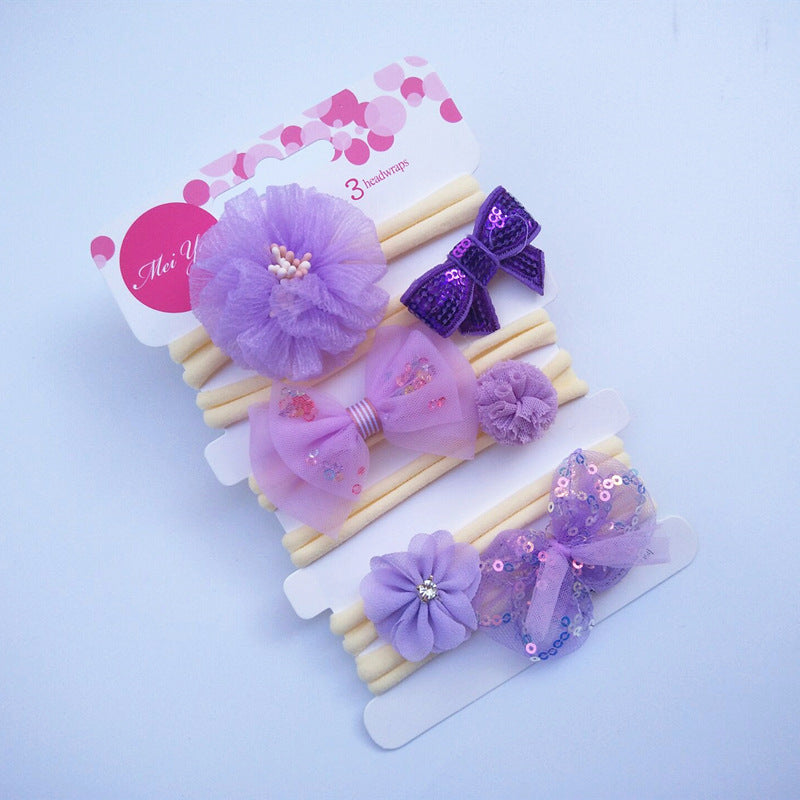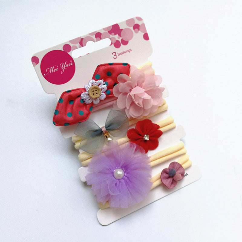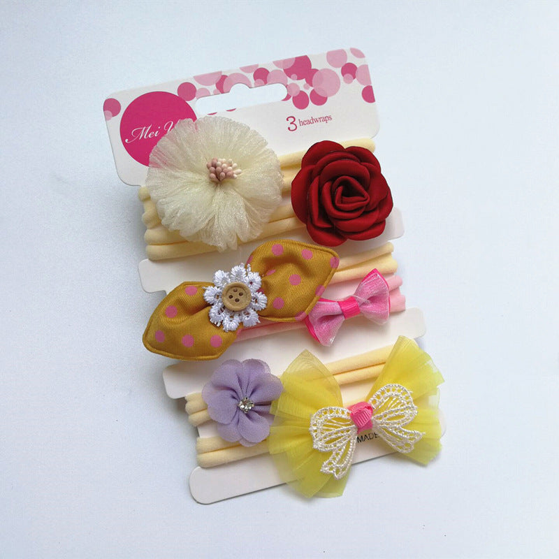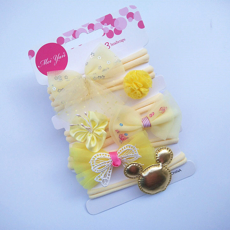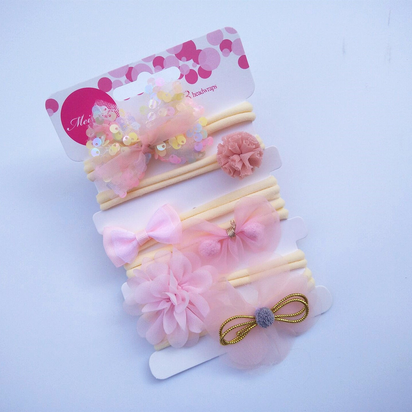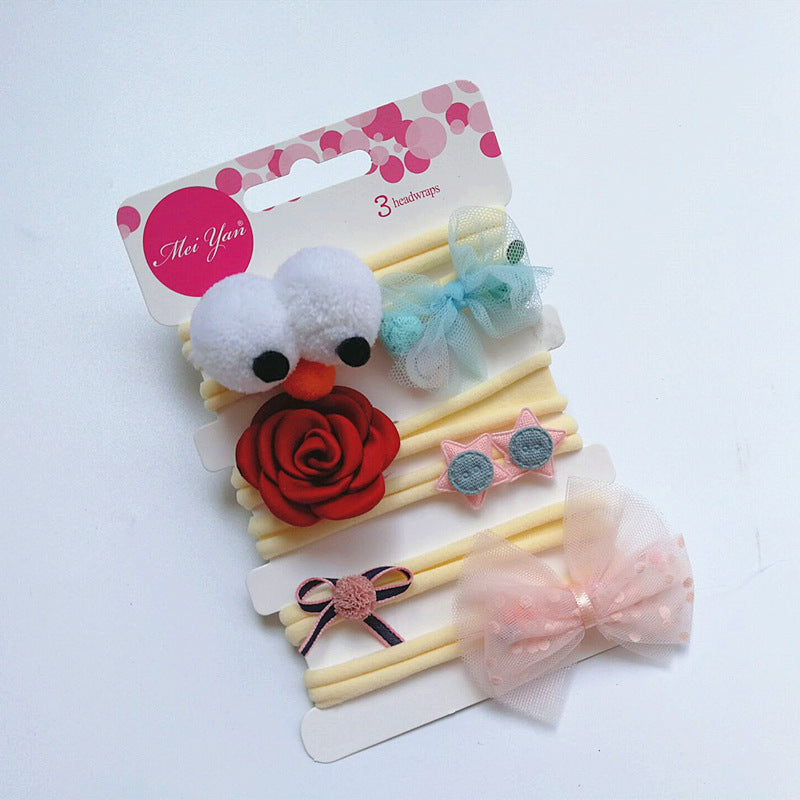 Korean creative handmade hair accessories fabric bow headdress elastic thin hair band six-piece set seamless baby hair ring