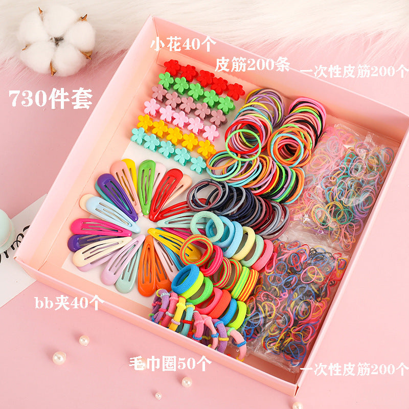 Korean version of simple hairpin headband gift box set children baby flower clip BB clip girl hair rope rubber band hair accessories
