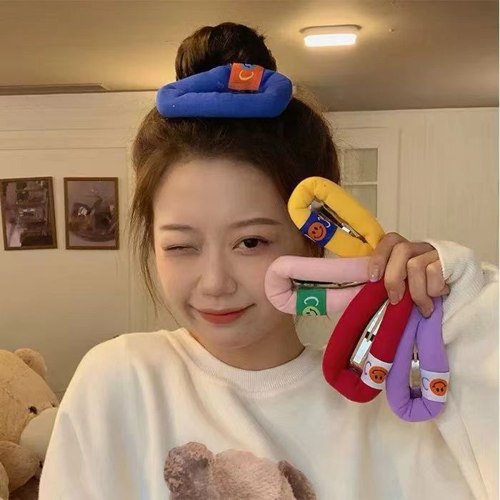 Lazy fabric hairpin sweet baby sponge BB clip candy color girl bangs hairpin cute smiling face broken hairpin