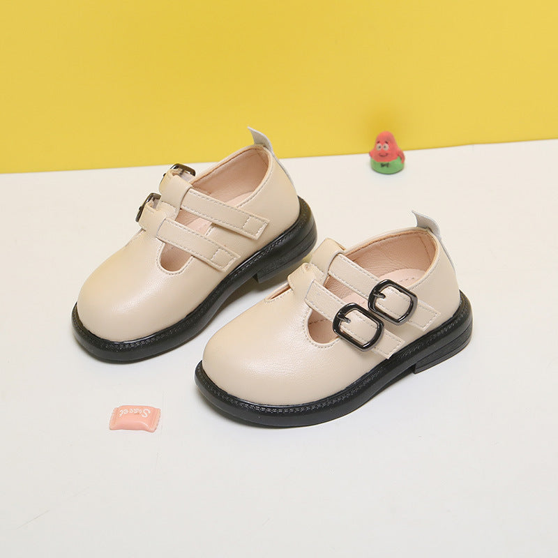 Maibu Bear Retro Girls Shoes Small Leather Shoes Spring and Autumn Girls Baby Princess Shoes Baby Children Simple Toddler