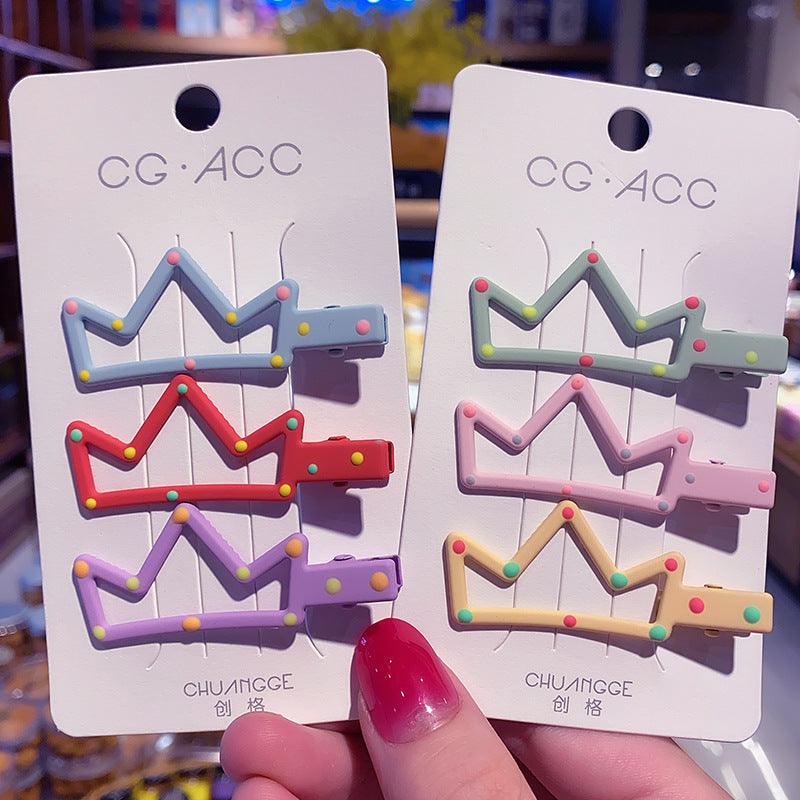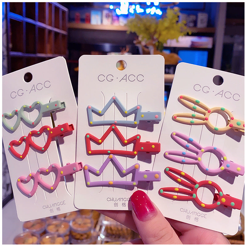 Matte Girls Crown Rabbit Love Spot Hair Clip Children Baby Side Clip Korean Dongdaemun Hair Accessories Female