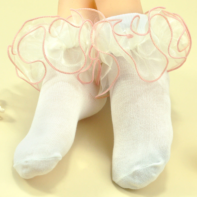 New Children's Baby Cotton Socks Milk White Lace Socks Two-color Lace Short Tube Socks Dance Princess Girls Socks