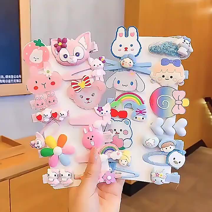 New children's hairpins 14-piece set Internet celebrity girl cartoon hairpins cute baby bangs clips girls' hair clips