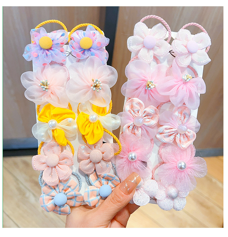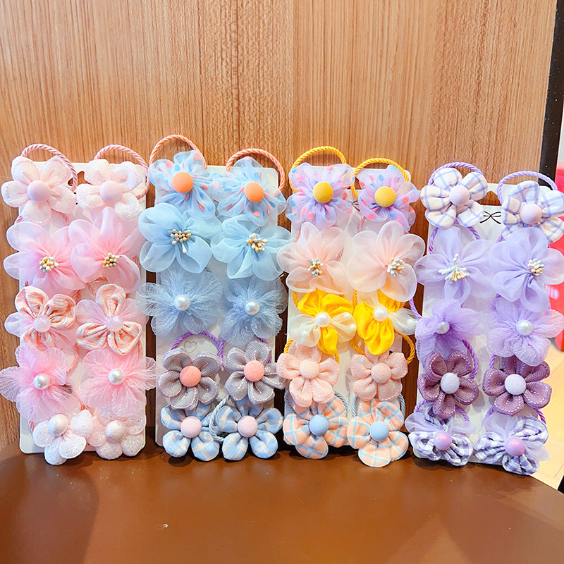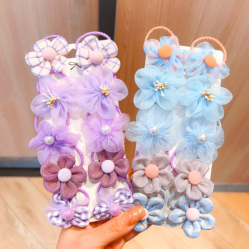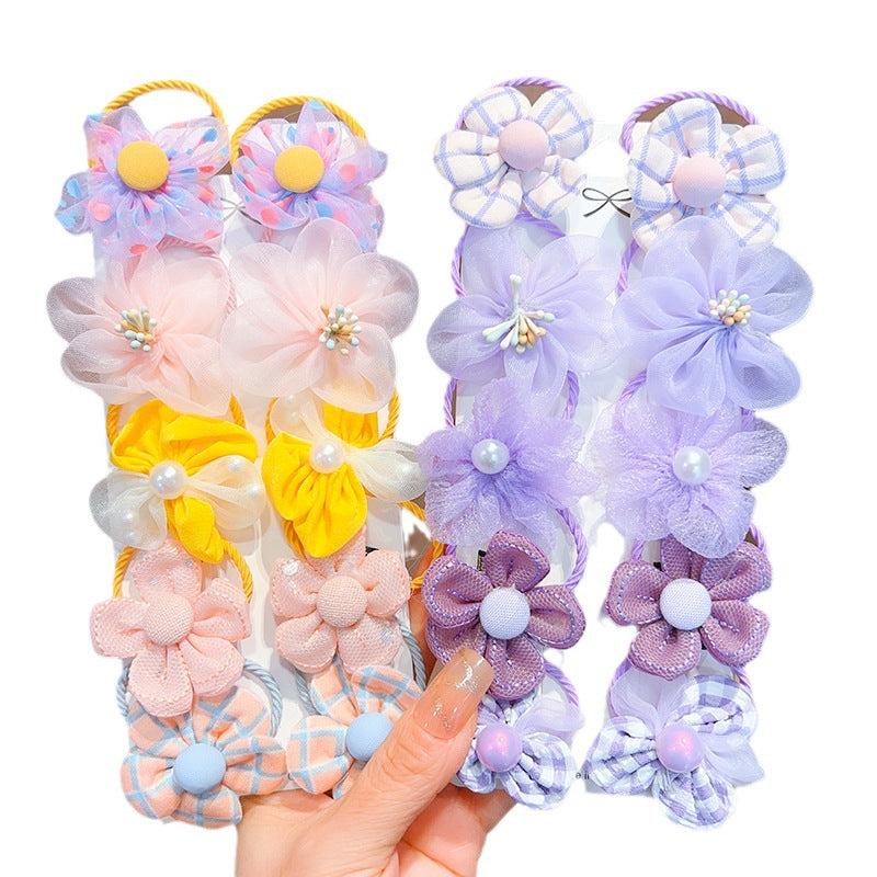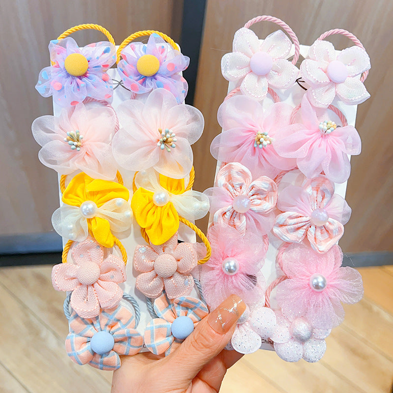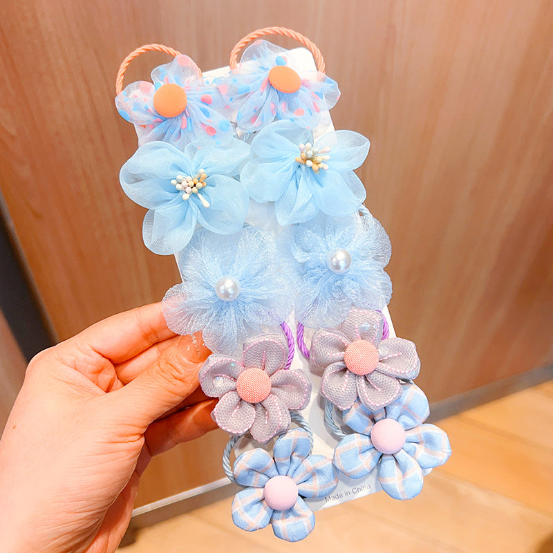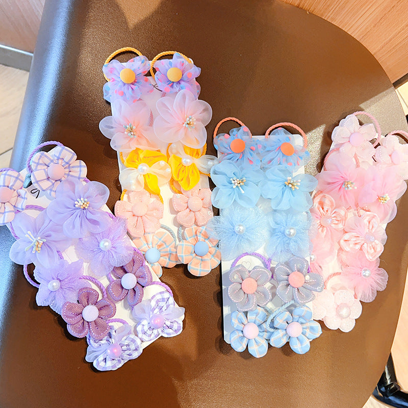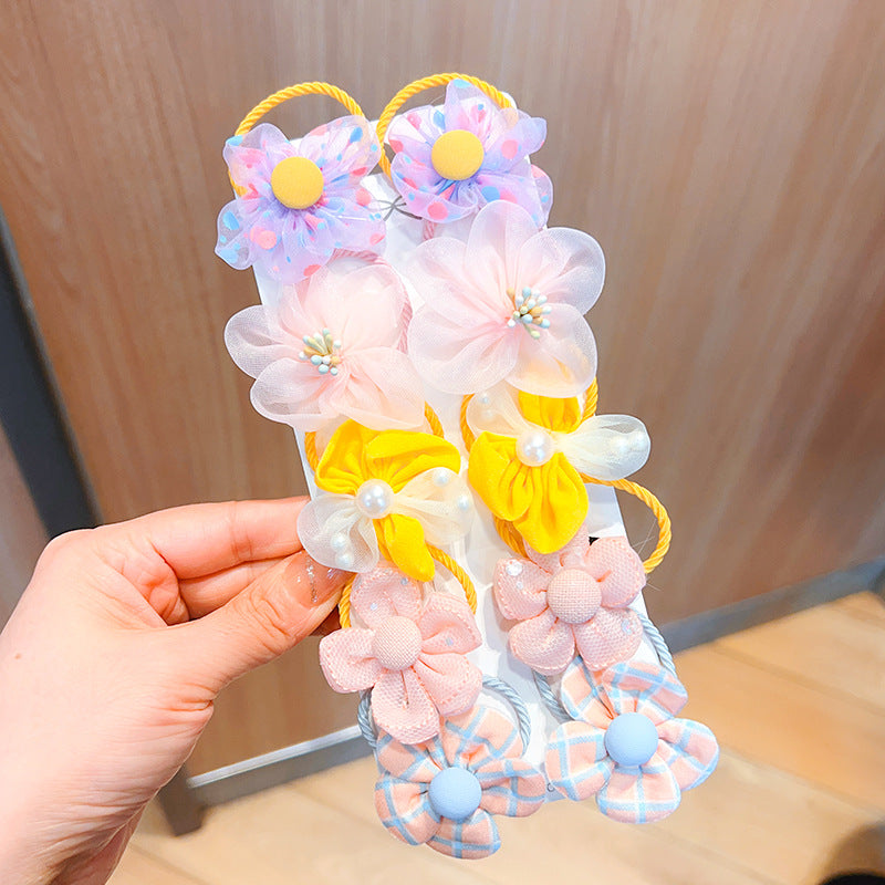 New children's net yarn flower hair rope set does not hurt hair accessories hair ring baby tie head rope princess headdress wholesale