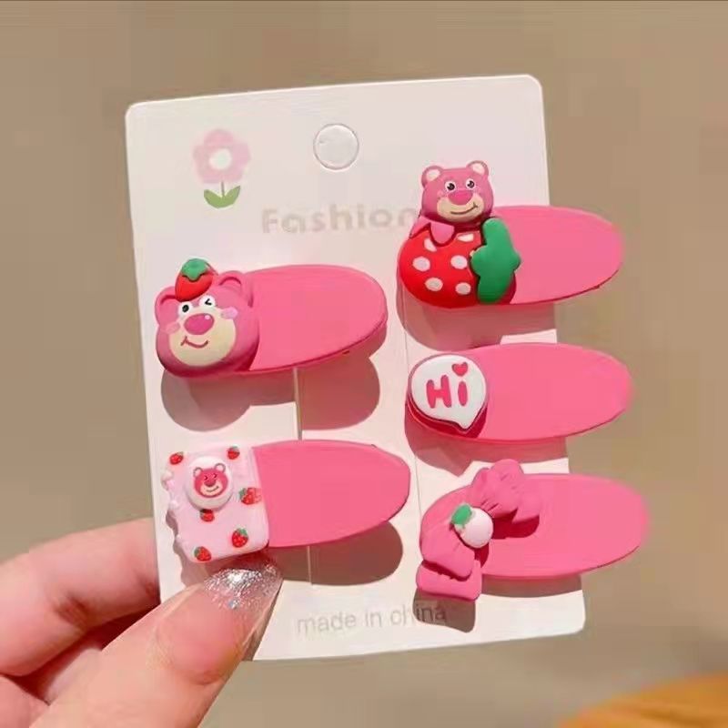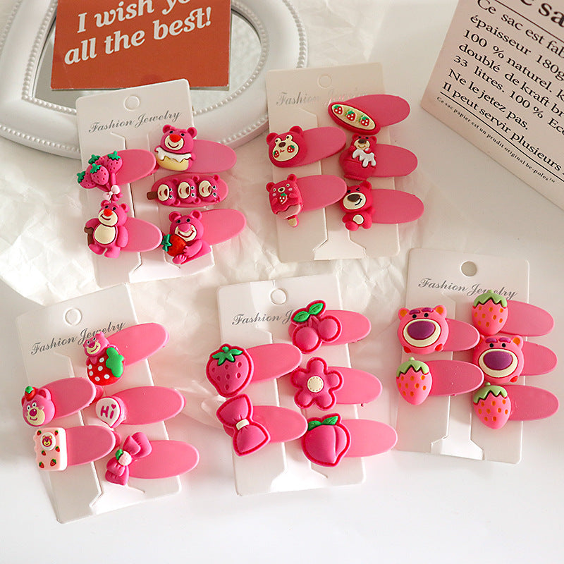 New children's strawberry bear hairpin little girl cute cartoon side clip baby bangs broken hairpin girls hairpin