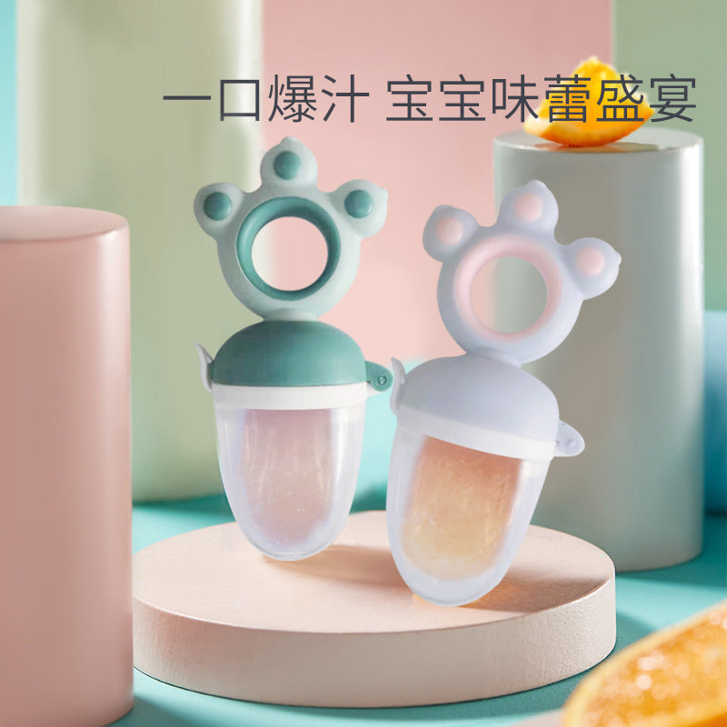New dog paw silicone push type fruit and vegetable bite bag bite bite music baby teether silicone mesh bag pacifier