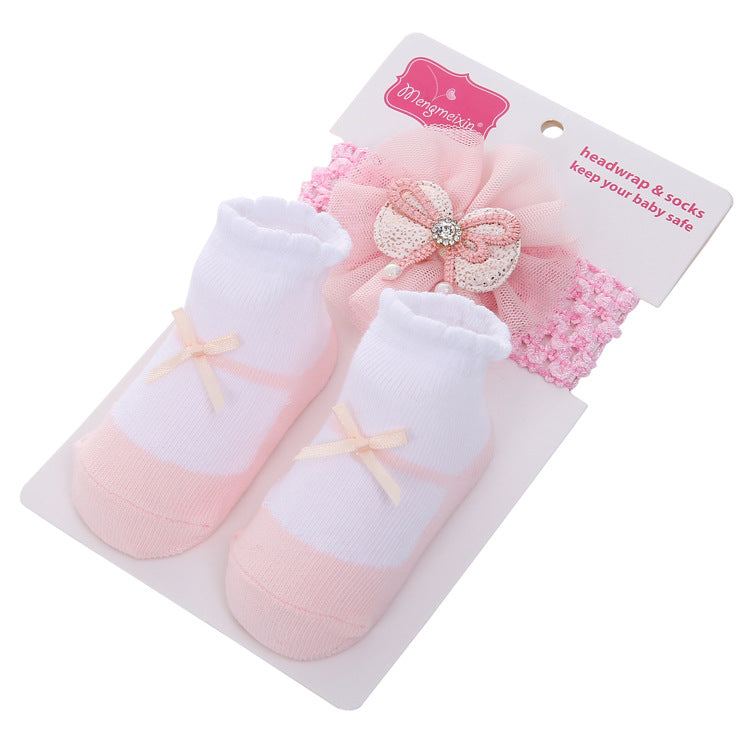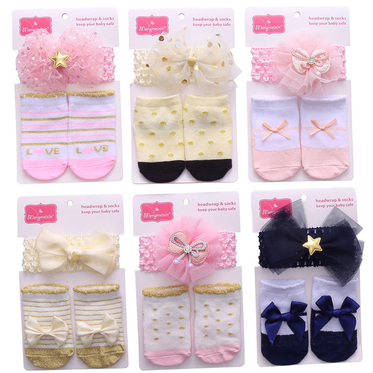 Product name: Baby hairband socks setPackaging: Hairband + independent paper card opp packagingStyle: 6 styles available