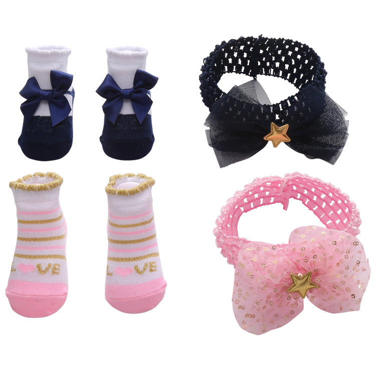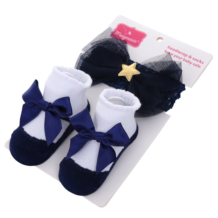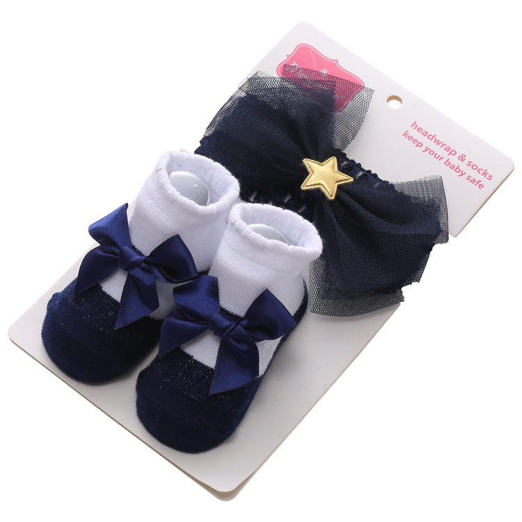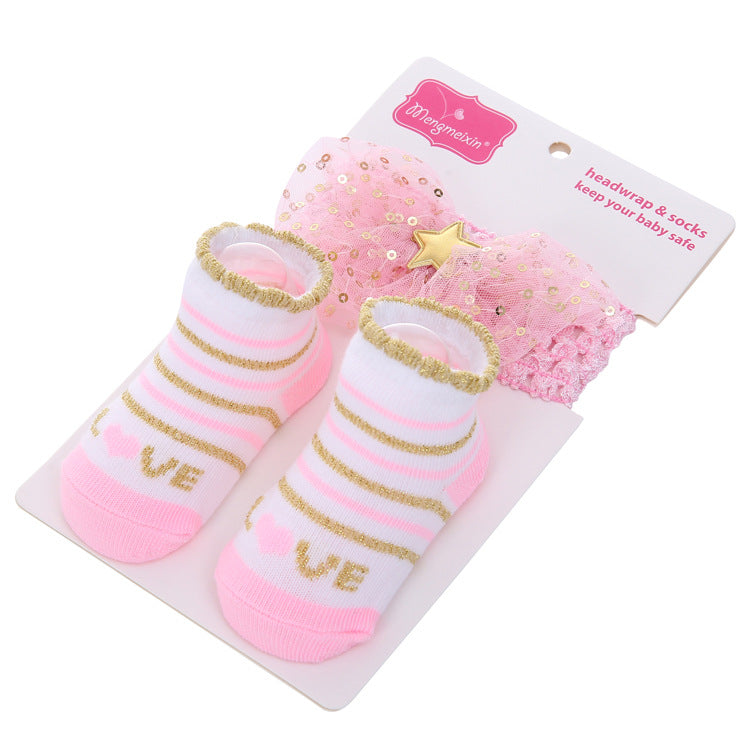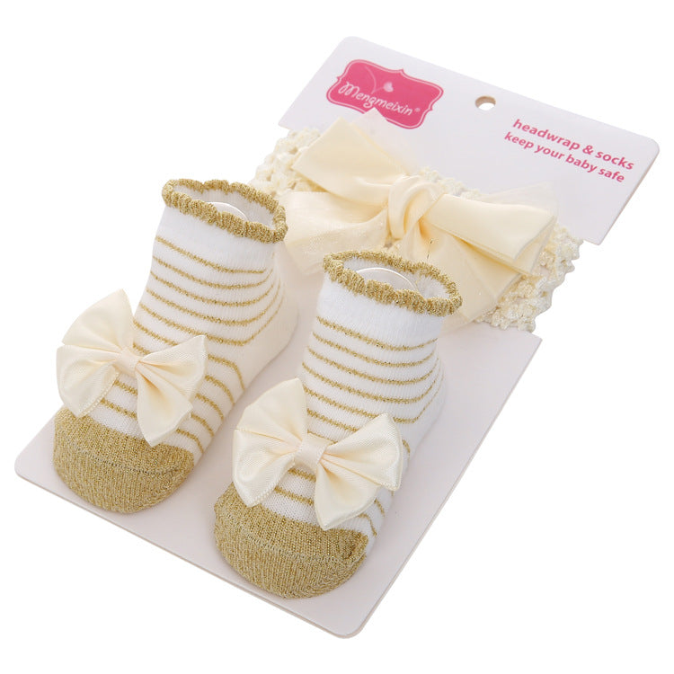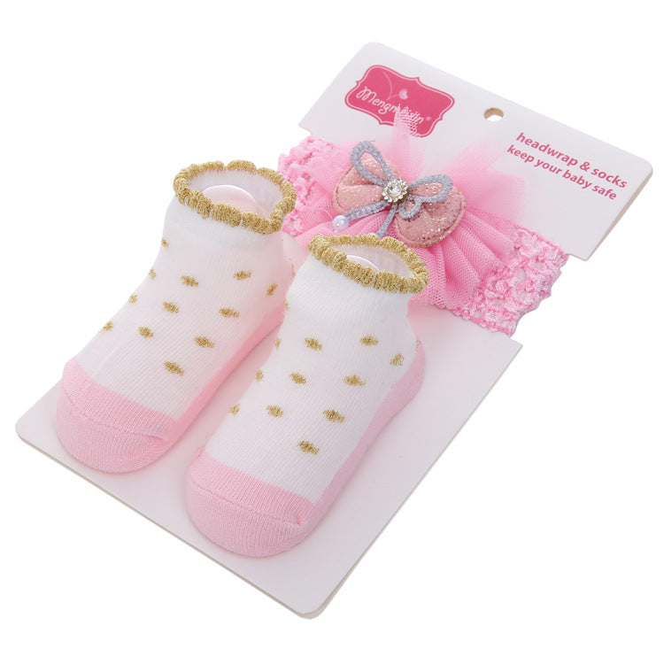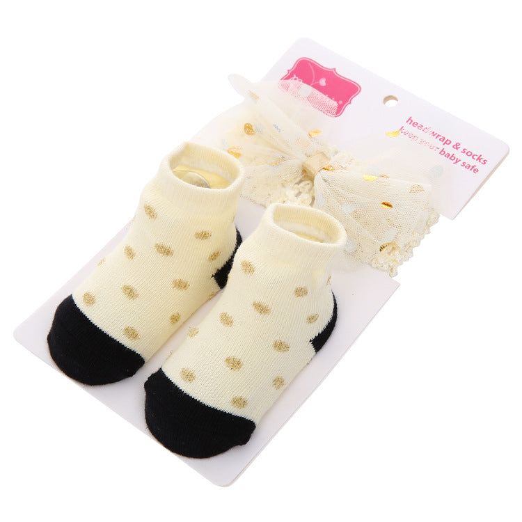 New Polka Dot Three-Dimensional Striped Mesh Children's Socks Princess Bowknot Letter Baby Socks Hairband Set