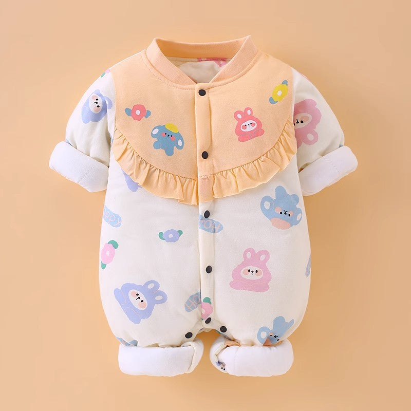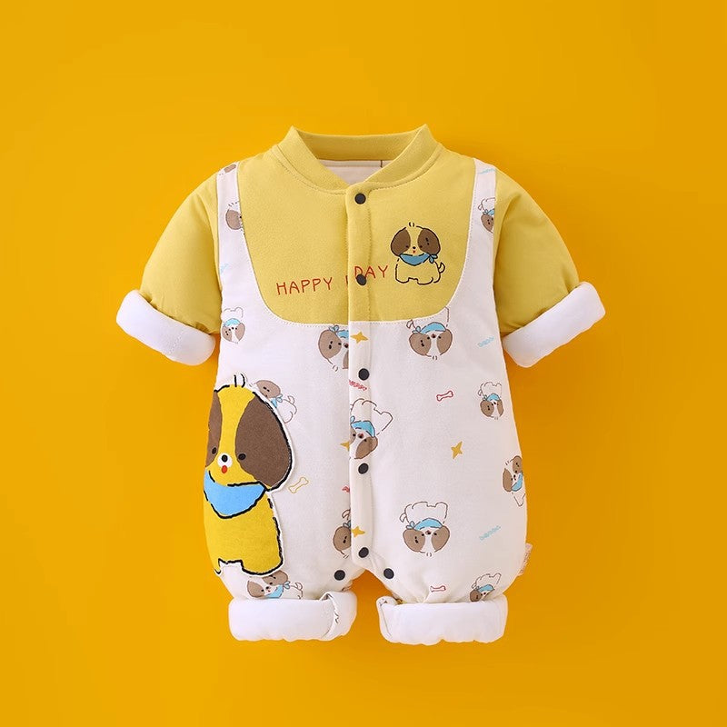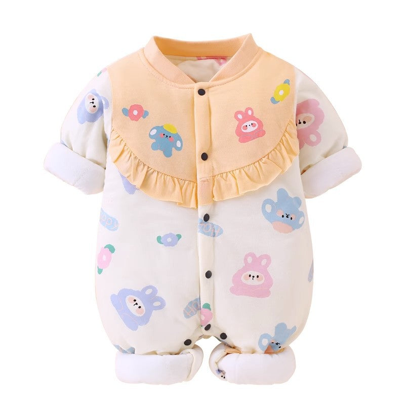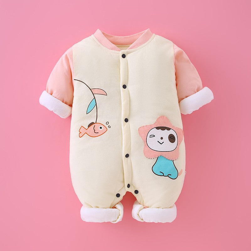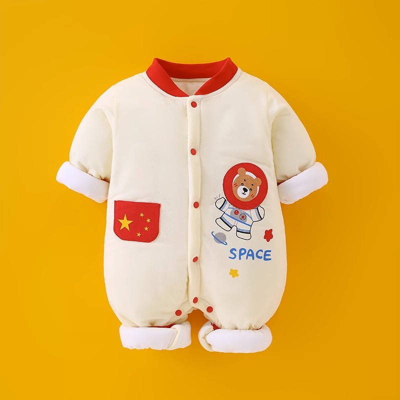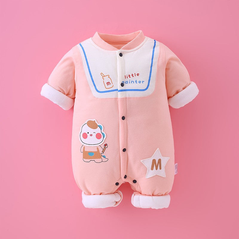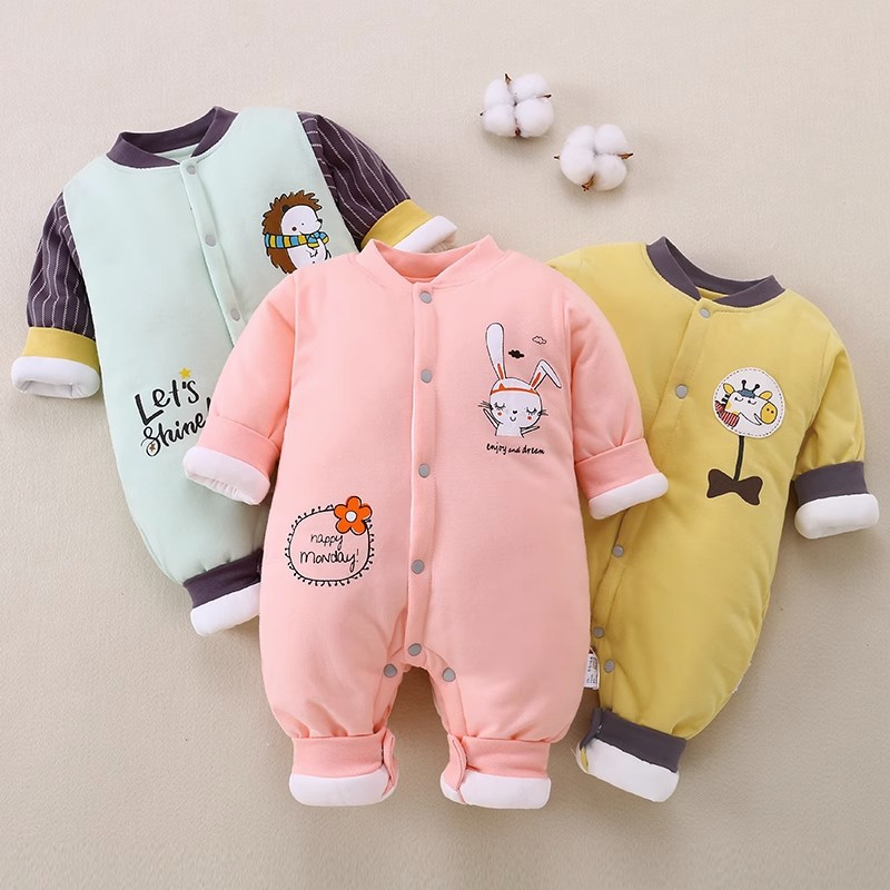 Newborn baby autumn and winter new climbing clothes baby quilted jumpsuit thickened cotton clothes going out clothes rompers one piece on behalf of