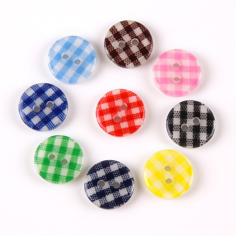 Resin color children's baby grid striped cloth button sweater children's clothing coat button DIY handmade button