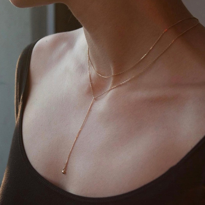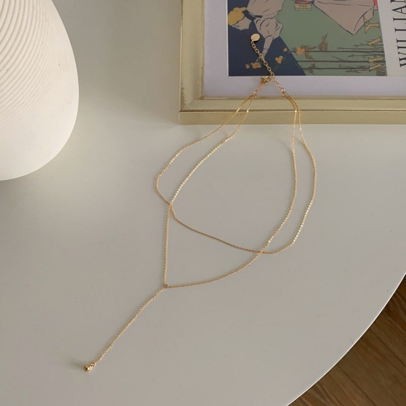 Simple golden bean necklace women's all-match niche baby beads temperament light luxury high-end clavicle chain stacked sweater chain