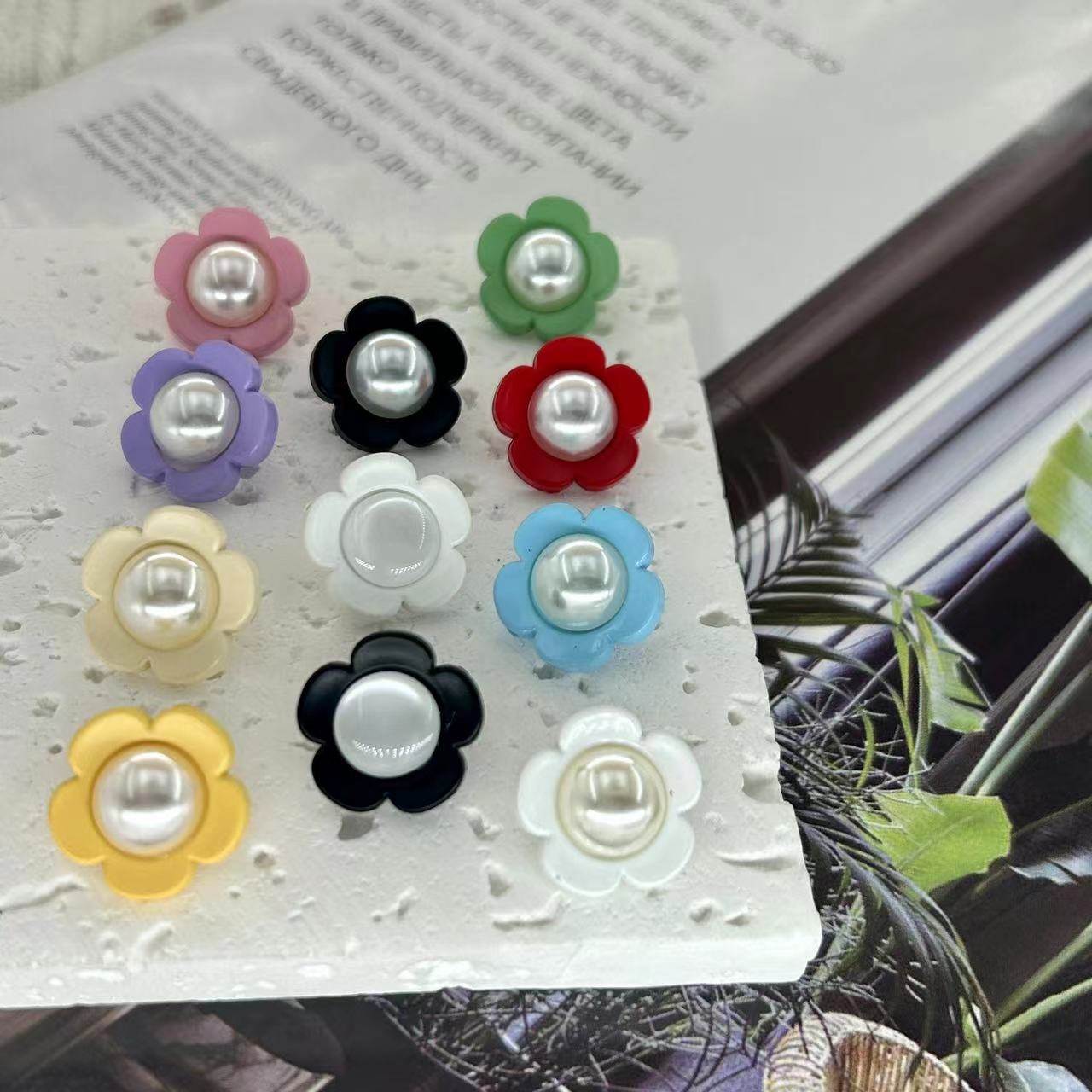 Small fragrance color flower pearl button cute baby children's clothing knitted sweater five-leaf flower hand-sewn button