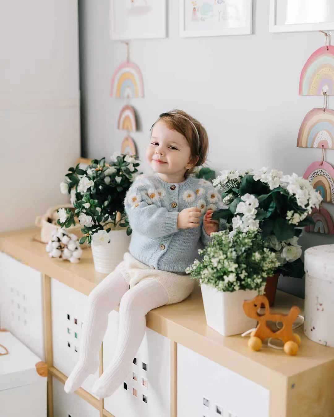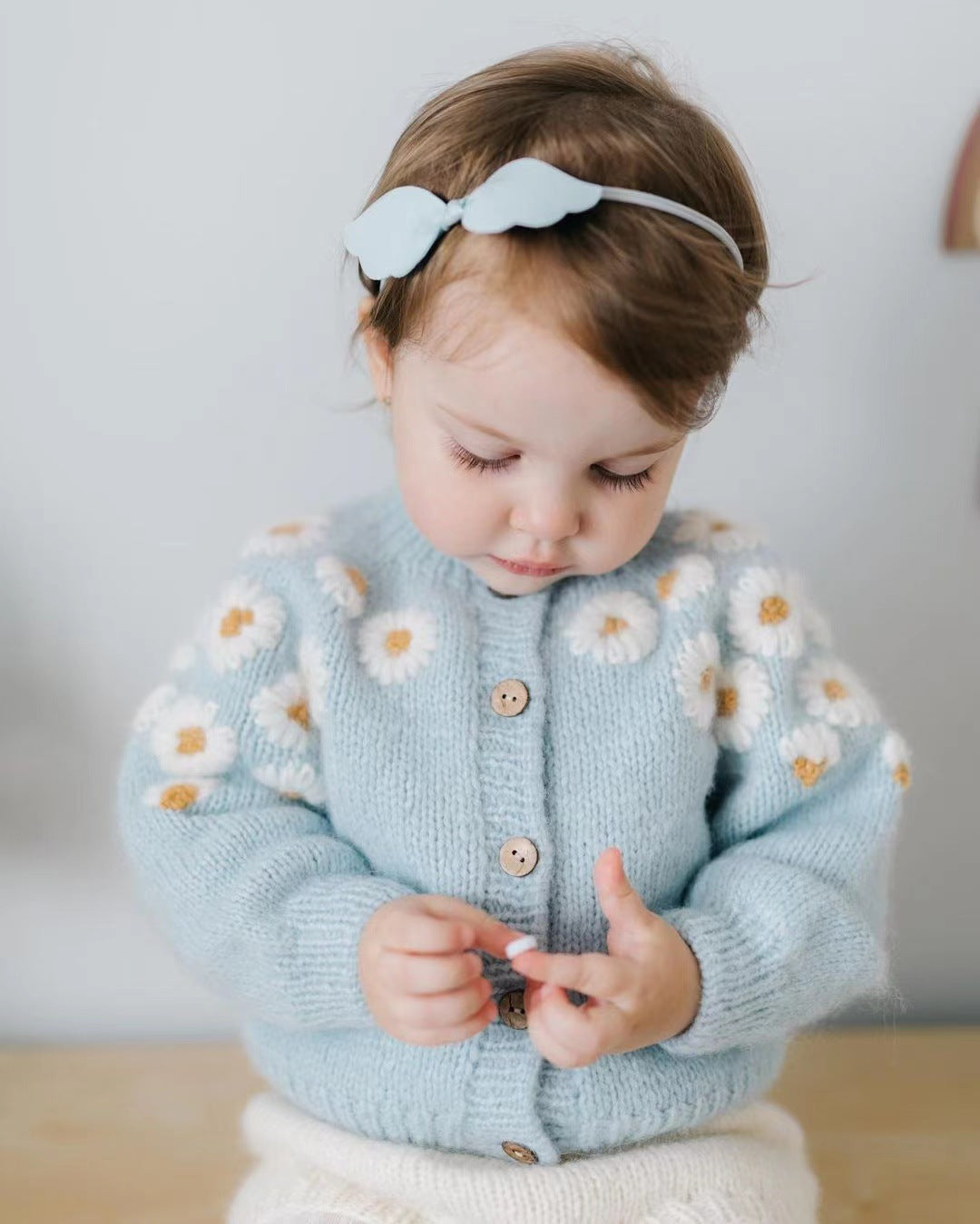 Spot baby wool cardigan sweater ins children's clothing hand embroidered wind chamomile heavy industry embroidered baby children's sweater