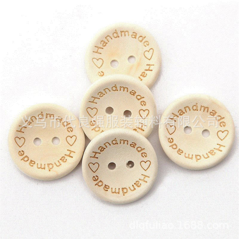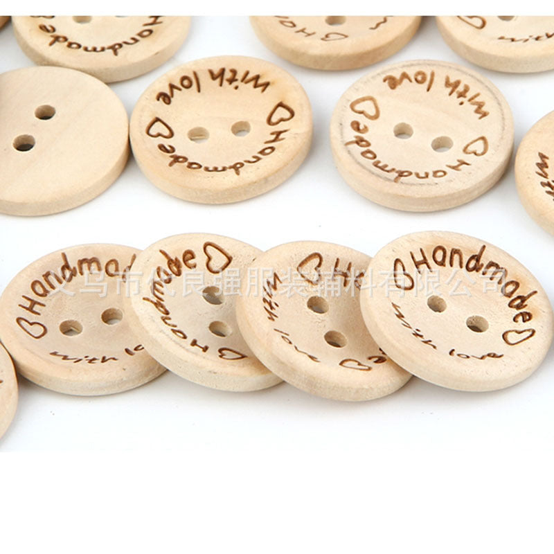 Spot direct sale two eyes round natural wood button laser lettering love baby sweater wood button