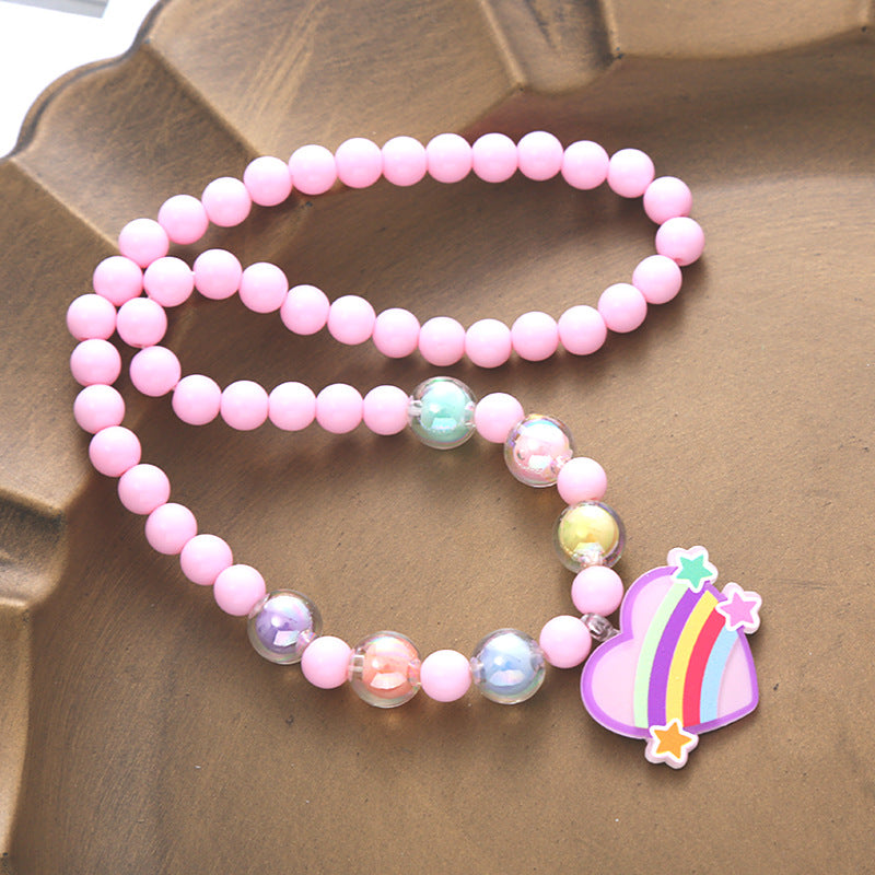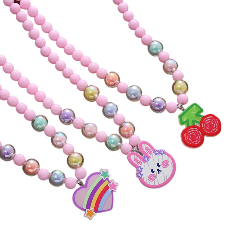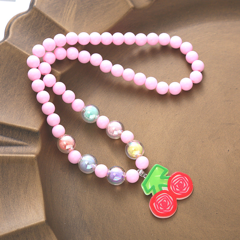 Spot wholesale children's necklace Korean version ins acrylic mesh beaded necklace cute flower pendant baby jewelry