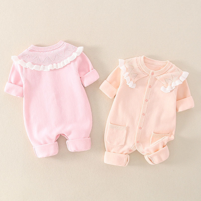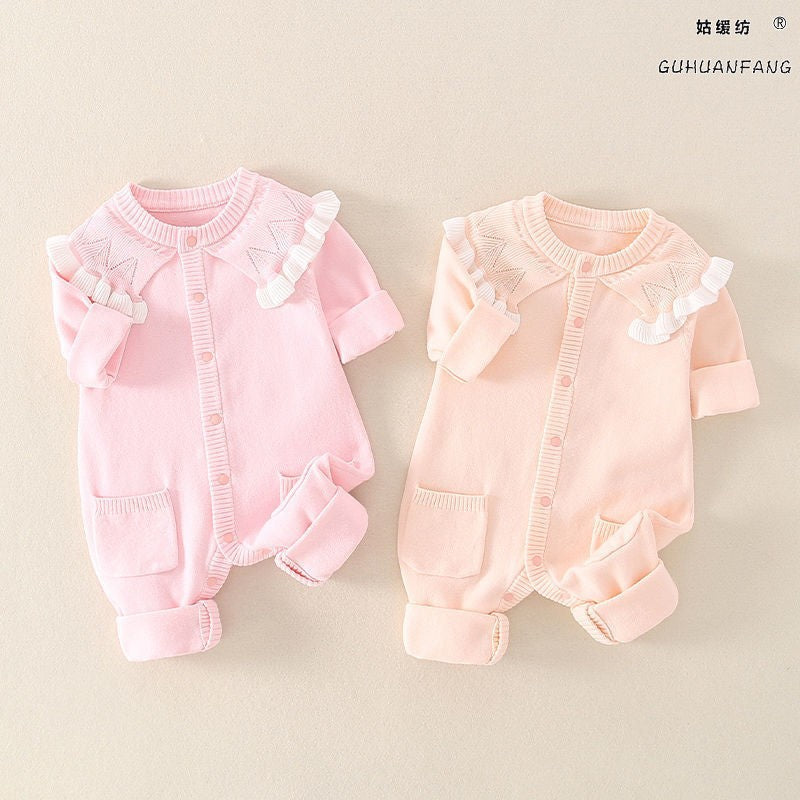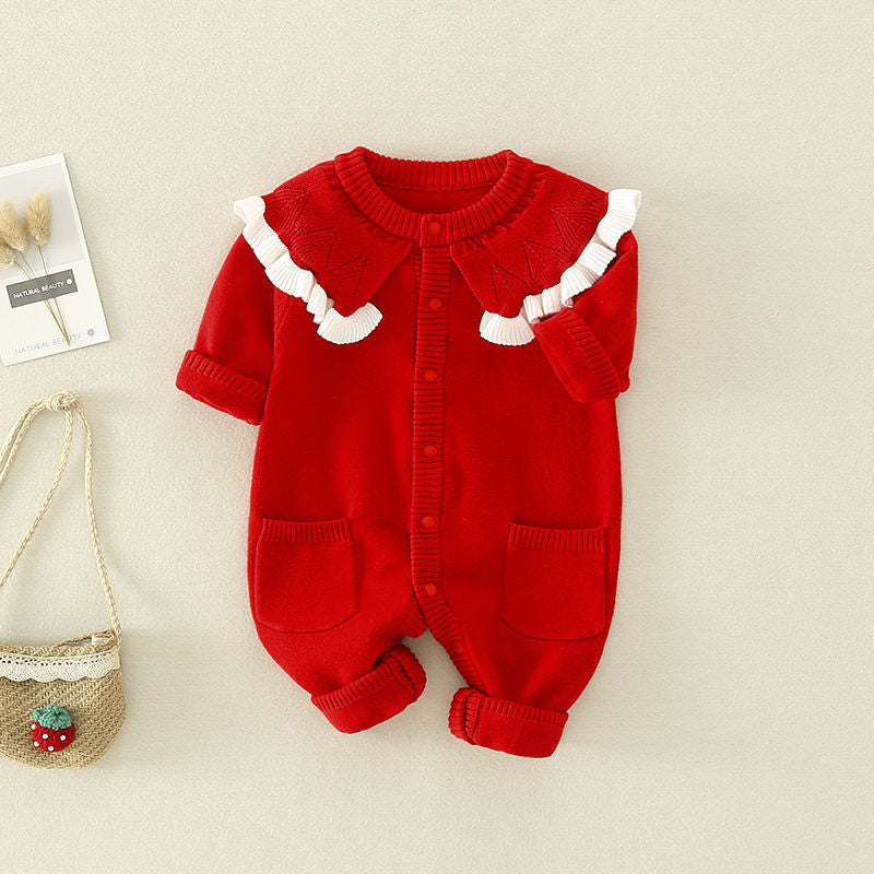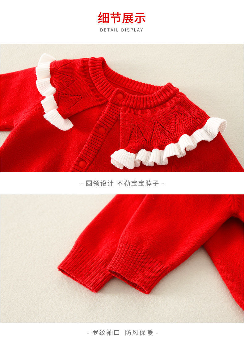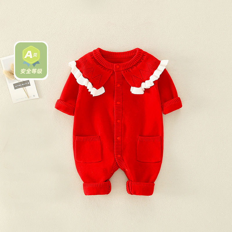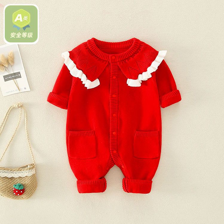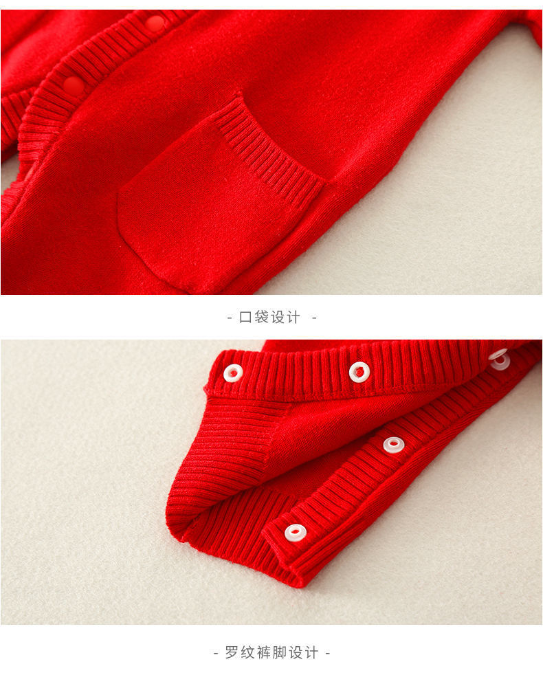 Spring and autumn baby clothes plus velvet full moon princess clothing female baby red one-piece sweater hundred days photo knitted romper