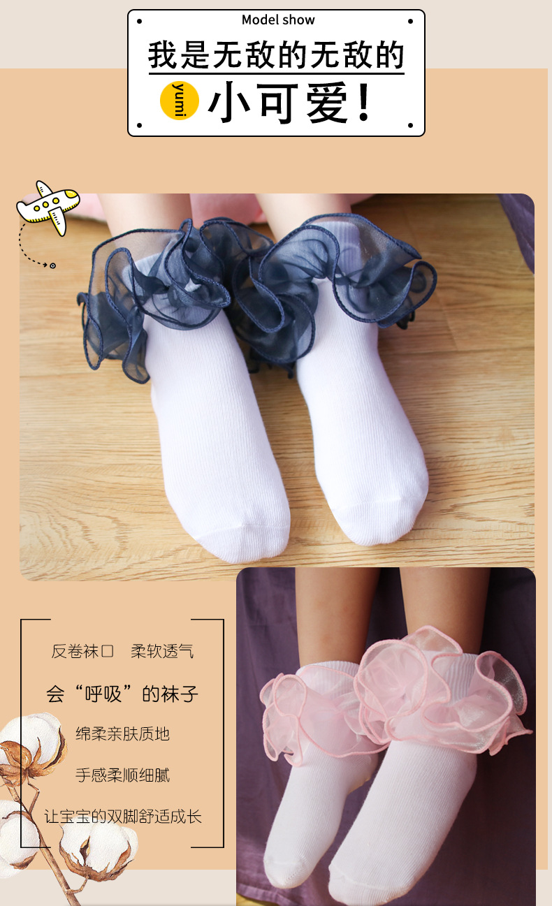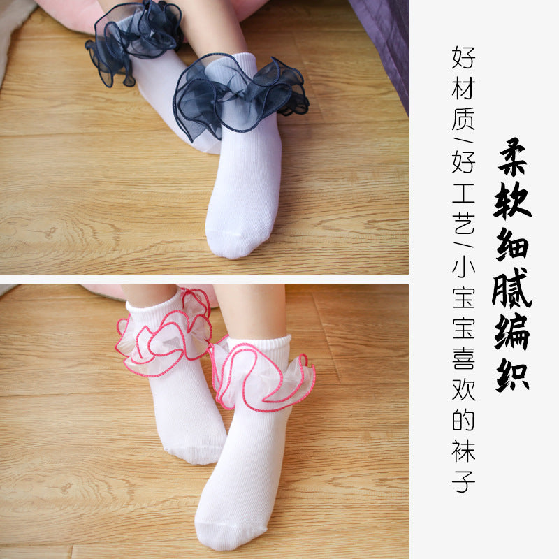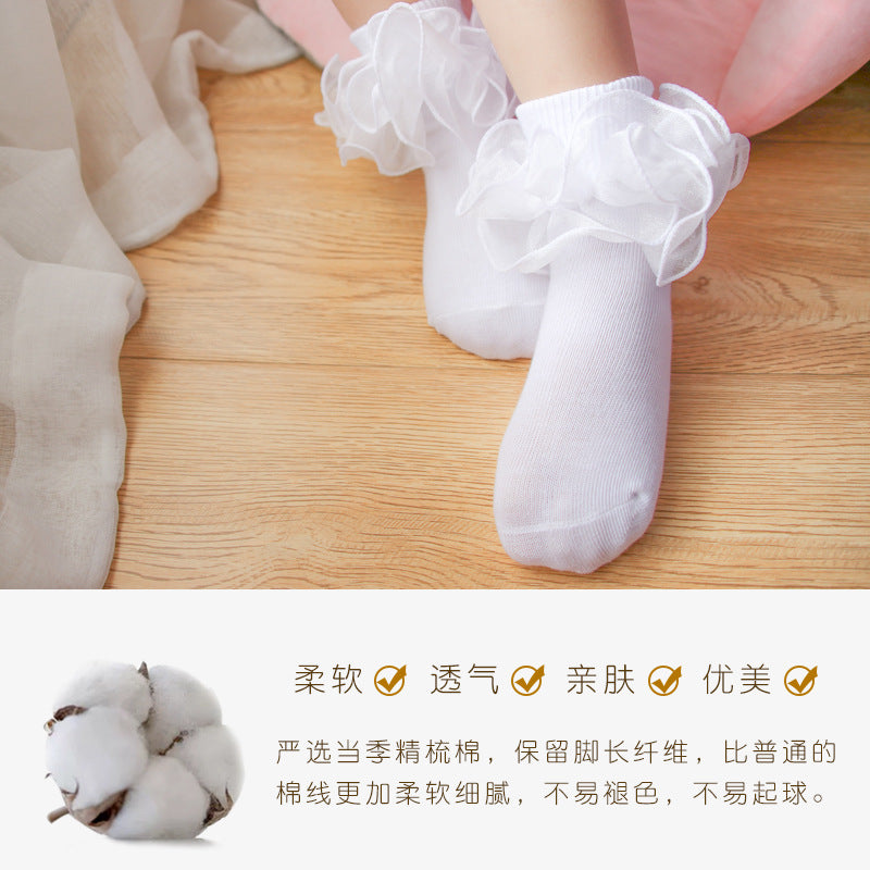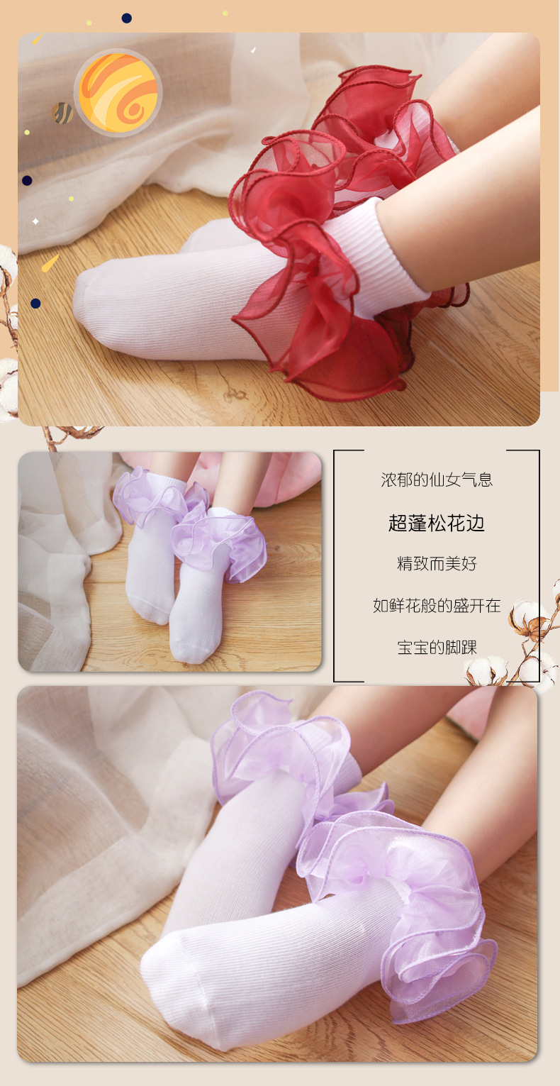 Spring and autumn children's lace socks Korean style fluffy three-dimensional large lace mid-tube children's socks children's cotton socks baby socks