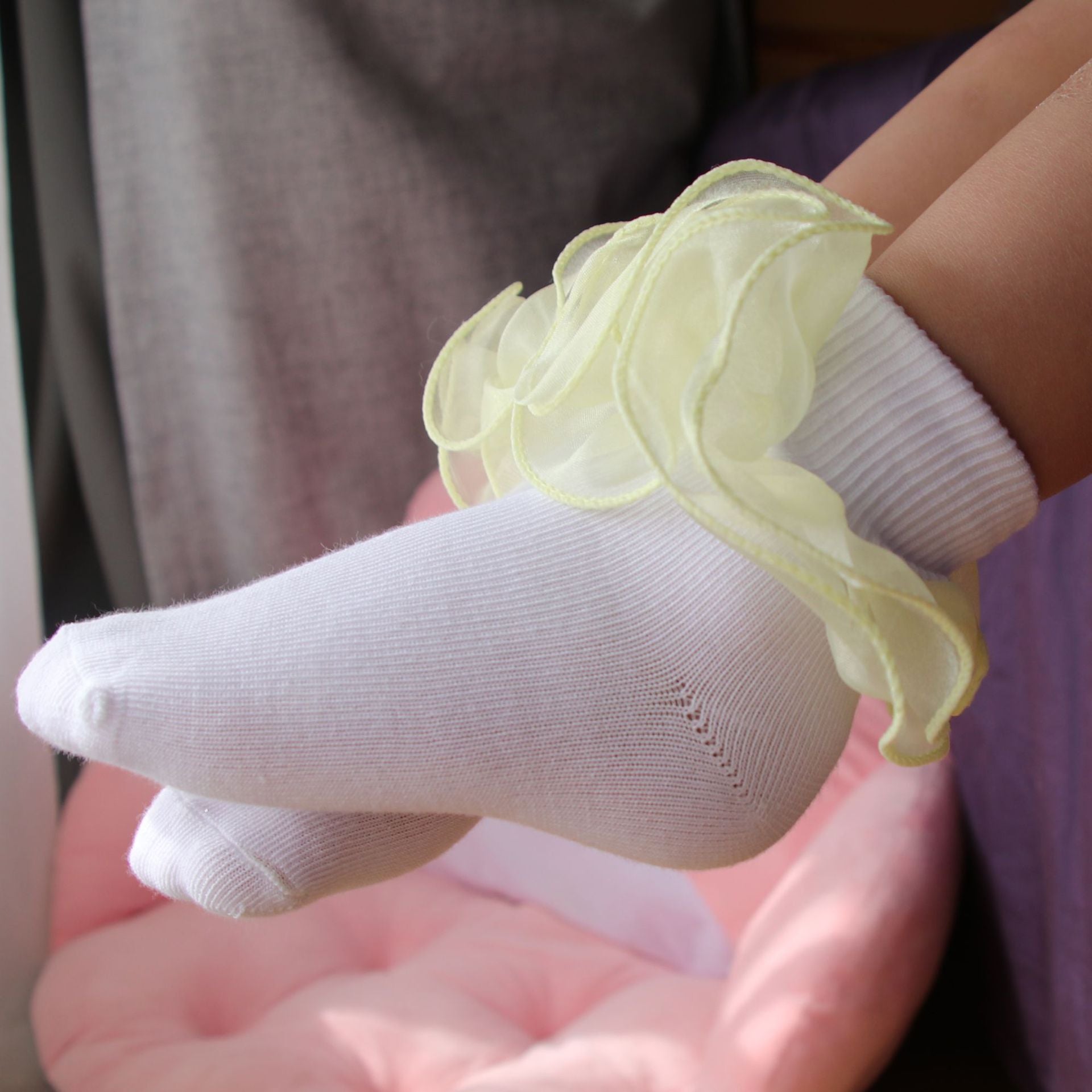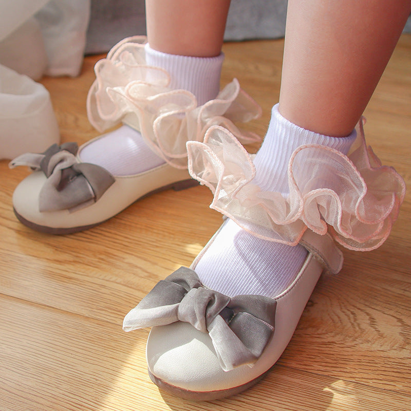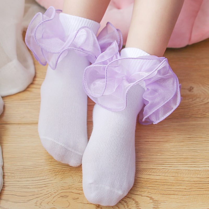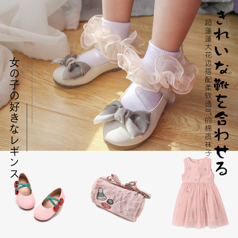Spring and autumn children's lace socks Korean style fluffy three-dimensional large lace mid-tube children's socks children's cotton socks baby socks