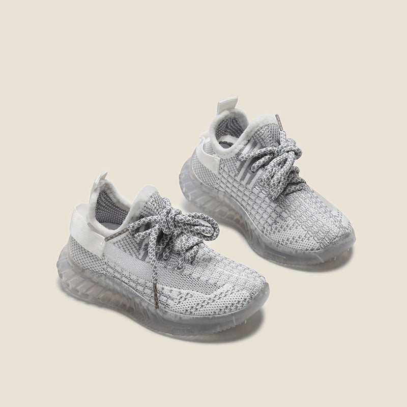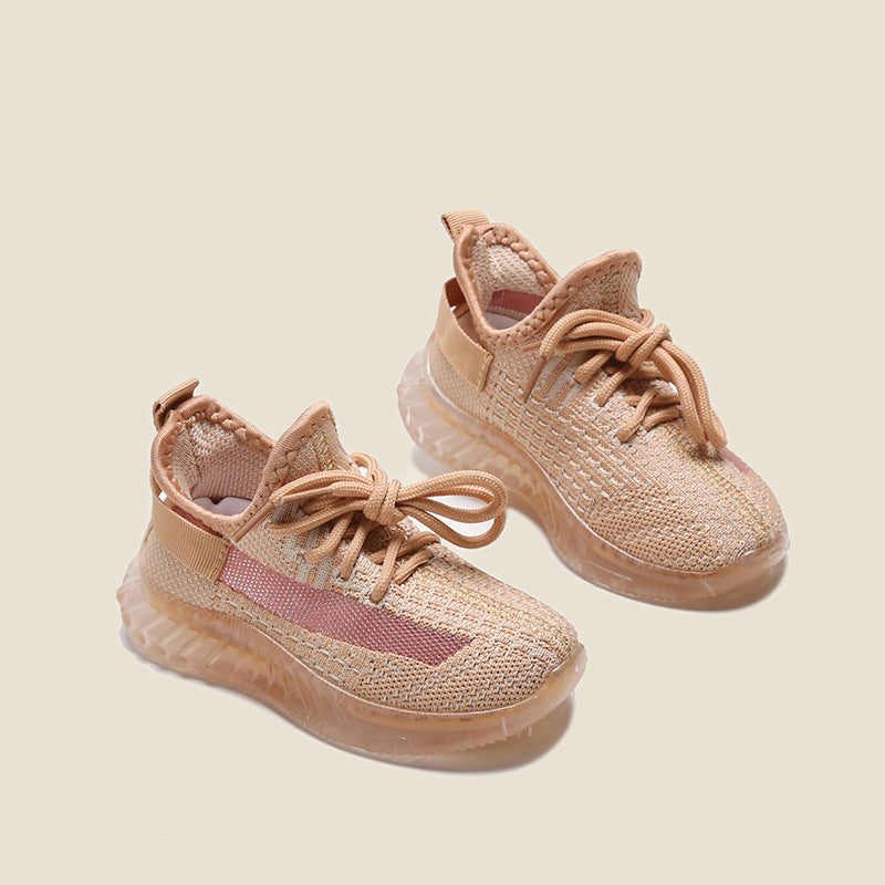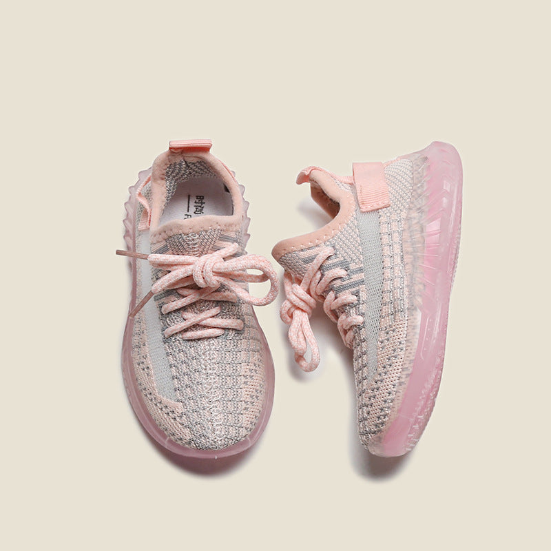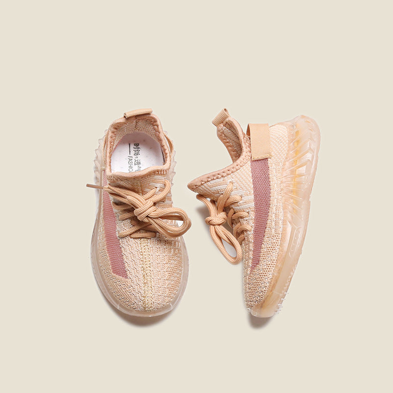 Spring new children's casual flying woven coconut shoes boys and girls jelly bottom small children's sneakers baby shoes clearance