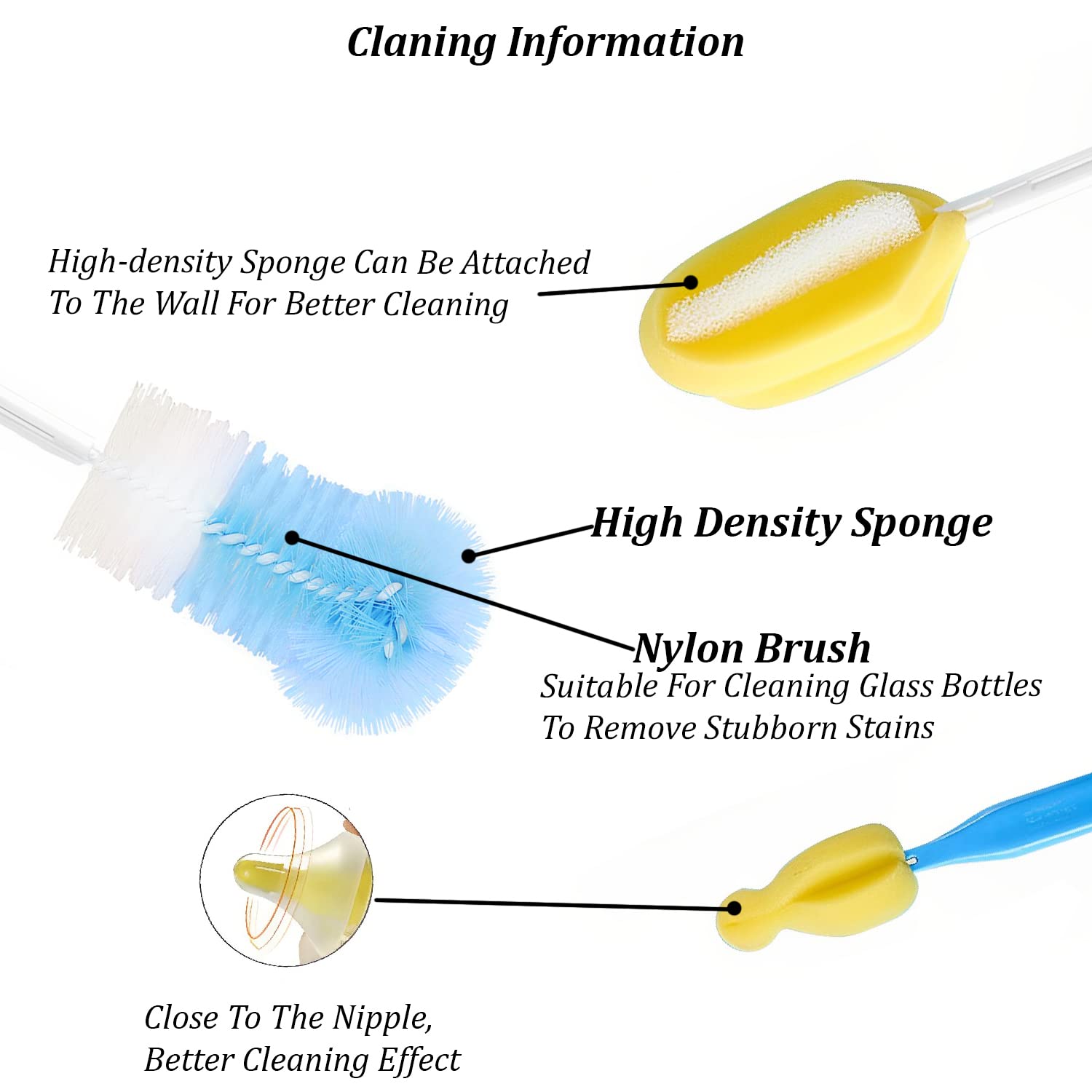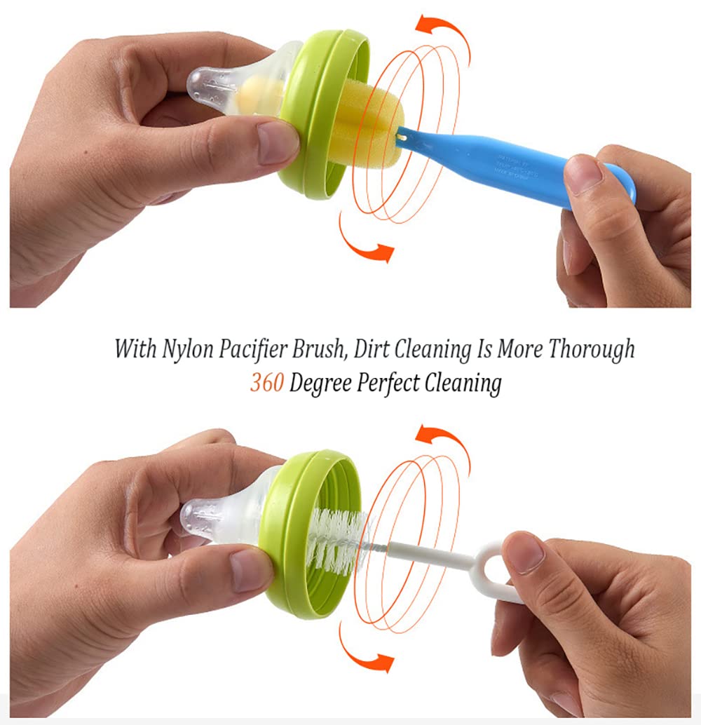 EASY TO CLEAN: Special-design sponge cleans the entire internal surface of bottles, including hard-to-reach corners and bottoms. Two types of nipple brushes to get into tight spaces and clean all the bacteria out Bullet Point