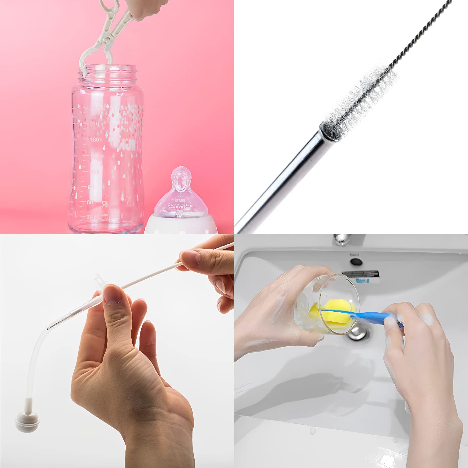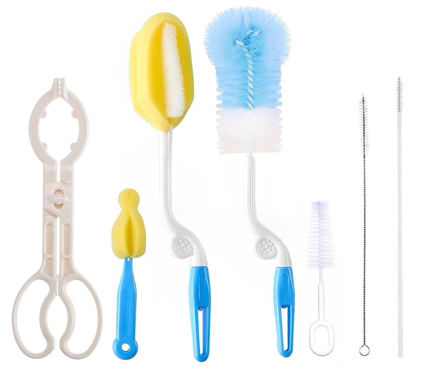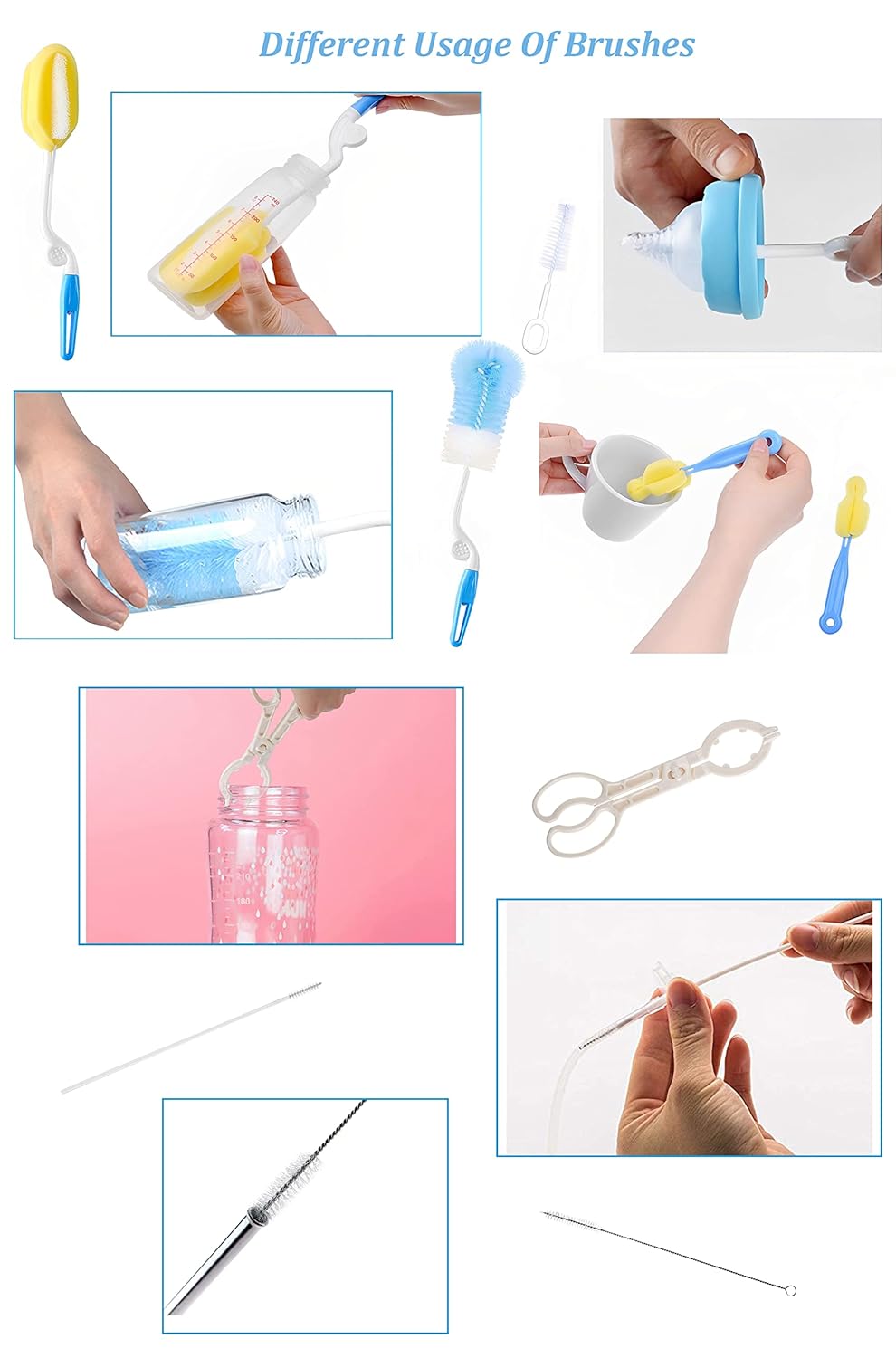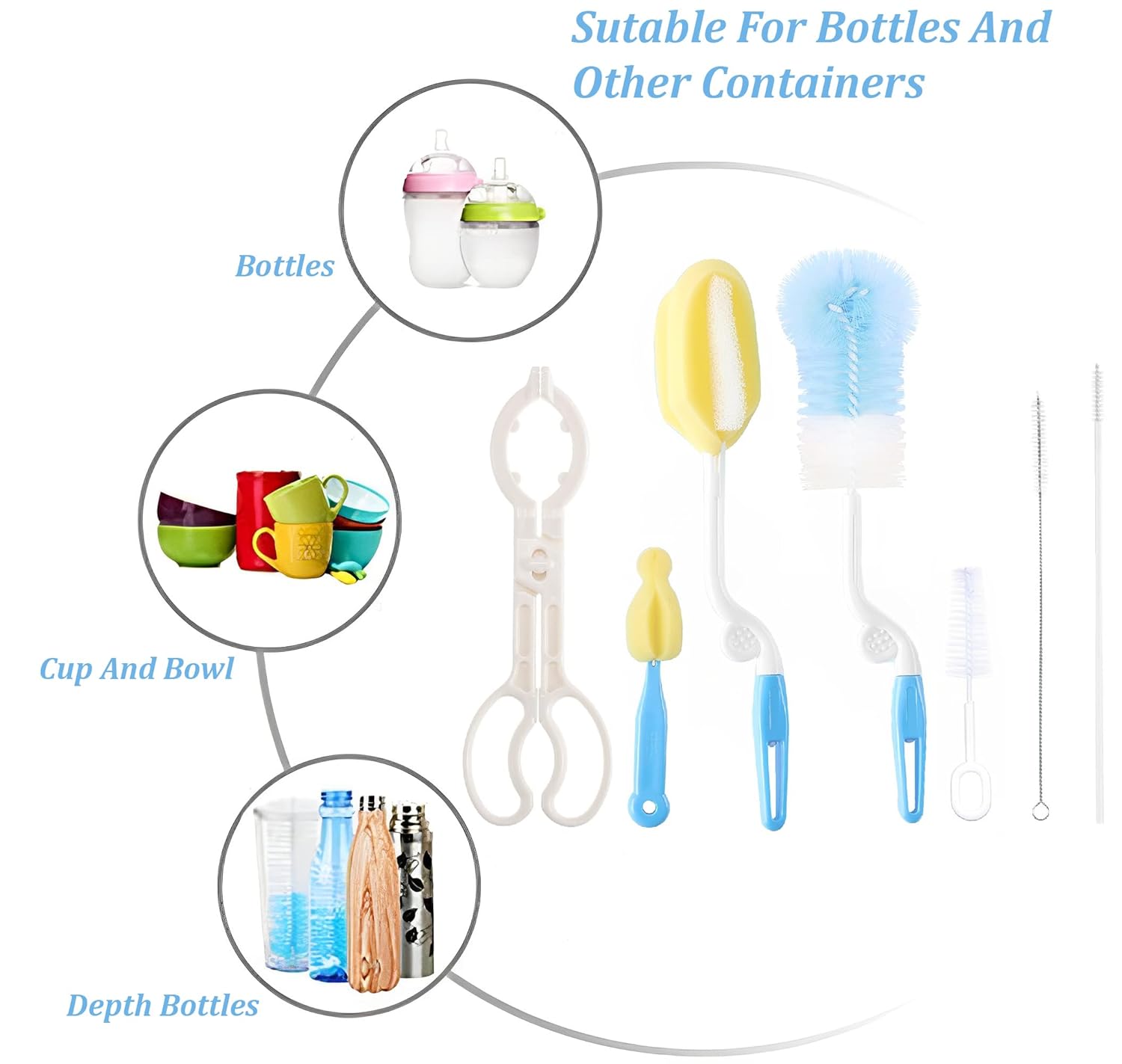 SYGA 7 Pcs Baby Milk Bottle Nipple Straw Brush Sponge BPA Free PP Cleaning Brush Cleaner Bottle Tong