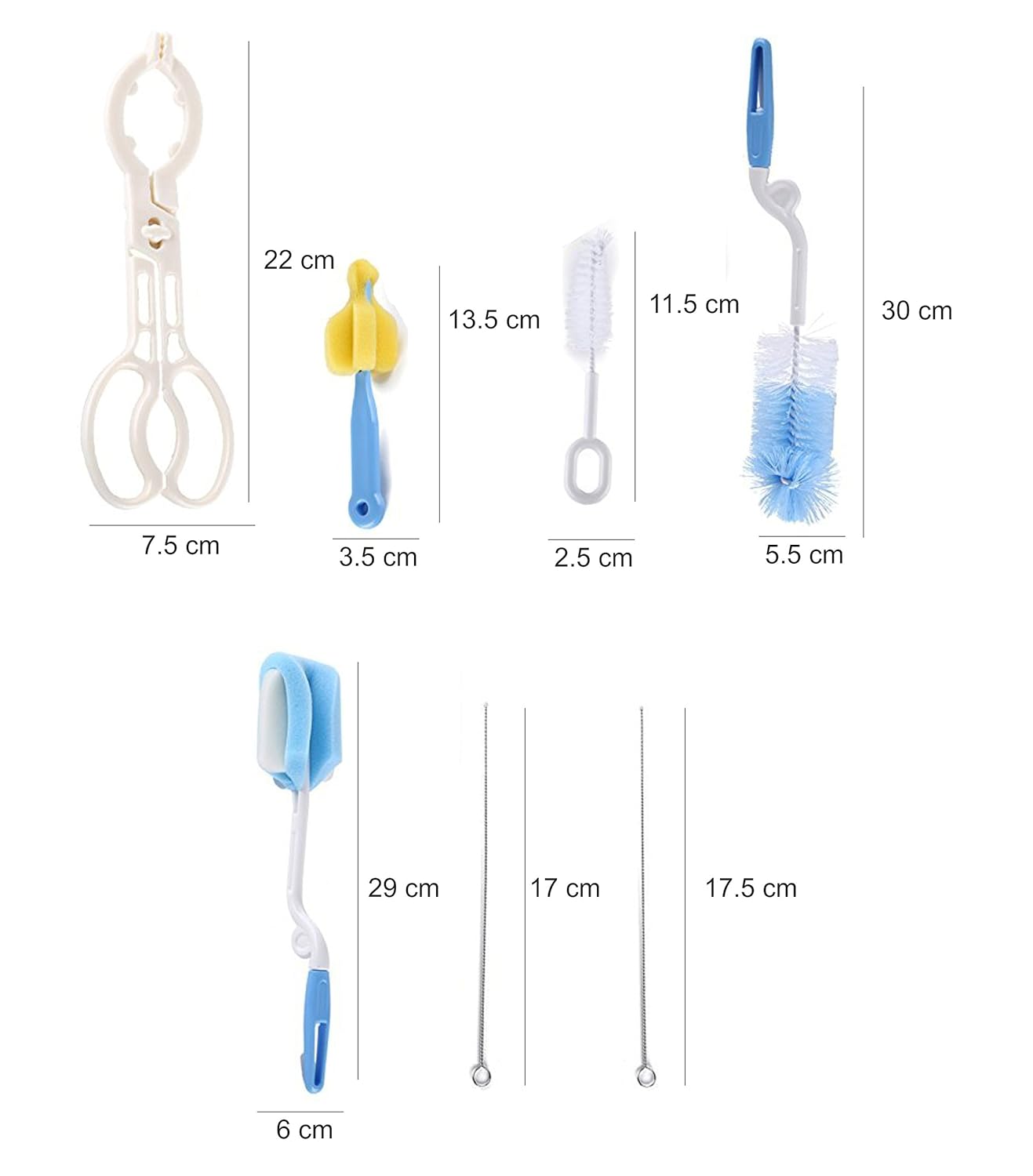 VERSATILE: Set of 7 Sizes, easy to assemble and take apart. Bottle brush works on all major brands regular size bottles. Nipple & straw brush is perfect for nipples, smaller bottles, pump parts and other accessories Bullet Point