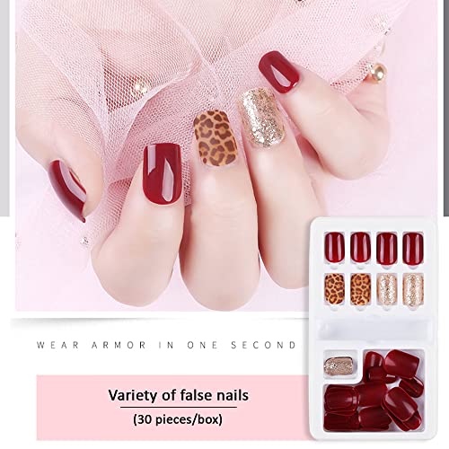 SYGA Press on Gel Nails 30 Pcs With Double Sided Jelly Adhesive Nail Glue Nail Filer, Fake Nails Long Lasting Press, Ready made Nails. (FakeNails-F635-22)